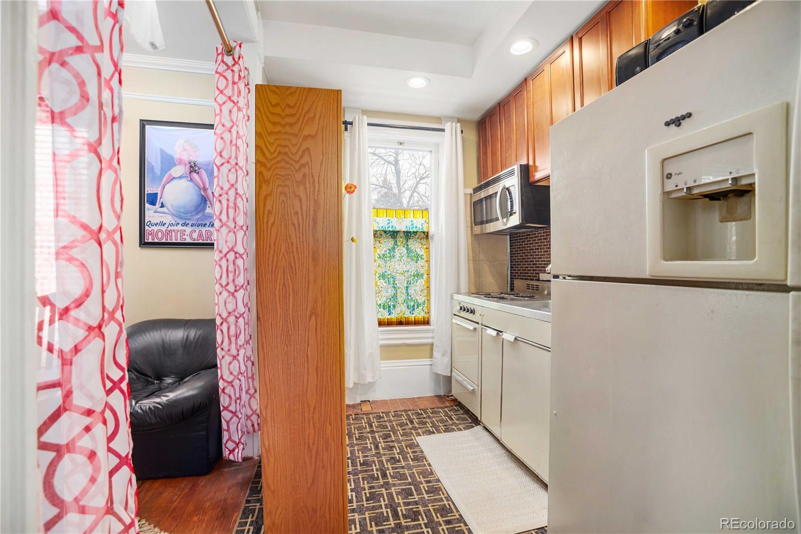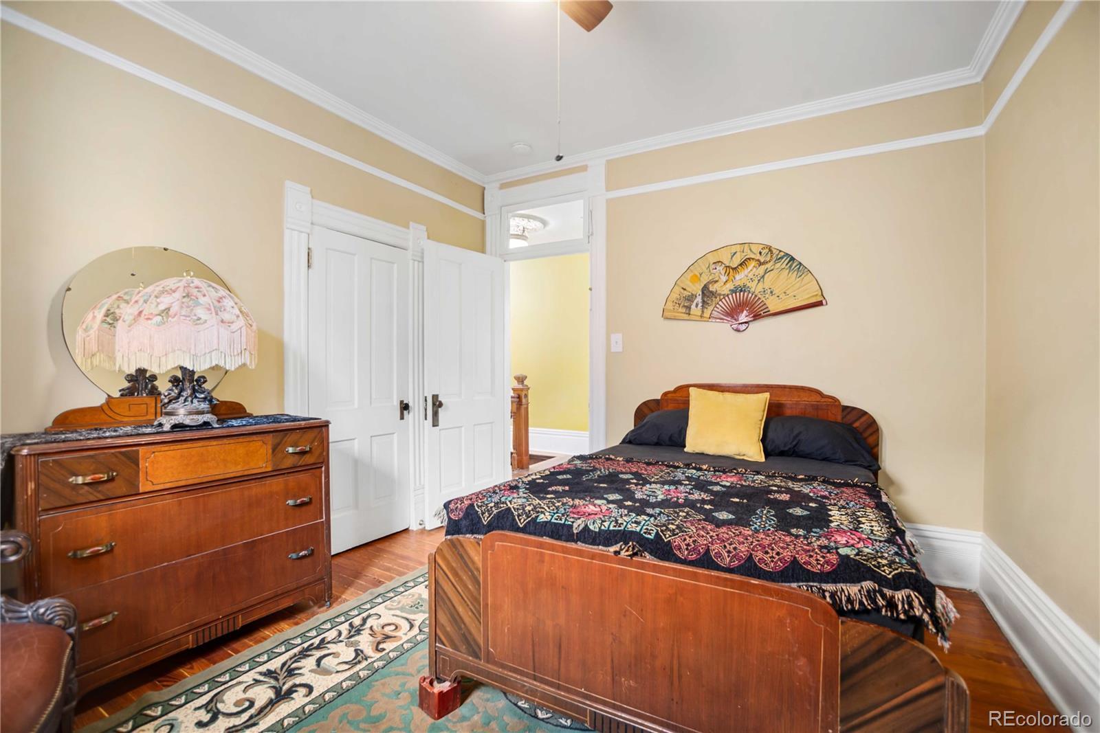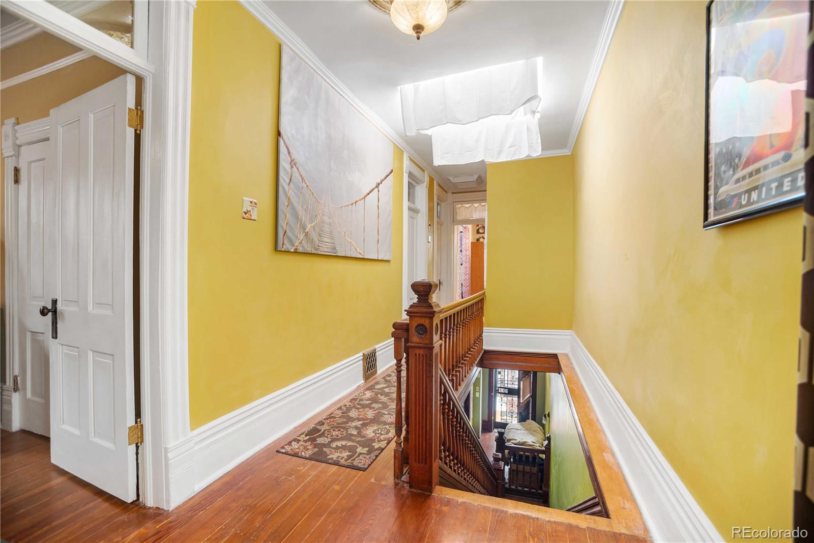 Historic 1888 Victorian Row Home on Stout Street Step into Denver’s history with this 1888 brick 2.5-story Victorian row home, beautifully preserved and rich with period detail. Located on a tree-lined side of the street just blocks from Downtown, this Landmark-designated property captures the charm and craftsmanship of a bygone era while offering incredible potential for restoration. Inside, discover ornate woodwork, intricate trim, detailed fireplace mantles, and massive pocket doors that showcase the artistry of the Victorian age. The home features three fireplaces, two wood-burning stoves, double staircases, and tall ceilings throughout. The kitchen, located at the back of the home, includes a large mudroom and open pantry — a perfect blend of practicality and old-world charm. A main-level bedroom with a wood-burning stove and a full bath featuring the original clawfoot tub complete the first floor. Upstairs, the primary suite connects to a private living room with fireplace, skylight, and kitchenette, creating a cozy retreat or potential guest quarters. The upper level also features a massive sunroom with a full wall of windows and sliding doors that open to the back deck, flooding the space with light and offering a peaceful spot. Additional highlights include large skylights throughout the upper level, a full basement, a private yard, and a detached oversized garage with alley access. Zoned U-RH-2.5, this property offers flexibility and opportunity for future use. With its ornate woodwork, preserved brick façade, and timeless Victorian character, this home stands as a true piece of Denver’s architectural history — waiting for your vision to bring it to full restoration and glory.