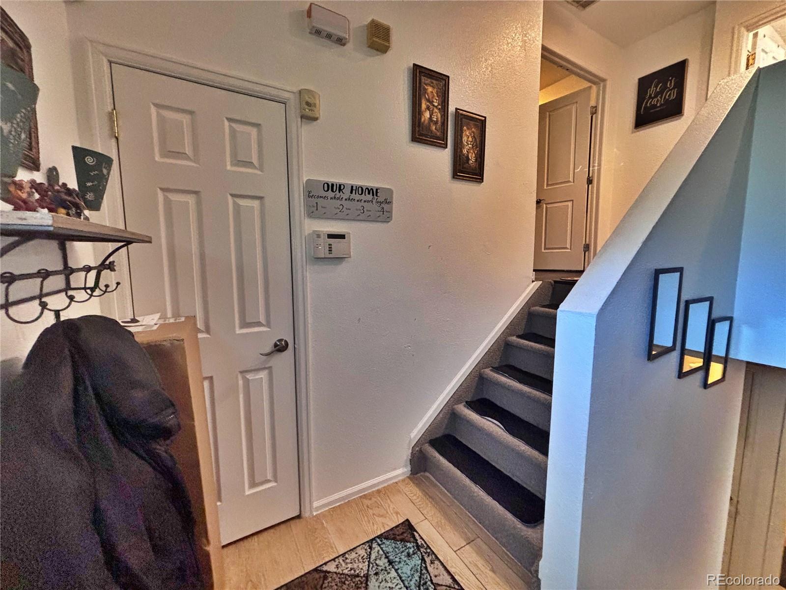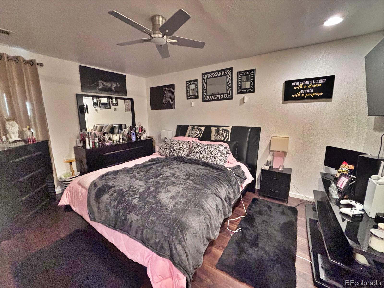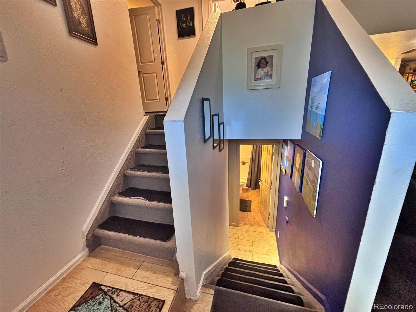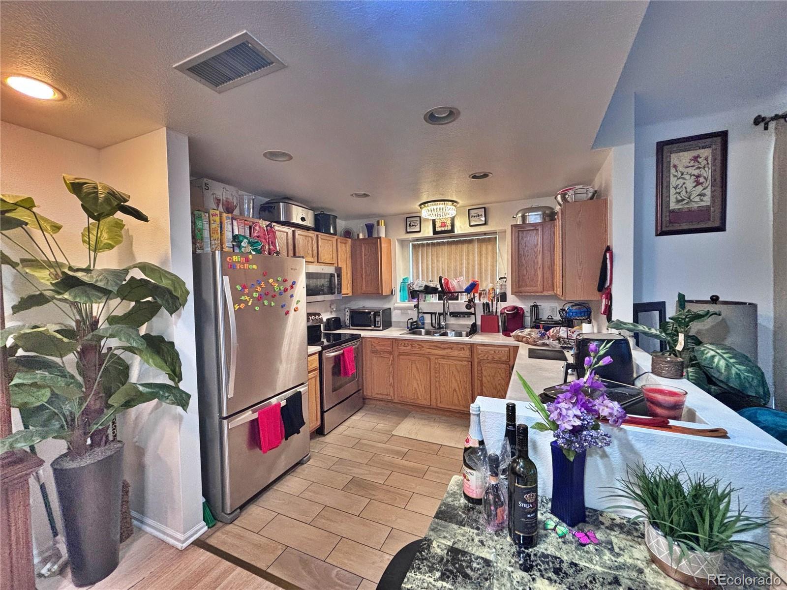 Step inside this stylish end-unit 2-bedroom, 2-bathroom townhome with soaring ceilings and a smart split-level layout. Abundant windows bring in natural light while the open-concept living, dining, and kitchen areas flow effortlessly — framed by tall ceilings and a ceiling fan that keeps the main level breezy and bright. The kitchen comes equipped with stainless steel appliances: microwave, refrigerator, range, and dishwasher. Washer and dryer included, plus central heating and air conditioning for year-round comfort. Upstairs, enjoy a spacious bedroom with its own ceiling fan and full bath. Downstairs adds another bedroom, bathroom, and a versatile recreation room — great for a home office, gym, or guest setup. Tile and LVP flooring throughout bring durability and modern style. One assigned off-street parking spot is included, right next to the unit for easy access. Located in the heart of Green Valley Ranch, minutes from DIA, light rail, parks, shopping, and more. Currently tenant-occupied with a 2-year lease in place — offering a built-in investment opportunity with immediate income potential ($2200 monthly rent) Drone Footage Link: https://youtu.be/NzN7DyRE42w