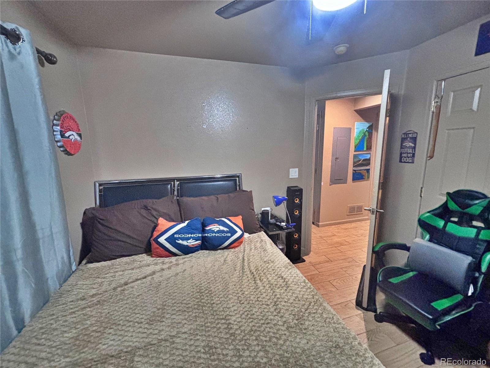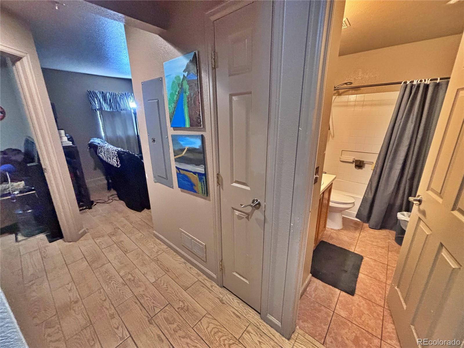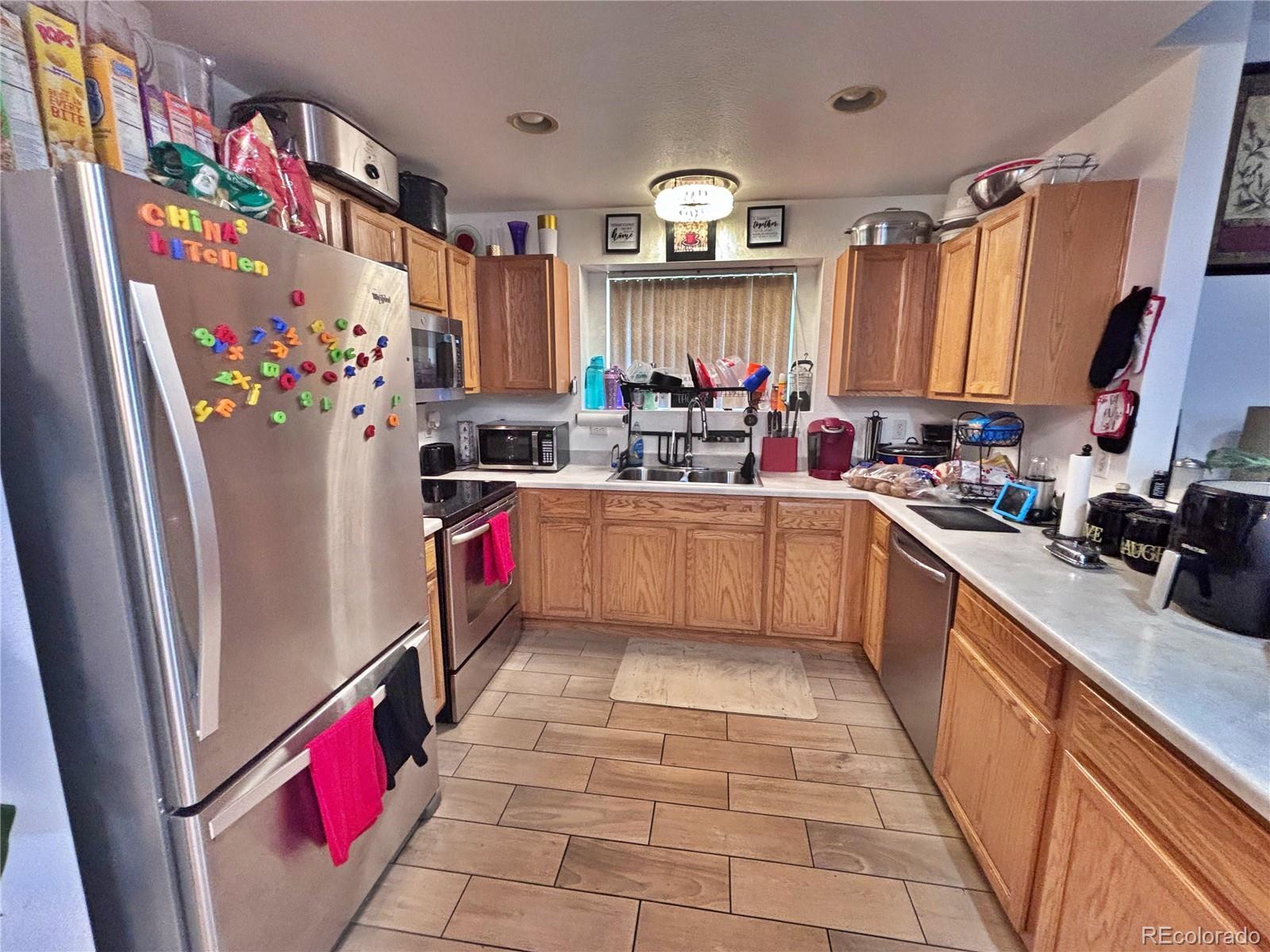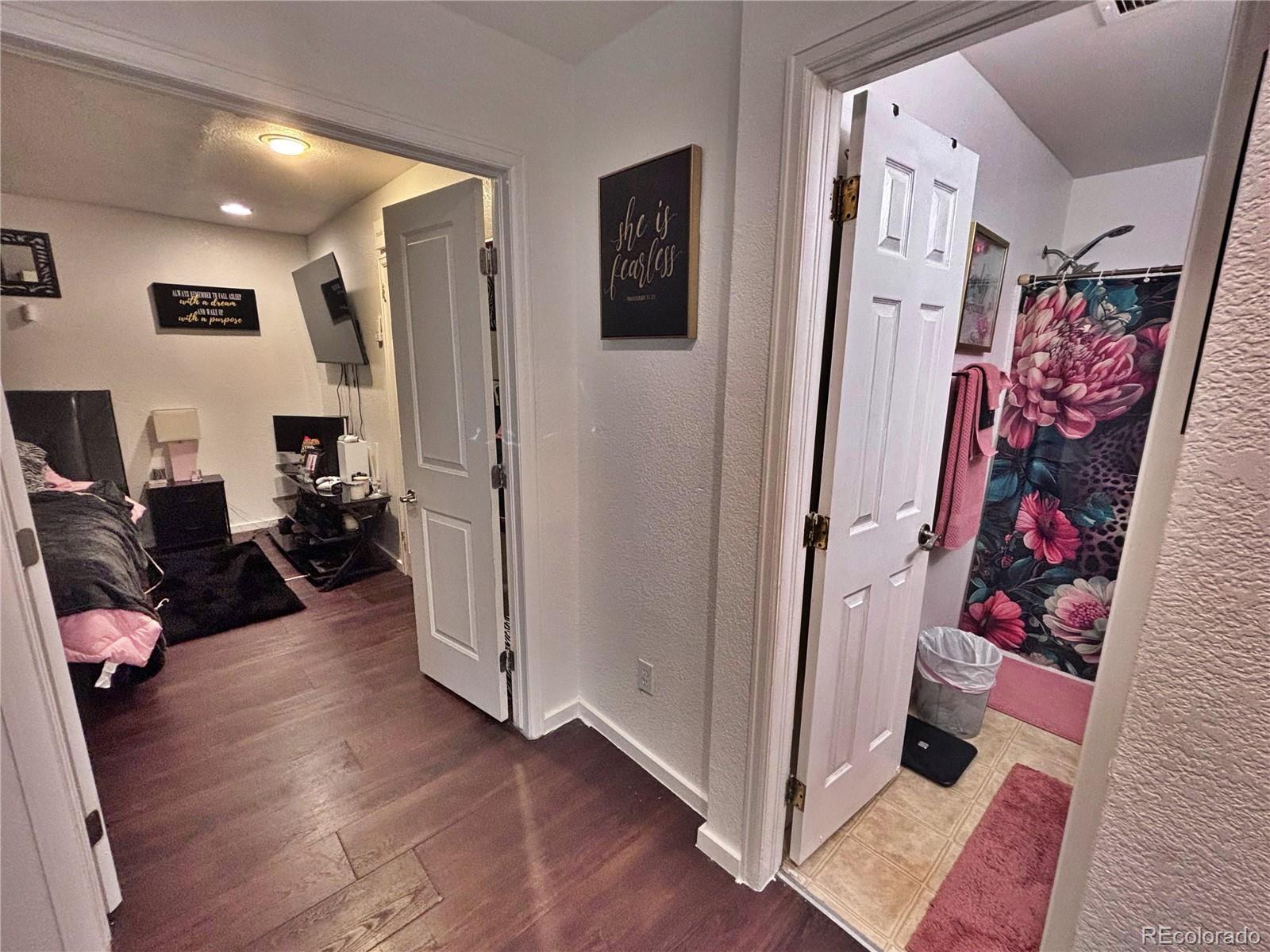 Step inside this stylish end-unit 2-bedroom, 2-bathroom townhome with soaring ceilings and a smart split-level layout. Abundant windows bring in natural light while the open-concept living, dining, and kitchen areas flow effortlessly — framed by tall ceilings and a ceiling fan that keeps the main level breezy and bright. The kitchen comes equipped with stainless steel appliances: microwave, refrigerator, range, and dishwasher. Washer and dryer included, plus central heating and air conditioning for year-round comfort. Upstairs, enjoy a spacious bedroom with its own ceiling fan and full bath. Downstairs adds another bedroom, bathroom, and a versatile recreation room — great for a home office, gym, or guest setup. Tile and LVP flooring throughout bring durability and modern style. One assigned off-street parking spot is included, right next to the unit for easy access. Located in the heart of Green Valley Ranch, minutes from DIA, light rail, parks, shopping, and more. Currently tenant-occupied with a 2-year lease in place — offering a built-in investment opportunity with immediate income potential ($2200 monthly rent) Drone Footage Link: https://youtu.be/NzN7DyRE42w