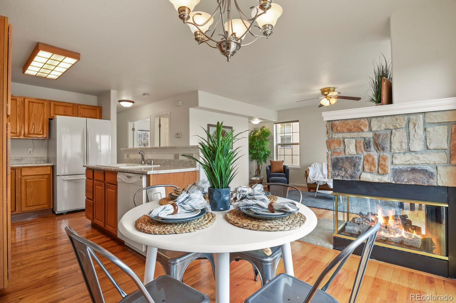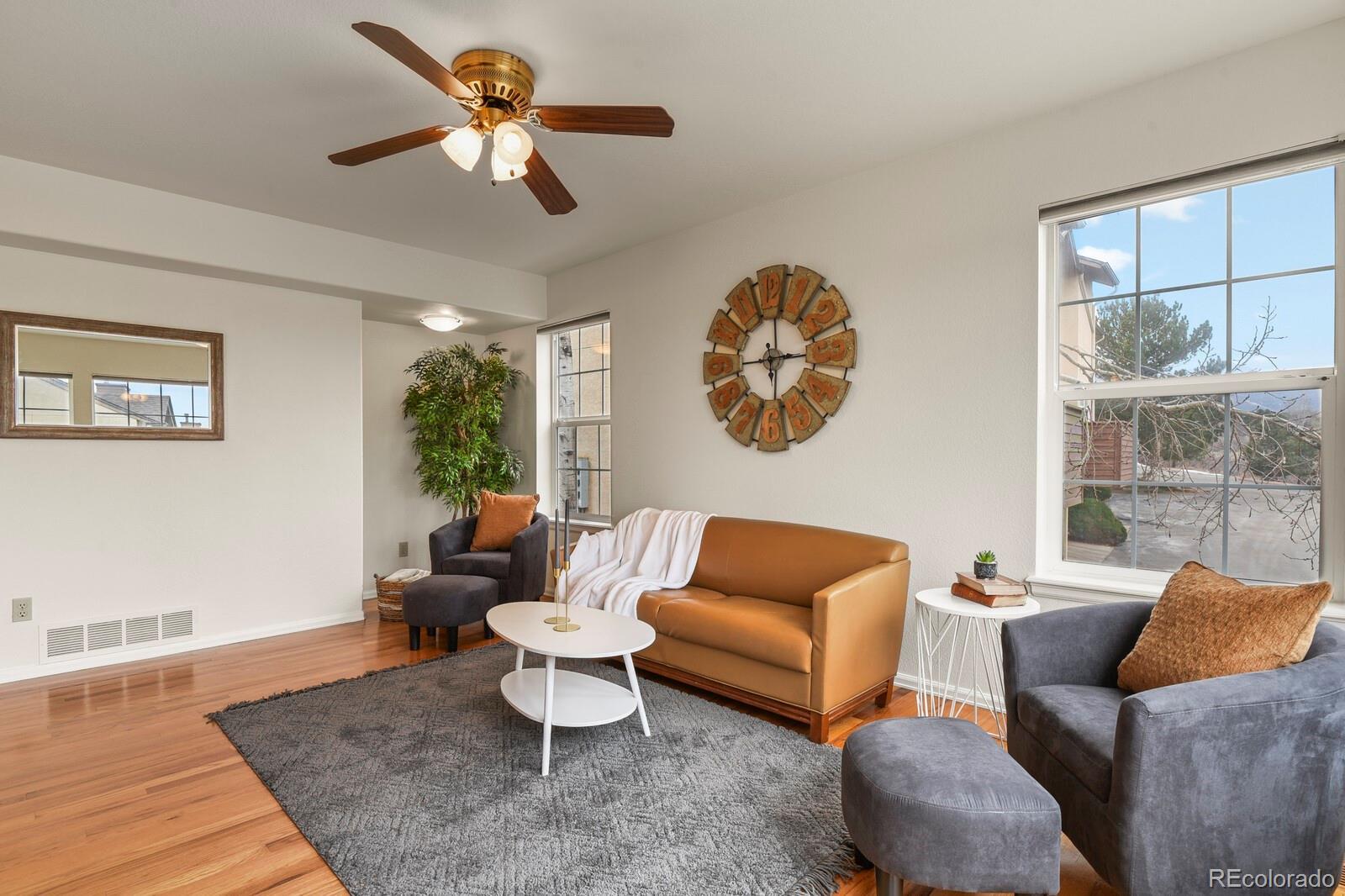 This ADORABLE condo is just waiting for you to make it your HOME! It boasts of hardwood flooring, fresh paint in the entire house and all new carpeting. The double sided fireplace will keep you warm and cozy on those cold Colorado nights! Mountain views can be enjoyed from the balcony and the primary bedroom. Primary bedroom has an updated en suite bath. The oversized 2 car garage allows for plenty of extra storage space. Located just across from Quail Lake and close to walking trails and shopping centers. You won't want to miss this little beauty because it won't last long! Information provided herein is from sources deemed reliable but not guaranteed and is provided without the intention that any buyer rely upon it. Listing Broker takes no responsibility for its accuracy and all information must be independently verified by buyers.