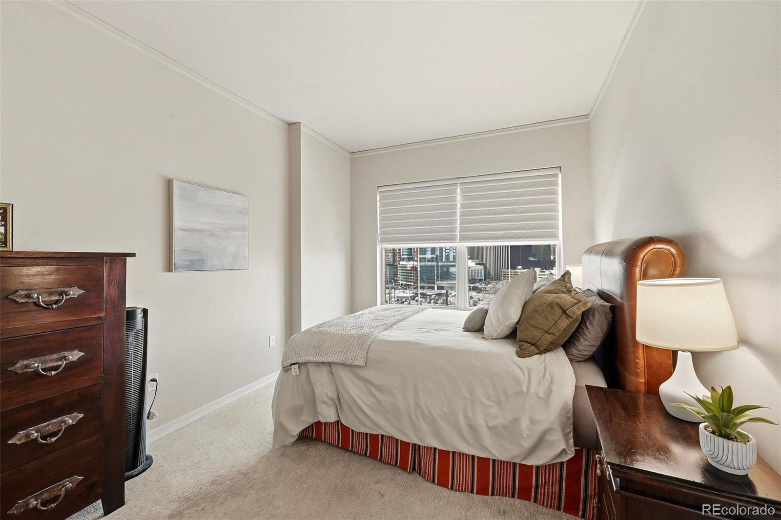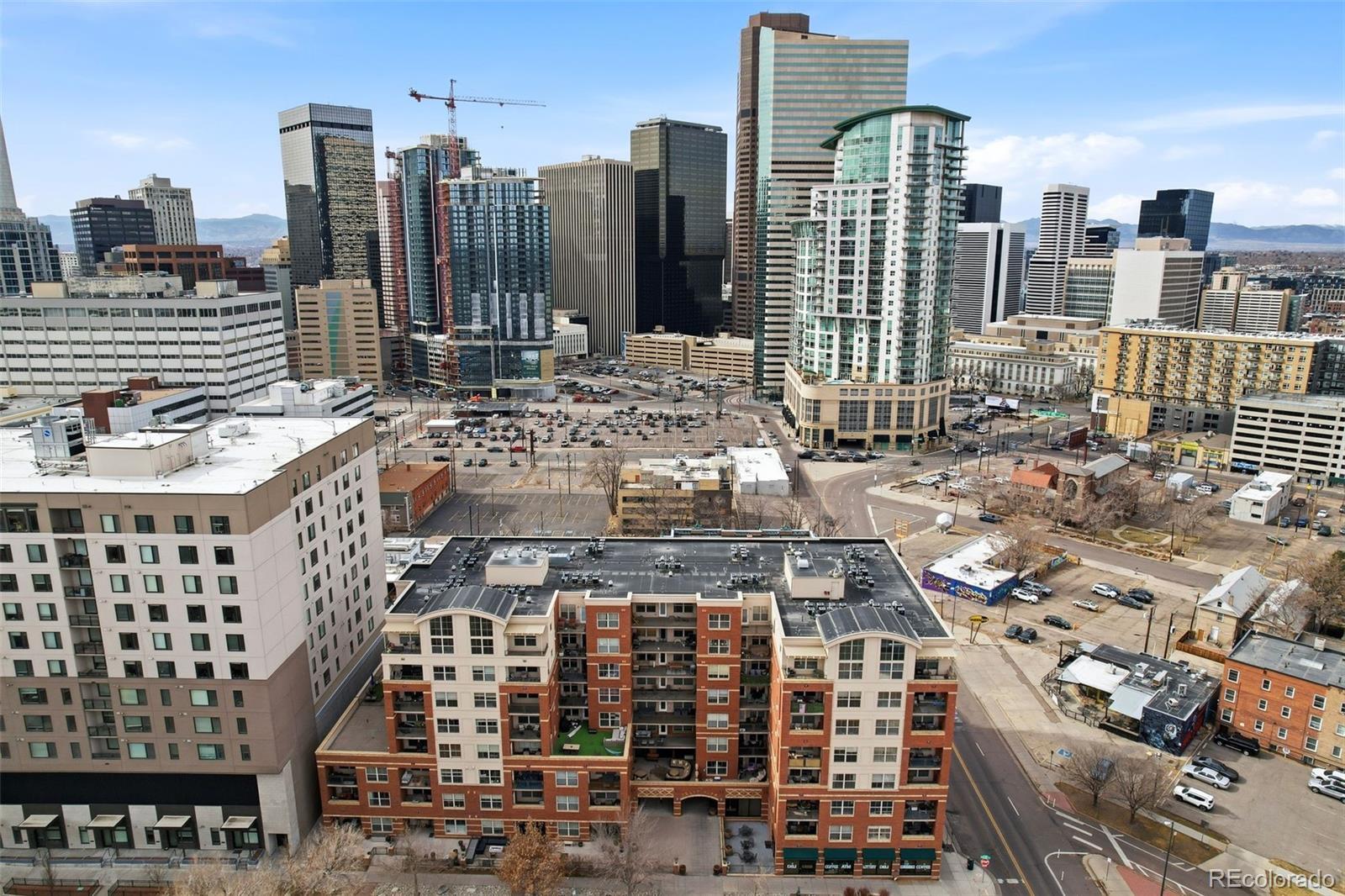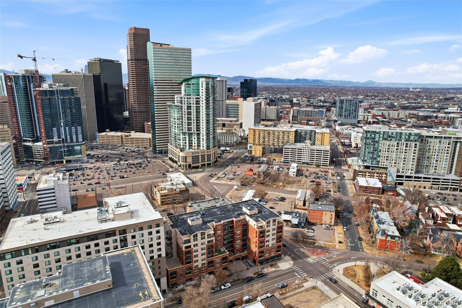 Penthouse | Top Floor Condo | Downtown Denver | City & Mountain Views | 2 Garage Parking Spaces & storage Welcome to luxury penthouse living in the heart of Downtown Denver. This 8th-floor, top-floor condo at Grant Park offers panoramic city views, mountain views, and exceptional privacy with no neighbors above. This move-in ready 2-bedroom, 2-bath condo features an open floor plan, abundant natural light, hardwood floors, fresh paint, and expansive windows showcasing the Denver skyline. The updated kitchen includes granite countertops, stainless steel appliances, large island, ample cabinetry, and seamless flow into the living and dining areas—ideal for entertaining or working from home. Step onto your private balcony/terrace and enjoy unobstructed views of the city and Colorado sunsets. The spacious primary suite offers a walk-in closet and ensuite bath with dual vanities. The second bedroom is perfect for guests, a home office, or roommate setup. In-unit stackable washer and dryer included. It is a true 2 bedroom- 2nd bedroom is good size and then the primary suite. 2 bedrooms separated by the spacious family room-kitchen areas. Secure elevator building with fob access entry, onsite fitness center, community lounge, and secure package delivery. HOA includes water, sewer, trash, recycling, exterior maintenance, snow removal, and structure insurance—making this ideal for low-maintenance living. Rare opportunity for TWO deeded garage parking spaces located next to the elevator plus a same-floor storage unit. Unbeatable walkability to restaurants, bars, coffee shops, Coors Field, Walters Pizza, The Horseshoe, Frozen Matter, Park & Co., and more. Easy access to public transportation and major commuter routes. If you’re searching for a downtown Denver condo with views, garage parking, secure access, and true penthouse privacy—this is it. Call today for your private tour of this amazing Penthouse Condo with VIEWS!