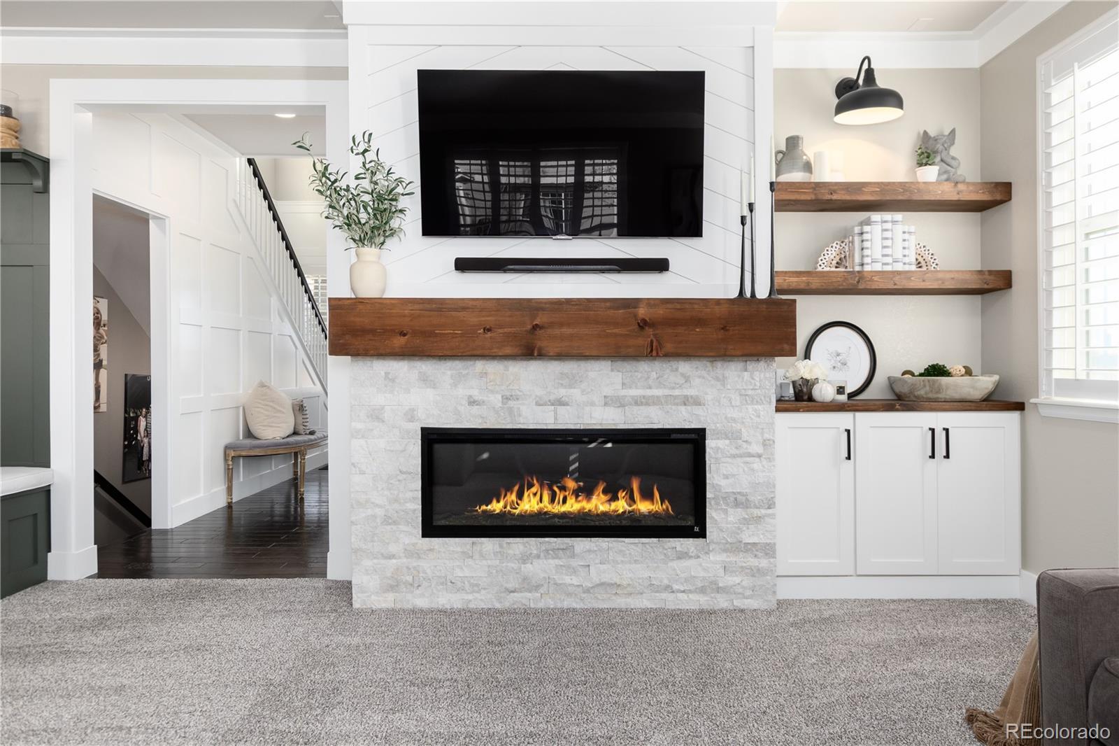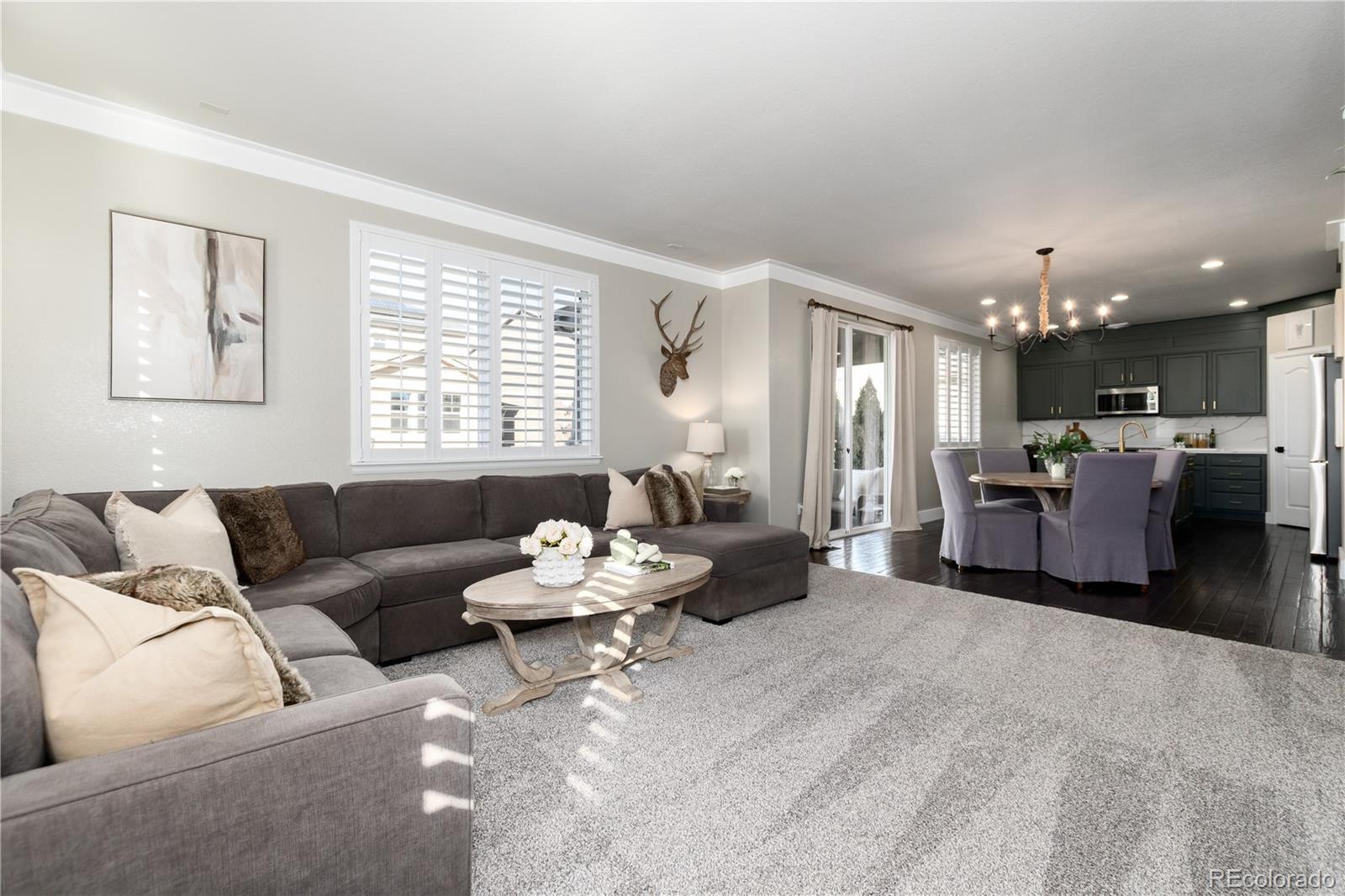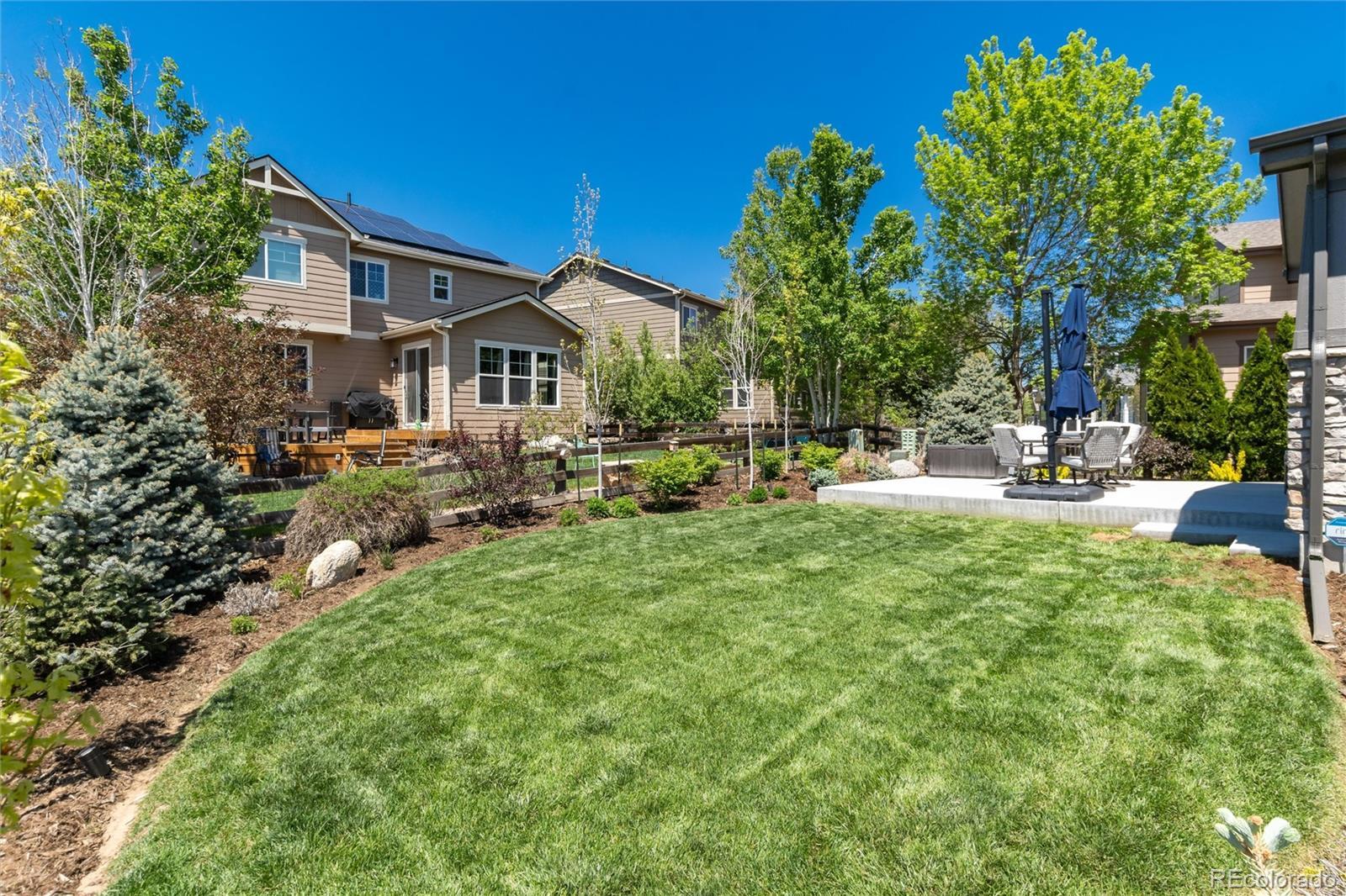 Beautifully remodeled 4-bedroom, 3-bath home in sought-after Erie Commons, offering stunning mountain views and exceptional updates throughout.The main level features a dedicated office, a spacious family room with a cozy fireplace, and a beautifully remodeled kitchen showcasing quartzite countertops, new cabinetry, updated appliances, stylish backsplash, and modern lighting. The kitchen flows seamlessly to the back patio, creating the perfect indoor-outdoor connection for entertaining or relaxing while enjoying the scenic views.Upstairs, you’ll find four bedrooms, including a generous primary suite with an en-suite bathroom updated with contemporary finishes. Additional recent upgrades include new light fixtures, baseboards, shutters, interior paint, and new carpet throughout. A finished basement adds a large recreation room—ideal for entertaining, a play space, or home gym. Exterior improvements include fresh paint, an extended concrete patio and walkway, added trees and shrubs, and a charming trellis. The roof was replaced in 2023. Ideally located across from a park with basketball, soccer, and baseball fields. Enjoy outstanding community amenities including a pump track, skate park, playground, sledding hill, and walking loop, plus a nearby library and recreation center. This home combines modern comfort, functional living spaces, and an unbeatable location.