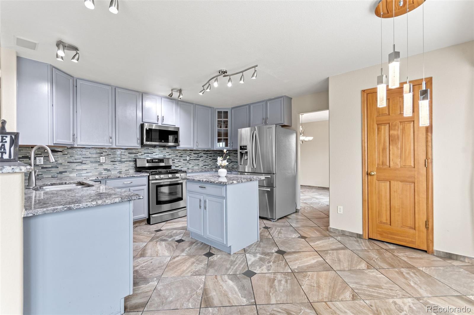Welcome to the home that stands out from the rest. Sitting at the very end of a quiet cul-de-sac on the largest and most private lot in the neighborhood, this upgraded Parker property delivers the space, setting, and views buyers are always searching for but rarely find. Inside, the home feels instantly inviting with bright natural light, modern tile flooring, updated finishes, and an open layout that flows effortlessly from room to room. The kitchen has been refreshed with quality upgrades and opens to the living and dining areas—perfect for everyday living and entertaining. Large windows capture long-range views, giving the home a warm, open feel that you won’t find in typical subdivision homes. The fully finished basement adds a ton of value and flexibility—ideal for guests, a gym, gaming/media room, office, or a second living space. Upstairs offers well-sized bedrooms and a comfortable primary suite with great privacy. Step outside and you’ll see what truly sets this home apart. The oversized backyard is flat, usable, and completely private, with no through traffic and plenty of room for gatherings, play, pets, or future outdoor upgrades. Whether you’re enjoying sunsets, hosting friends, or just wanting space to breathe, this lot delivers something special. With upgrades throughout, a finished basement, a premium cul-de-sac location, and one of the best lots in the area, this home checks every box and then some. Homes like this don’t come up often—especially in Parker—and they don’t last long.