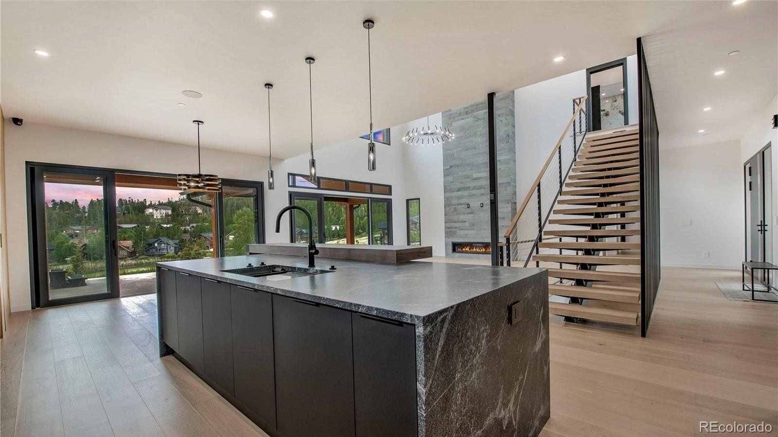 Welcome to 328 Raven Golf Lane — a spectacular luxury residence perfectly positioned on the prestigious Raven Golf Course in the greenbelt of Silverthorne. This thoughtfully designed, modern mountain home offers panoramic fairway and mountain views paired with high-end finishes and architectural sophistication. Featuring 6,339 sq ft, this estate includes 5 bedrooms, 6 bathrooms, and expansive living spaces flooded with natural light. As you step inside to an impressive open floor plan that blends refined style with mountain comfort, highlighted by soaring ceilings, oversized windows, premium finishes, and quality craftsmanship throughout. The chef’s kitchen boasts Miele appliances, custom cabinetry, and generous prep space — ideal for both everyday living and entertaining. Multiple living areas flow seamlessly to outdoor spaces that overlook the golf course and surrounding peaks. On the main level, the primary suite offers a serene retreat with spa-like bath and stunning vistas, while two additional ensuite bedrooms provide comfort and privacy for family and guests. Additional desirable features include multiple laundry rooms, dedicated office/den space, fitness studio, indoor sauna, and a luxurious lower-level entertainment area complete with wet bar, theatre and fireplace. Outdoor living is equally impressive with a hot tub with a maintained and manicured cross-country skiing and golfing just outside the expansive, custom sliding door. This estate is on the 1st Hole of the course, which combines modern mountain luxury, thoughtful design, and a premier golf course setting — a rare opportunity to own one of Silverthorne’s most distinctive homes. Located 10 minutes from Keystone, and 20 minutes to both Breckenridge and Copper Mountain. With a paved cycling trail to the slopes, or you can hop on the public transit nearby. There is not better time to get the serenity of the mountains and golfing without all of the traffic.