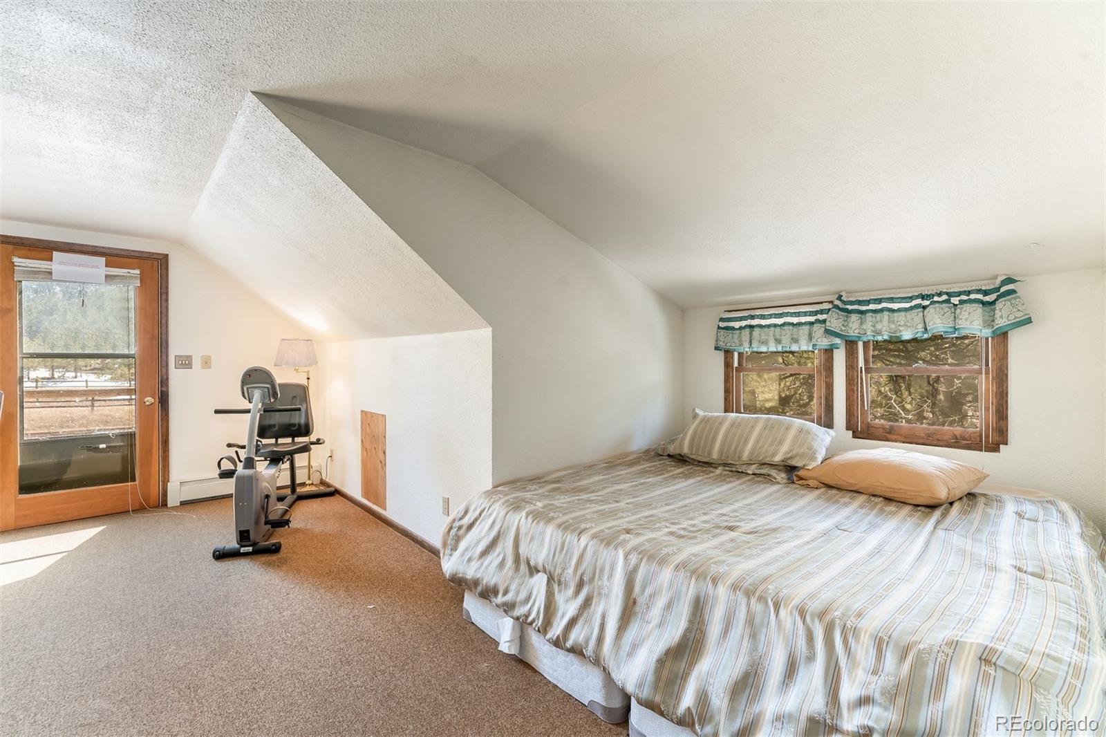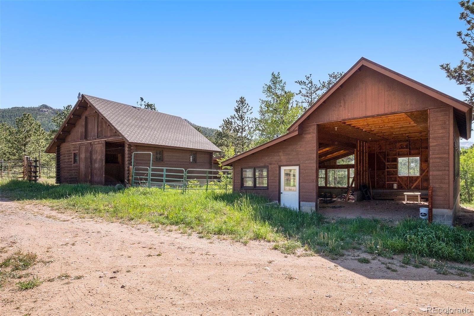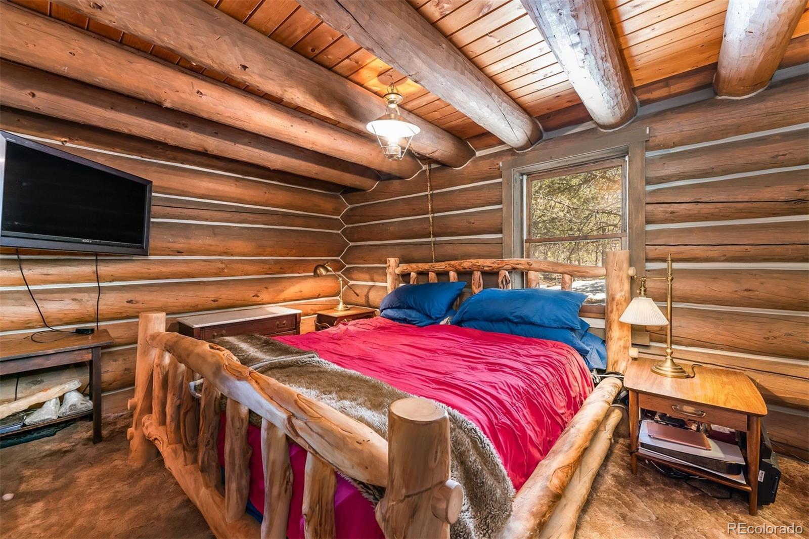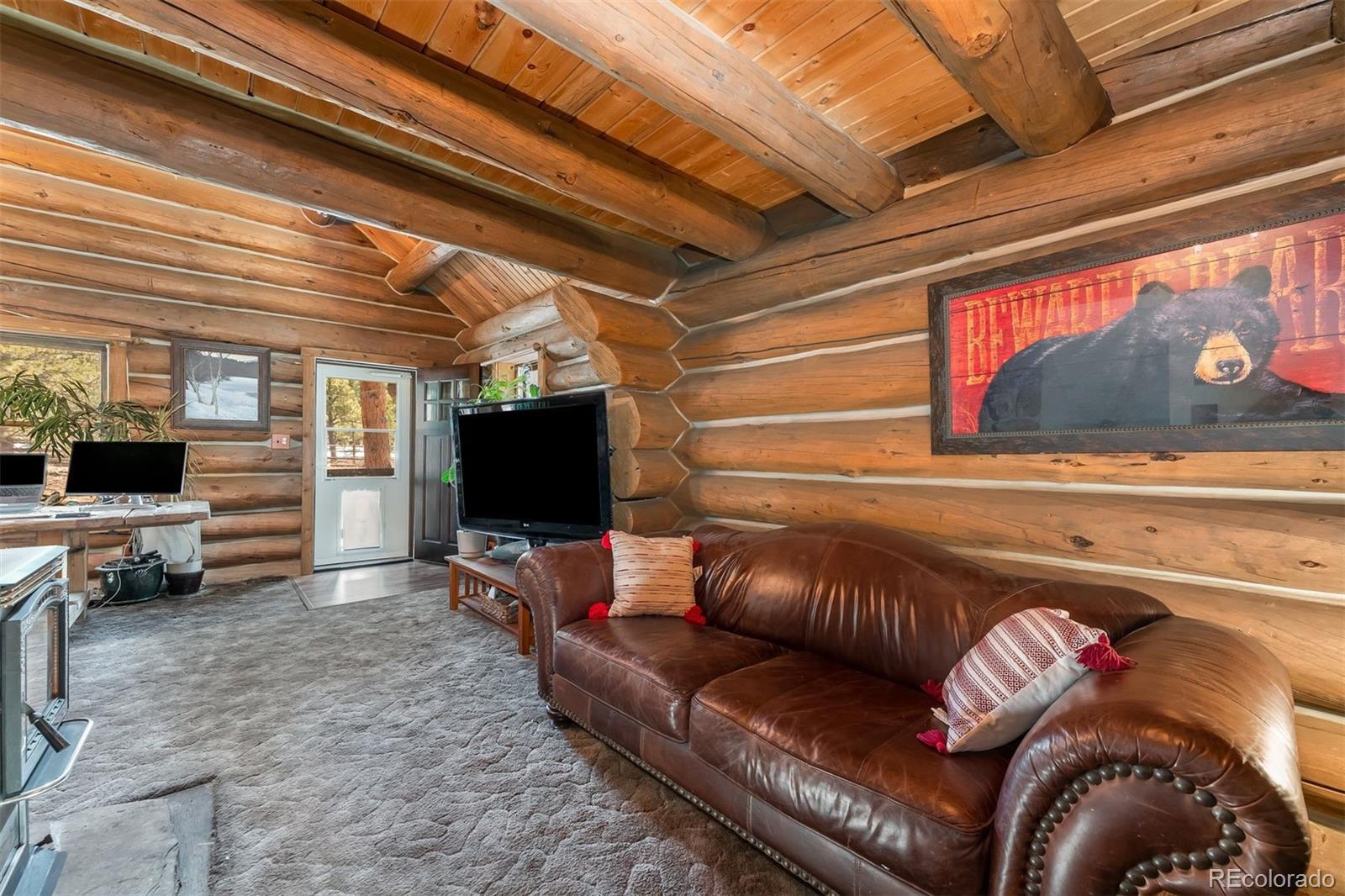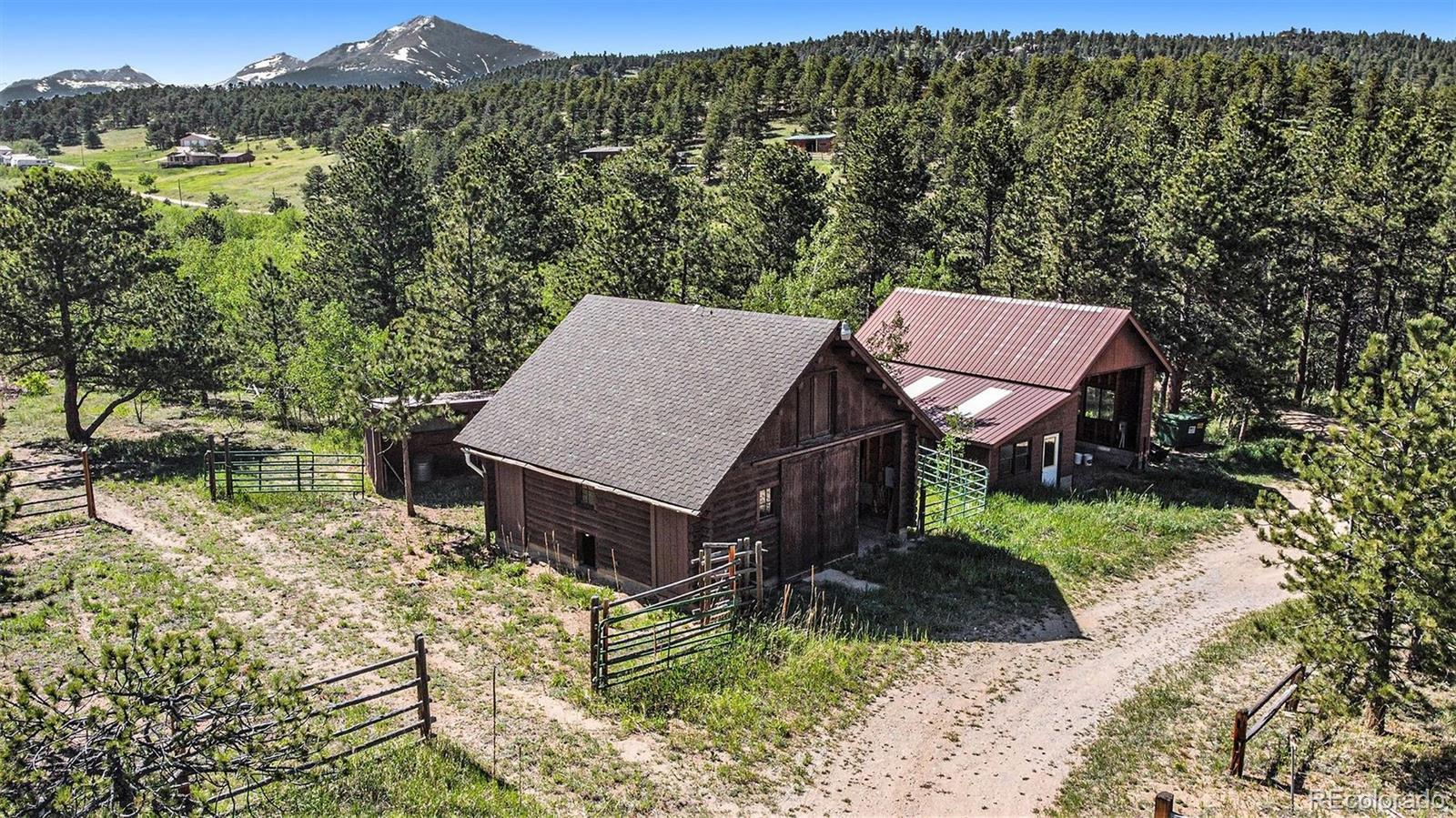 Welcome to a one-of-a-kind custom log home retreat nestled on a gated and fenced 8.9 acre mountain meadow, complete with a spring-fed pond, seasonal brook, and stunning panoramic views. This is your chance to own a true Colorado mountain ranch-peaceful, private, and thoughtfully designed for comfort and versatility. The classic log home features three bedrooms, two bathrooms, private study, a spacious loft, and a fully finished walk-out basement. Inside, you'll find vaulted ceilings, a dramatic two-story moss rock fireplace, rich wood finishes, and sandstone window sills that add timeless character. The home offers a wood burning fireplace along with a pellet stove for cozy mountain evenings, a lofted balcony that overlooks the great room, covered porches perfect for enjoying the quiet surroundings, and a hot tub where you can soak under the stars. Above the heated two-car garage is an in-law apartment, ideal for guests, rental income, or caretaker. Additional structures enhance its function and charm, including a newer RV garage with an attached sunroom or greenhouse space, as well as a two-stall barn complete with a garage bay, hay loft, and a brand-new loafing shed with corral-ready for your livestock or horses. The land offers plenty of space for a small farm, shop, or creative retreat, and the solid construction throughout the property showcases attention to detail and lasting craftsmanship. Wildlife is abundant, and the views stretch for miles, making this the perfect spot for those seeking tranquility, natural beauty, and a deeper connection to the land. Whether you're dreaming of a working farmlet, a peaceful family getaway, or a full-time mountain sanctuary, this property delivers. Located just 5 min from Roosevelt National Forest, 20 mins from Estes Park or Lyons, 35 mins to Nederland and skiing at Eldora, and just a scenic 1.5-hour drive to Denver International Airport-close enough for convenience, yet far enough to truly feel away from it all.