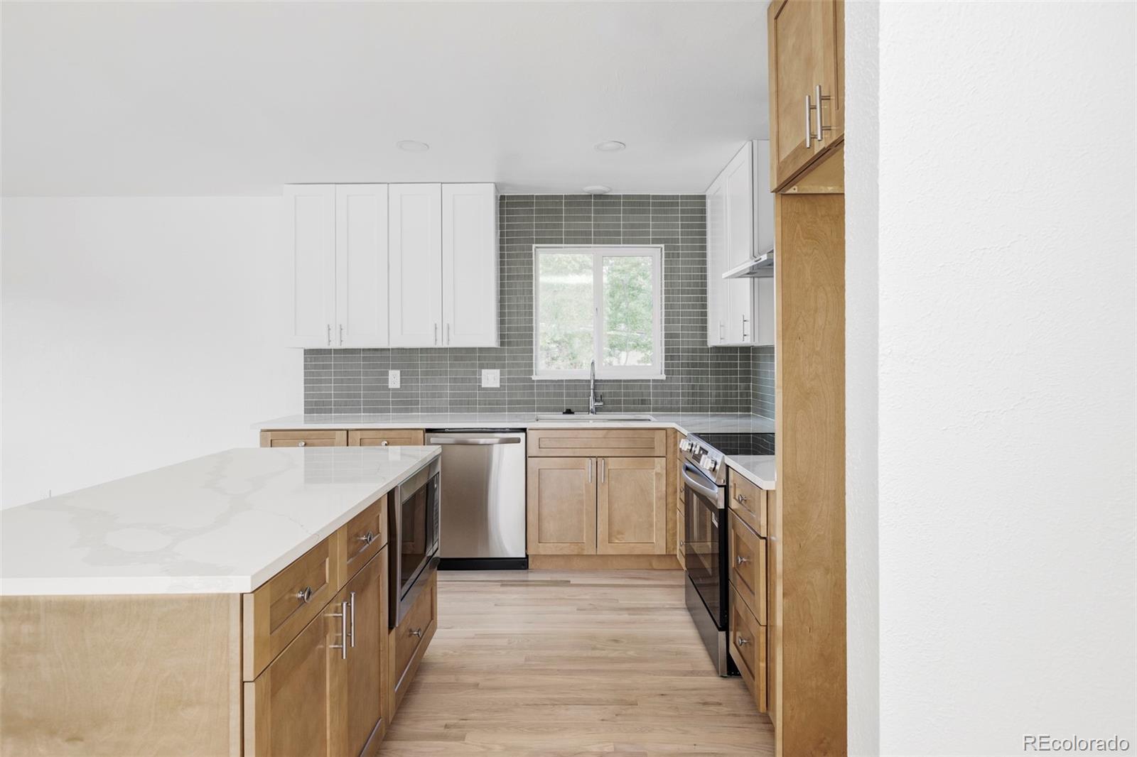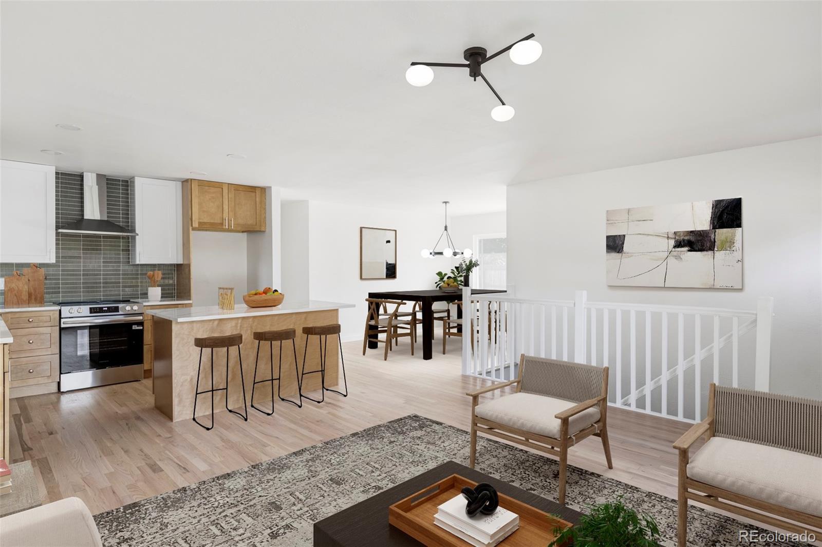 Seller to consider Buyer incentive with competitive offer, and if closing on or before 12/31/25. Terms negotiable. Incentive not tied to use of any specific lender or agent. Buyer free to choose any lender or financing program. Welcome to this beautifully remodeled 5-bedroom, 3-bathroom home in Longmont’s desirable Southmoor Park neighborhood. Bathed in natural light, the open-concept main level features refinished wood floors and a seamless flow between the living room, dining area, and chef-inspired kitchen—complete with two-tone cabinetry, quartz countertops, stainless steel appliances, and a large island with bar seating. Upstairs, you'll find three spacious bedrooms, including a serene primary suite with a remodeled ¾ en-suite bath, plus a second full bathroom with modern finishes. The fully finished basement offers two additional bedrooms, a third bathroom, a large family room, and a full-size utility/laundry room with washer/dryer hookups—ideal for guests, multi-gen living, or flex space. Outside, enjoy a private fenced yard, mature trees, and a spacious lot perfect for relaxing or entertaining. Additional highlights include central A/C, forced air heating, stylish lighting and fixtures, a 2-car attached garage, and an extended driveway for extra parking. Move-in ready and minutes from schools, parks, and shopping—this is the perfect blend of modern comfort and timeless style. Note: Property is virtually staged
