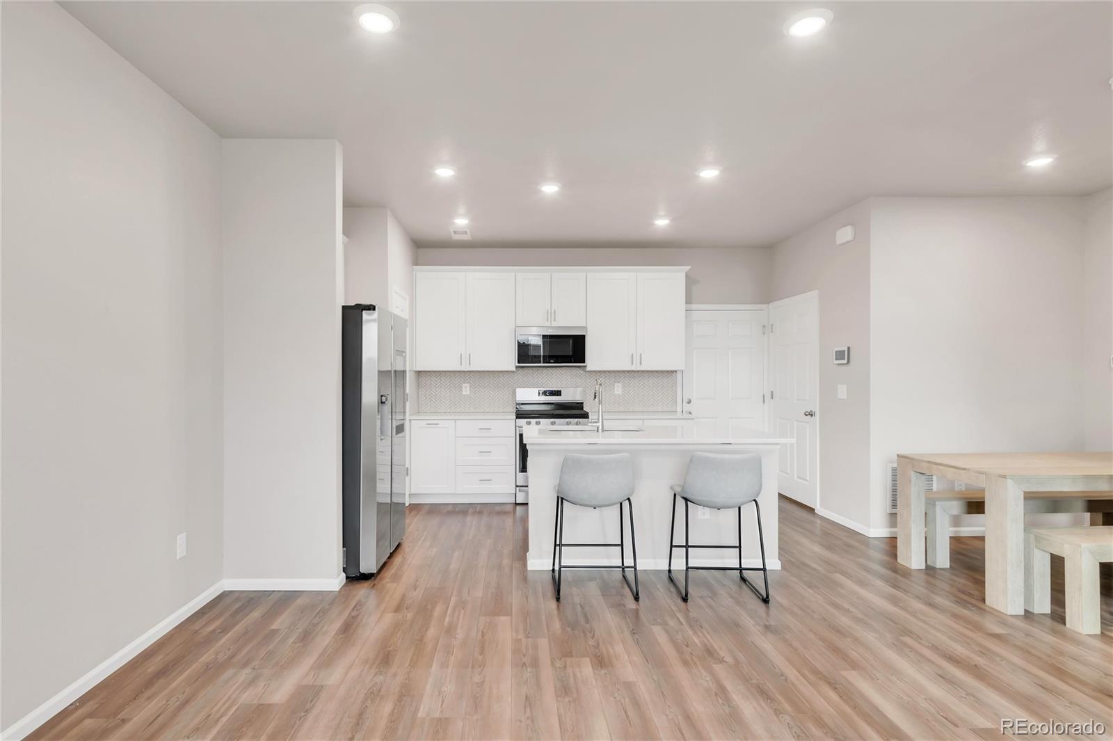 A rare opportunity awaits! Beautifully maintained, nearly new townhome built in 2023 that blends comfort, style, and an inviting Littleton lifestyle. Bathed in natural light and framed by beautiful views, this residence offers an open, airy layout that flows seamlessly from the welcoming entry into a bright living area with expansive windows and effortless connection to the kitchen and dining spaces. The modern kitchen serves as the heart of the home, featuring sleek cabinetry, a spacious island, and stainless steel appliances. A serene primary suite provides a peaceful retreat with a generous walk-in closet and a spa-like bath, while additional bedrooms and flexible living spaces offer ideal accommodations for guests, a home office, or hobbies. Thoughtful conveniences such as an upper-level laundry and an attached garage enhance everyday ease. Situated with a dog park right outside the townhome and close to scenic trails, shopping, dining, and all the best of Littleton, this home offers exceptional comfort, convenience, and lifestyle in a quiet, welcoming community.