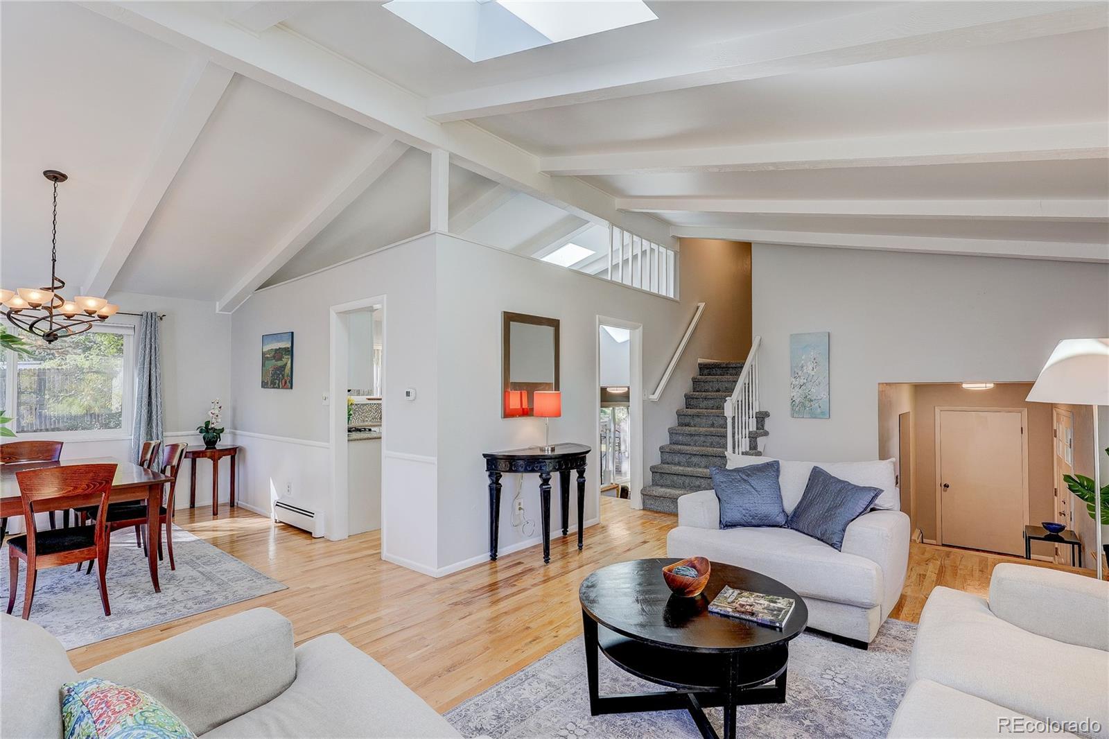 Southmoor Contemporary that is a great value! Five bedrooms-4 bathrooms on an oversized lot..perfect for garden lovers, deck dwellers entertainers! Vaulted ceilings! Clerestory windows! Convenient to shopping and restaurants, I-25 and DTC. This warm and inviting home gives everyone ample space for living, cooking and enjoying each other! Perfect for play area's, game rooms, hobbies Easy move in to a million-plus neighborhood. Large open living room, lower family room with a fireplace and lower level 'rec' room! Inviting upper level features four bedrooms, two baths, including a lovely primary with en-suite bath & walk-in closet. The main floor’s wonderful design offers sun-filled living and dining rooms and a spacious kitchen area...a few steps down opens to the TV room complete with gas fireplace! But wait, there's more! The sunny laundry and half bath reside on the family room level as well as backyard access. To round out the living areas, a large lower level hang-out/rec/chill area complete with built-in bar and bonus 5th bedroom allow for separation from the rest of the home for gaming, etc. This real beauty offers so much...move-in-ready! New indoor and outdoor paint, new upper level carpet, Aerocool pro series evaporative cooler, Boral concrete tile roof. Large .33 acre lot with mature trees and landscaping, full sprinkler system and an oversized deck you’ll enjoy year-round. Walking distance to parks, award-winning elementary school, and close to shopping/dining, I-25, downtown, DTC…yet away from it all. Smart size, smart price, move in ready. small $25. a year HOA fee.