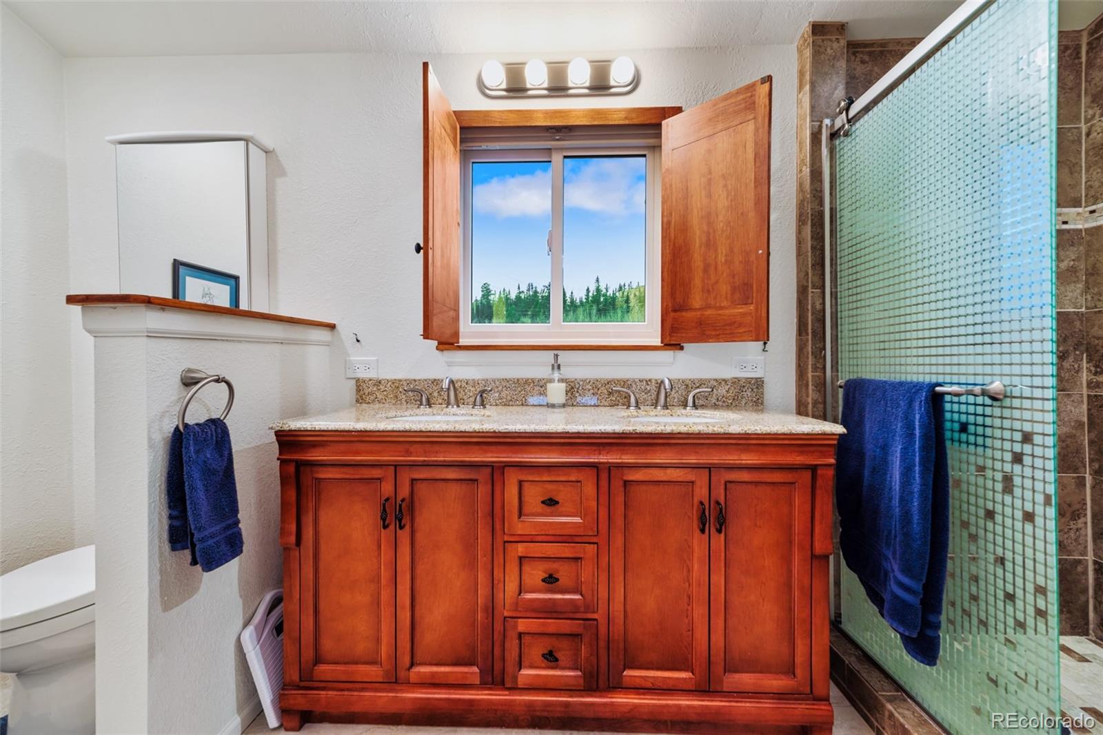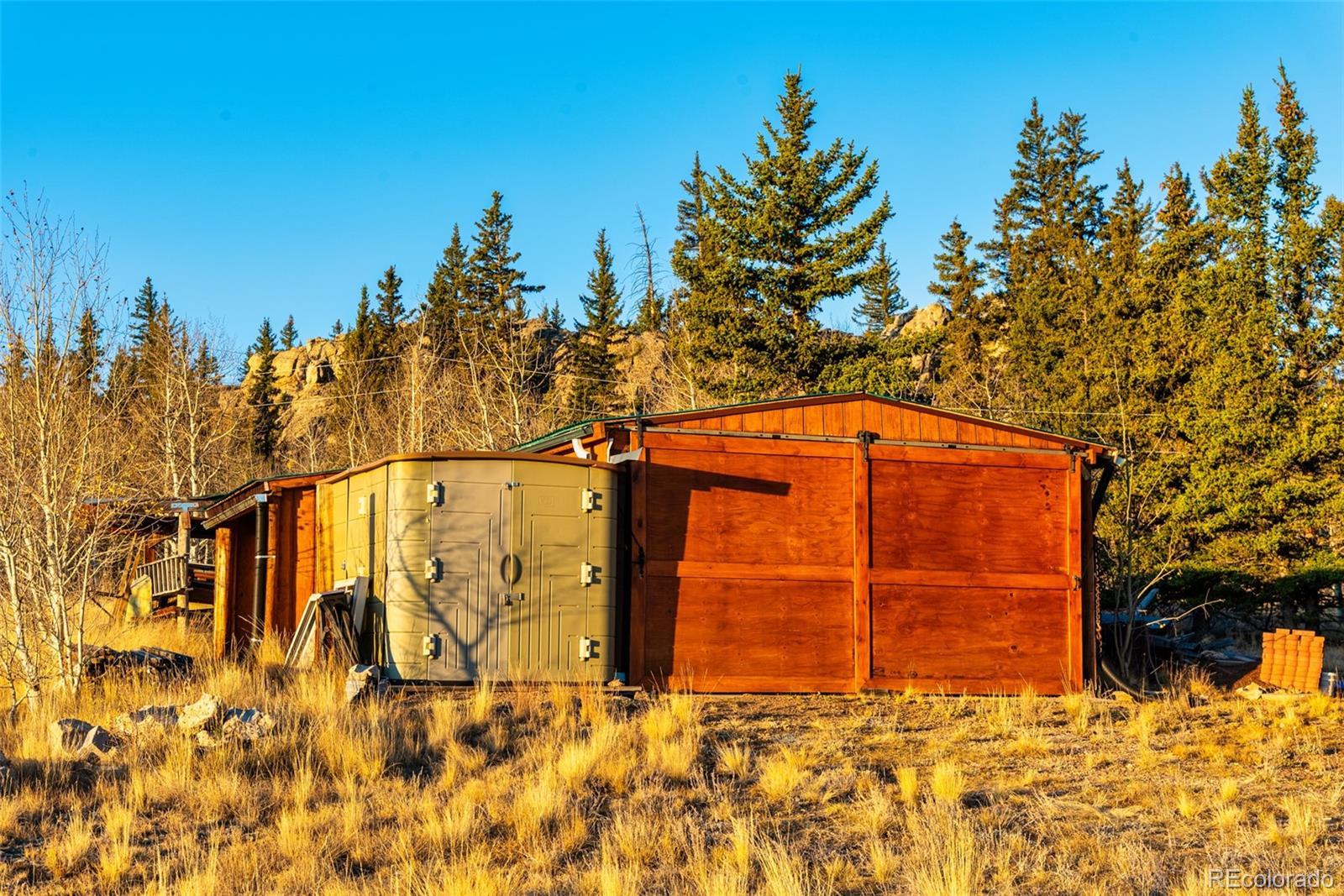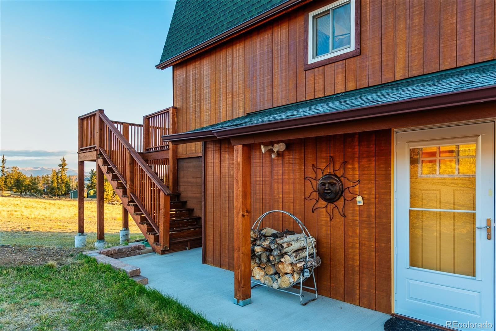 This rustic, 3 level mountain home fits perfectly into its setting. The four acre homesite is backed up to National Forest and has expansive, stunning mountain views. The cabin sits back on the property to maximize the views. Inside the home is bright, modern, open, and recently updated. The main level which is accessible from the lower level and from outside has a great room with a cozy wood stove for those chilly evenings, an updated, open kitchen, dining space, and a full bath. Off to the side is a roomy primary suite with a 3/4 bath and lots of storage. All of this opens up to a huge wrap around deck, perfect for enjoying your morning coffee, watching the sunsets, or entertaining. The upper level has sitting room, a 3/4 bath, a bright, sunny bedroom, and a bonus room that would be the perfect home office space or room for guests. The bonus room opens to a private balcony, great for taking in the stunning views. The lower level which is fully accessible from the outside has a covered entry with a concrete patio. Inside is a tile mud room, laundry room, and a workshop/utility room with plenty of shelving and storage. The rest of the lower level is an enormous living space that would make a great game room, play room, or even more space for guests. Every level has French doors and plenty of windows that bring in the beautiful Colorado landscape and let in so much light. Across the circular, gravel driveway is a two car garage and a shed with plenty of room for your vehicles and all your mountain toys. This beautiful mountain cabin has been completely refurbished and meticulously maintained. In addition to easy access to National Forest, the Stagestop subdivision offers its residents some of the best private fishing in the mountain region. There are over 17 miles of privately stocked river fishing and three stocked ponds. Whether you are looking for a full time residence, a mountain getaway, or a short term rental prospect, don't miss this one.