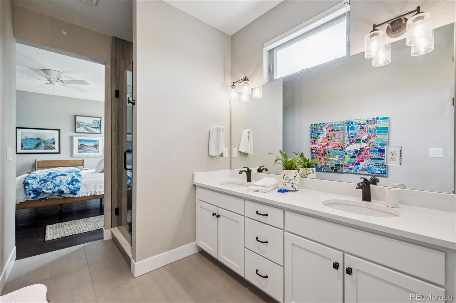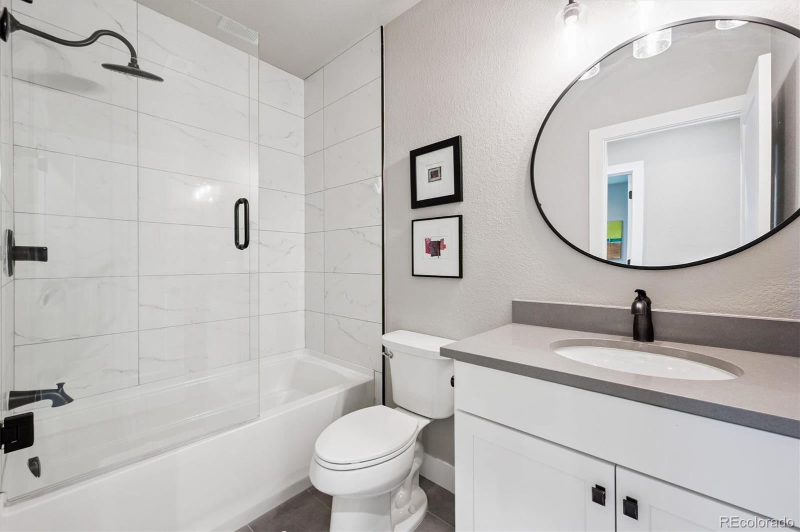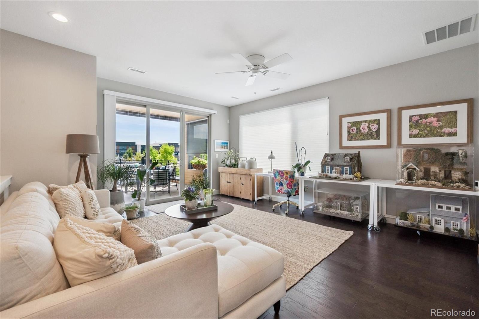 Exquisite town home in the highly sought-after Boulevard One community! Boasting a stunning open floor plan and spacious chef's kitchen. Featuring sleek black stainless steel appliances and an impressive kitchen island with a striking quartz waterfall edge. Step into the light and bright living area and the main floor study, graced by a double-sided fireplace. Retreat to the luxurious main floor primary suite, complete with a spa-like bath that includes a large shower, double sinks, and exquisite fixtures. The elegance is further enhanced by hardwood floors that flow seamlessly through the main and upper levels. Uncommon for its kind, this home also features an additional primary bedroom on the upper level, adorned with vaulted ceilings and a private bath for ultimate comfort. The fully finished basement, one of the largest in the community, is an entertainment haven, showcasing a vast media room.. A spacious bedroom also serves as a versatile home gym, a storage room with a utility sink and shelving ensures you’ll have space for all your essentials. Two convenient laundry rooms add to the ease of daily living, and you'll appreciate the financial benefits of owning solar panels outright—not leased. With two HVAC systems ensuring optimal comfort across the main and upper levels, along with Hunter Douglas blinds.. The two-car attached garage is finished with epoxy flooring and features ample storage options. This home is like brand new; it’s never been lived in. Situated just steps away from all the excitement and convenience that Boulevard One offers—including Clark’s, Denver Beer Company, Target, and the vibrant Lowry Town Center, home to the beloved Lowry Beer Garden, Cafe Mercato, North County, and The Officer's Club. Don’t let it slip away!