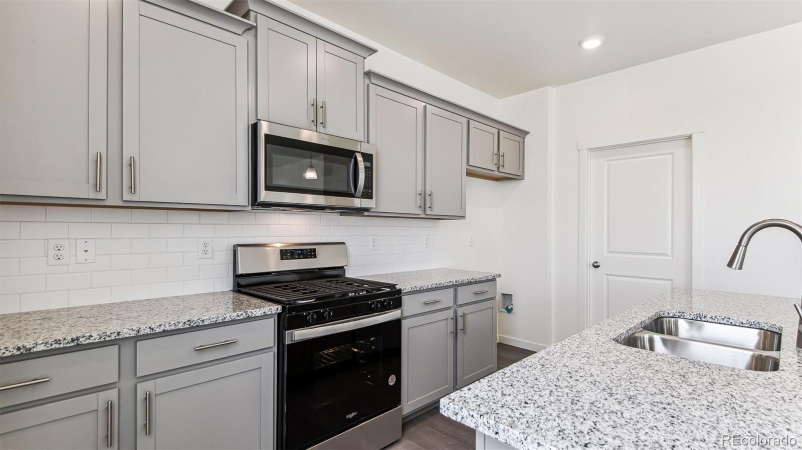 The Gable is a Gorgeous 2-story home offering 4 bedrooms, 2.5 bathrooms, and 2,525 sq. ft. of living space. Stainless steel appliances, including gas range, microwave, and dishwasher. Granite countertops with under-mount stainless steel dual-basin sink. Smart home technology package (smart speaker, video doorbell, programmable thermostat, and touchscreen). Expansive 9’main level ceilings, chrome faucets in kitchen and baths, tankless water heater, low-maintenance vinyl flooring in baths and laundry. The Vantage neighborhood includes a unique set of features and amenities such as TPC Colorado privileges including use of their world-class Fitness Center, Resort Style Pool with swim-up bar and hot tub, and restaurants. Use of Vantage Pool, Splashpad, Grilling Area, Playground and 2 Dog Parks in the 5-acre, on-site complex are also all included in the annual HOA. ***Photos are representative and not of actual property***