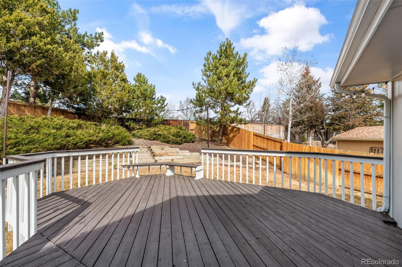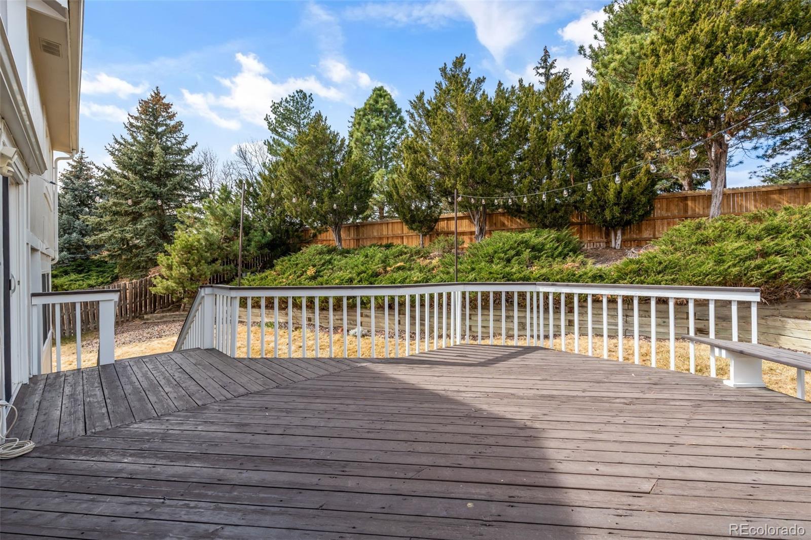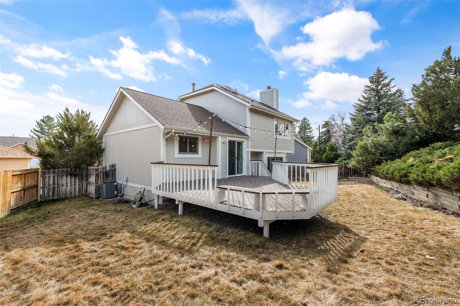 Tucked into a quiet cul-de-sac within a cul-de-sac, this beautifully maintained Westminster home offers the perfect balance of natural light, comfortable living spaces, and a backyard designed for enjoying Colorado’s outdoor lifestyle. Step inside to soaring ceilings and skylights that fill the home with natural light throughout the day. The open layout connects the dining area, kitchen, and living spaces in a bright, inviting way. The kitchen sits at the heart of the home, featuring granite countertops, stainless steel appliances, abundant cabinetry, and bar seating that makes entertaining easy and everyday living effortless. Downstairs, the cozy living room centers around a beautiful white brick wood-burning fireplace, creating the perfect space for movie nights and relaxing Colorado evenings. Upstairs, the vaulted primary bedroom offers an impressive sense of space and natural light, providing a peaceful retreat at the end of the day. Step outside to one of the home’s most special features: a large elevated deck overlooking a spacious tiered backyard surrounded by mature trees and landscaping. With built-in seating and string lights overhead, the space is perfect for summer dinners, morning coffee, and evenings under the Colorado sky. The basement offers incredible flexibility, currently used as a home gym with potential for additional living space, a future bedroom, and bathroom with existing rough-ins. Residents enjoy walkable access to trails, the community pool, a neighborhood fishing pond, grocery stores, Starbucks, The Brunch House, and local favorite G’s Tacos. Just minutes away, Standley Lake Regional Park offers paddleboarding, kayaking, scenic trails, and beautiful sunsets. With easy access to both Denver and Boulder and a welcoming neighborhood known for friendly neighbors and gatherings, this home offers the ideal blend of comfort, lifestyle, and location.