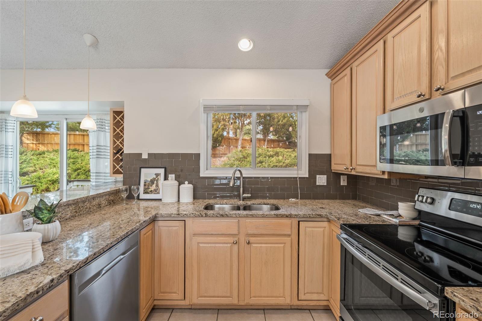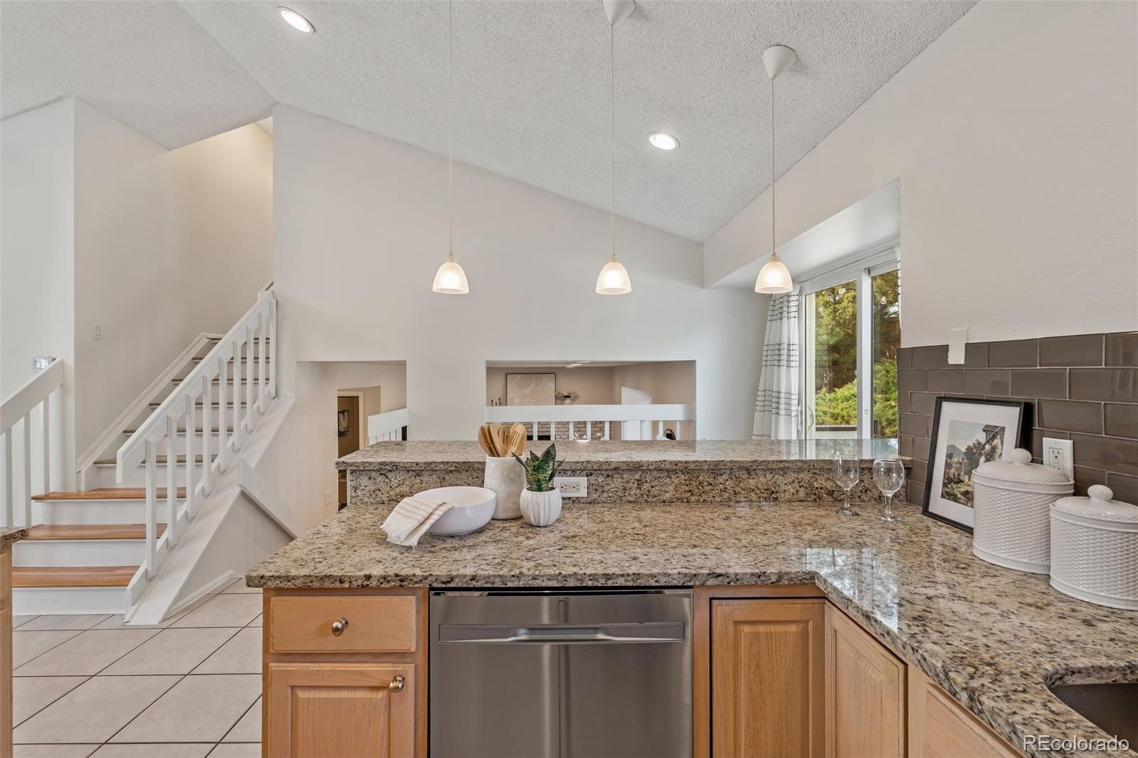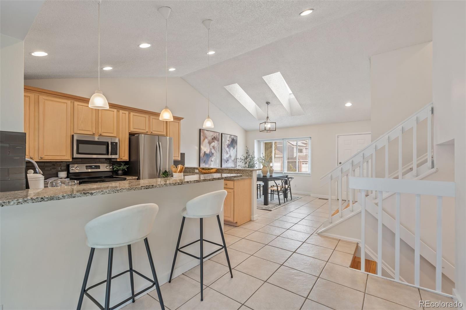 Tucked into a quiet cul-de-sac within a cul-de-sac, this beautifully maintained Westminster home offers the perfect balance of natural light, comfortable living spaces, and a backyard designed for enjoying Colorado’s outdoor lifestyle. Step inside to soaring ceilings and skylights that fill the home with natural light throughout the day. The open layout connects the dining area, kitchen, and living spaces in a bright, inviting way. The kitchen sits at the heart of the home, featuring granite countertops, stainless steel appliances, abundant cabinetry, and bar seating that makes entertaining easy and everyday living effortless. Downstairs, the cozy living room centers around a beautiful white brick wood-burning fireplace, creating the perfect space for movie nights and relaxing Colorado evenings. Upstairs, the vaulted primary bedroom offers an impressive sense of space and natural light, providing a peaceful retreat at the end of the day. Step outside to one of the home’s most special features: a large elevated deck overlooking a spacious tiered backyard surrounded by mature trees and landscaping. With built-in seating and string lights overhead, the space is perfect for summer dinners, morning coffee, and evenings under the Colorado sky. The basement offers incredible flexibility, currently used as a home gym with potential for additional living space, a future bedroom, and bathroom with existing rough-ins. Residents enjoy walkable access to trails, the community pool, a neighborhood fishing pond, grocery stores, Starbucks, The Brunch House, and local favorite G’s Tacos. Just minutes away, Standley Lake Regional Park offers paddleboarding, kayaking, scenic trails, and beautiful sunsets. With easy access to both Denver and Boulder and a welcoming neighborhood known for friendly neighbors and gatherings, this home offers the ideal blend of comfort, lifestyle, and location.