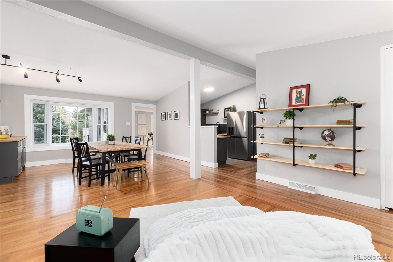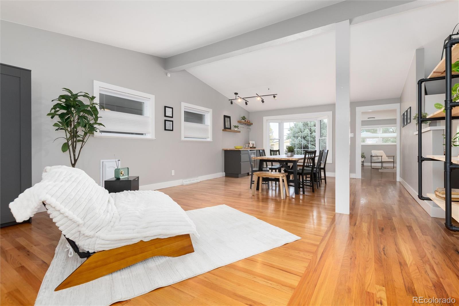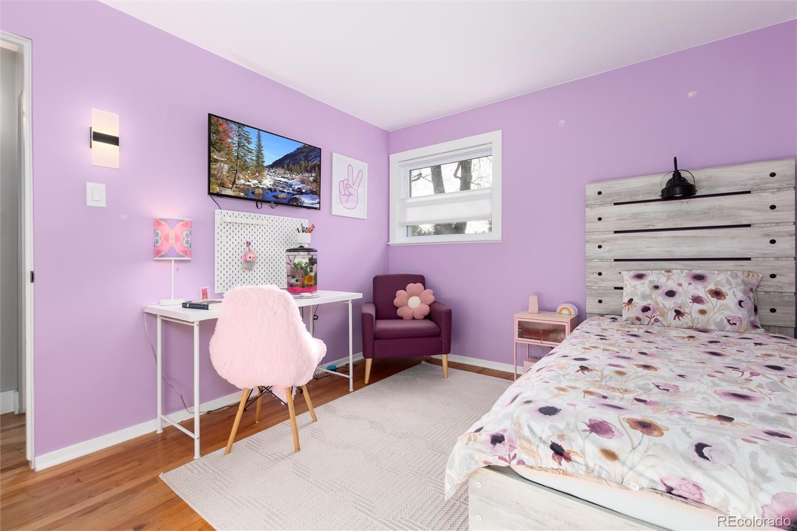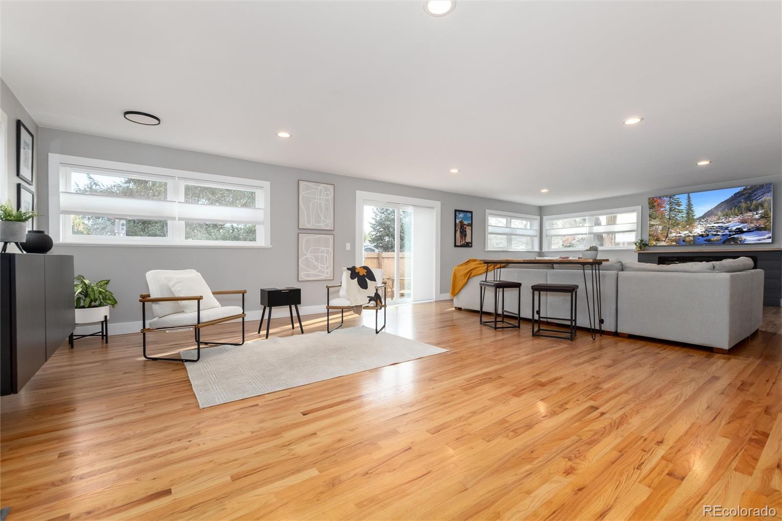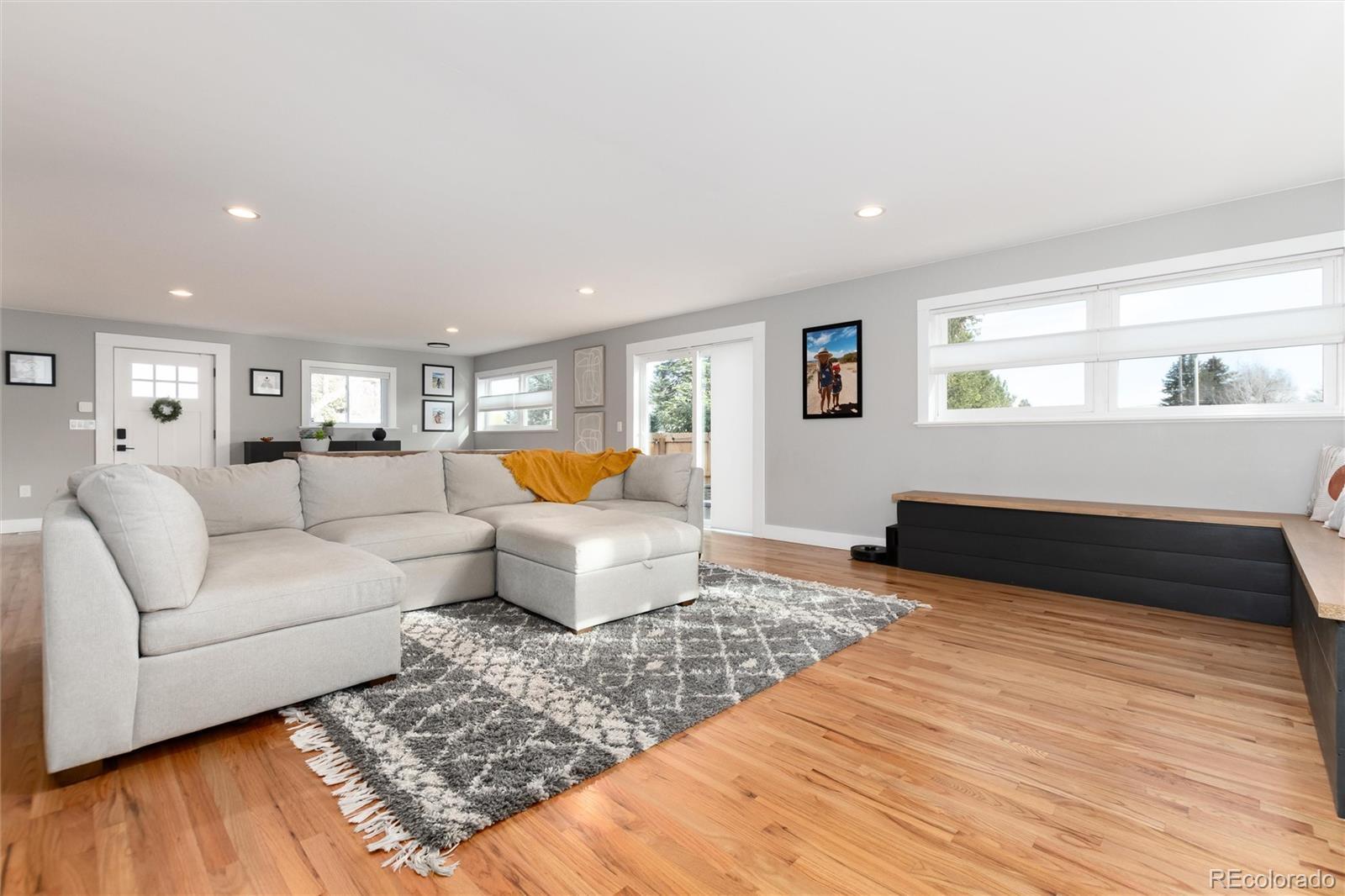 Welcome to this beautifully maintained home in highly desirable Columbine Hills. Perfectly positioned on a spacious corner lot, mature trees & established landscaping create a private, welcoming setting with classic curb appeal. Step inside to a light-filled great room featuring gleaming hardwood floors & abundant windows that flood the space with natural light. A cozy fireplace anchors the great room, while sliding doors lead seamlessly to the deck and fenced yard—ideal for indoor-outdoor living. The kitchen provides generous cabinet storage, ample counter space, and all appliances included, making move-in easy. A charming dining room with bay window creates the perfect setting for holidays & dinner parties, a convenient beverage station enhances everyday living & entertaining. An additional sitting/living area offers flexibility for relaxing, hosting guests, or creating a cozy reading retreat. Hardwood floors extend throughout the main level, where you’ll find 3 comfortable bedrooms & a beautifully remodeled full bath. The finished basement expands the home’s versatility with a spacious rec room featuring a wet bar, a 4th bedroom, an additional ¾ bath, laundry area, bonus flex spaces & exceptional storage. Outdoor living shines with an expansive deck—perfect for summer barbecues, outdoor dining, or enjoying peaceful Colorado evenings beneath mature trees. Car enthusiasts and hobbyists will appreciate the rare combination of a large 4-car garage with EV charger complete with built-in cabinets & abundant workspace. Outdoor lovers will appreciate being just minutes from Chatfield State Park, offering boating, paddle boarding, fishing, camping, & miles of scenic trails. Columbine Sports Park, neighborhood parks, shopping, & dining are also nearby—providing the perfect balance of recreation and everyday convenience. Don’t miss your opportunity to own this spacious, & ideally located Columbine Hills home.