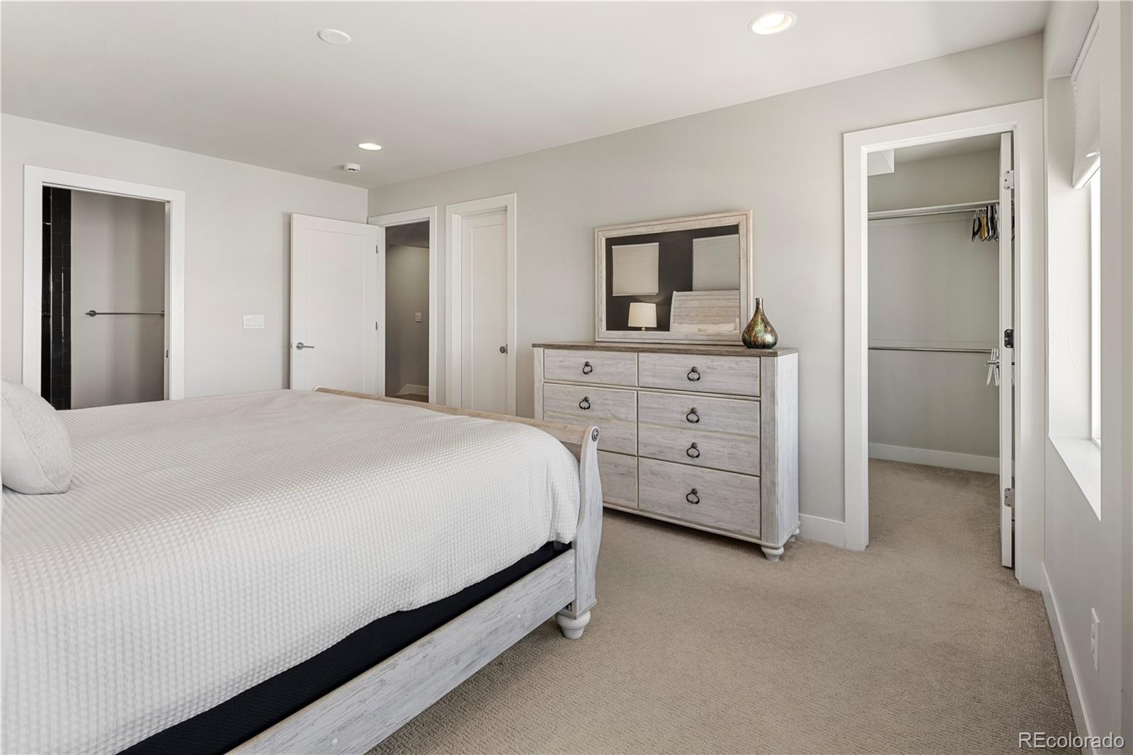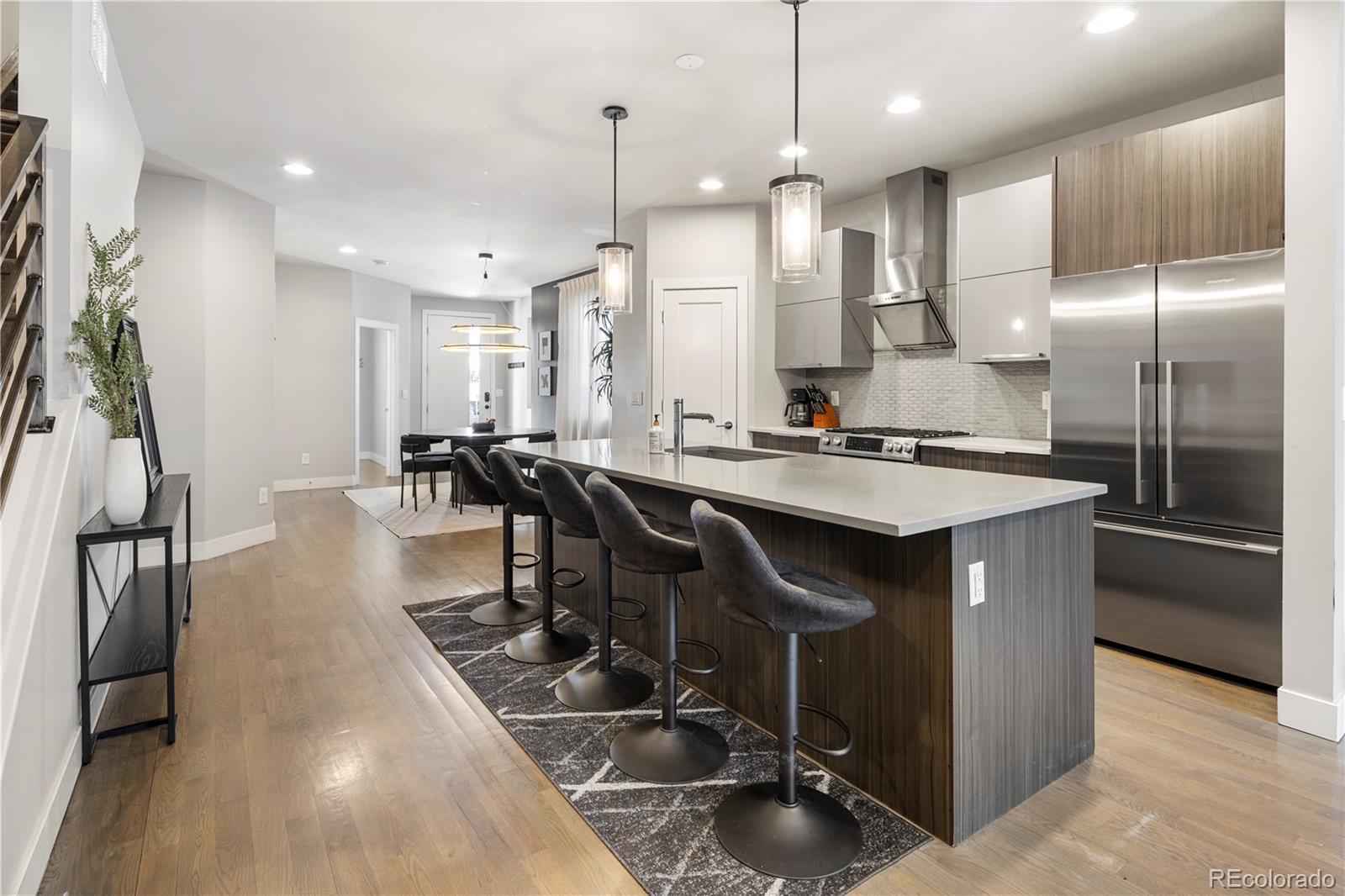 Come see this Custom Contemporary home located in the hot Sloan’s Lake-West Colfax neighborhood! Showcasing 5 bedrooms, 3.5 bathrooms and 2725 sq ft of living space with an inviting open floor plan and 2 rooftop decks for impeccable views. The kitchen features quartz countertops, large island, modern glass tile backsplash, soft-close cabinets, hardwood drawers, and all high-end stainless-steel appliances. Modern finishes can be found throughout the home with custom drywall texture, highlighted by 9ft ceilings and gray solid oak hardwood floors on main level, plus a bright living room with oversized 5ft decorative fireplace. The large master suite features walk in closet, en-suite bathroom with large double vanity and amazing views of downtown. With 4 additional bedrooms, a third floor living space with wet bar and mini fridge, two decks with views to the west and downtown skyline/stadium views to the East, this is the perfect home for entertaining. In addition, the location makes it ideal for walking to Broncos games, appreciating all that Sloan’s Lake has to offer and enjoying the many amenities found at the St. Anthony redevelopment. Other features include oversized detached 2 car garage, 2 A/C units for split level comfort, new professional landscaping in front yard with sprinkler system, smart thermostat, and 1 gig hardwire fiber internet. Don’t miss this opportunity for an amazing home in a great location close to Nightlife, Public Transportation, Broncos Stadium, Coors Field, Downtown Denver, Highlands, Sloans Lake, Edgewater, easy mountain/ski access and a whole host of other activities.