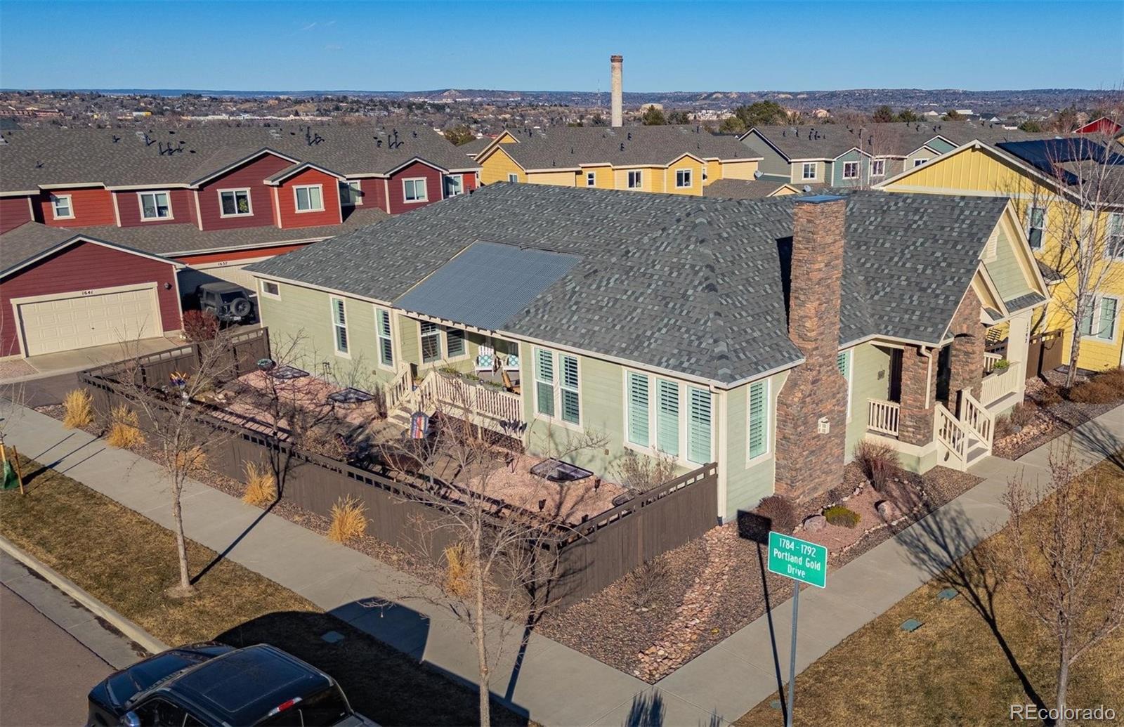 *** Welcome to this spacious ranch-style home on a desirable corner lot, complete with a covered front porch overlooking a large green space in the sought-after Gold Hill Mesa neighborhood. Perfectly positioned near Old Colorado City, Garden of the Gods, Manitou Springs, and the Colorado Springs west side, this location blends city convenience with mountain charm. From the covered inset side deck, enjoy stunning Pikes Peak views. Quick access to quaint downtown shops, event centers, and military installations creates a connected lifestyle. Outdoor enthusiasts will love being minutes from world-class hiking and biking trails, with one of the city’s largest dog parks within walking distance. Low-cost HOA fees include landscaping, giving you more time to enjoy community events or simply relax. *** Peace of mind comes with a brand-new CAT4 roof and freshly painted exterior in October 2025! *** Inside, an open-concept floor plan features a living room flowing into the dining area and chef’s kitchen. The kitchen offers espresso 42” cabinets with crown molding, granite slab counters and backsplash, a generous island, and ample storage. Hardwood floors and plantation shutters add timeless style. *** With 4 bedrooms and 3 bathrooms, the primary suite is a retreat with two walk-in closets and a spa-like five-piece en-suite, including double vanity, soaking tub, shower, and private toilet. The main level also includes a dedicated office with closet, a guest bedroom, and a Jack & Jill bathroom. *** The finished basement is designed for entertaining, with a family room, built-in speakers, and bar area. Two oversized bedrooms and another full bathroom provide extra space. Additional highlights: central A/C, extended 2-car garage, covered deck with Pikes Peak views (perfect for New Year’s fireworks), landscaped yard with water feature, single-owner history with no pets, and air ducts recently cleaned and sealed. Exterior stone accents add charm. Don’t miss this rare opportunity!