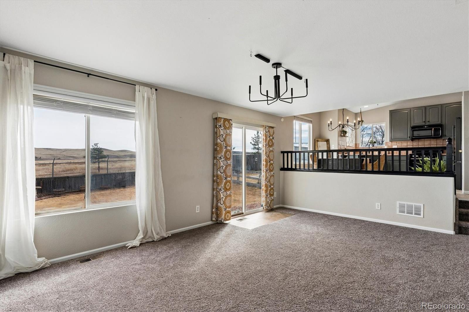 Welcome to this Roxborough gem backing to open space!!! Where privacy, views, and Colorado living come together beautifully! With brand new carpet and stylish new light fixtures, this 4 bedroom, 3 bathroom home is move-in ready and designed for comfortable everyday living. The popular floor plan offers three bedrooms upstairs, including a spacious primary suite, creating a functional and desirable layout with a walk in closet and a private bathroom. The main level features a welcoming front living room filled with natural light and sunset views, a bright and airy kitchen with ample cabinet and counter space, and a large family room perfect for gatherings. Whether you're hosting friends or enjoying a quiet night in, this layout provides the flexibility and flow today's buyers are looking for. The finished basement adds exceptional bonus space with a versatile flex area that could easily serve as a fourth bedroom, home office, gym, or media room. Built-in speakers make it ideal for a movie theater setup, and the electric fireplace adds warmth and ambiance. There is also generous storage, including a convenient crawl space to keep seasonal items neatly tucked away. Enjoy peace of mind with a newer roof and newer water heater. The attached two-car garage offers additional storage and everyday convenience. Step outside to your backyard oasis and enjoy summer BBQs while backing to open space, where you can often spot local wildlife and soak in Colorado’s natural beauty. The setting offers a rare sense of tranquility while still being close to everything. Located near parks, playgrounds, schools, and restaurants, and just minutes from outdoor adventures at Waterton Canyon, Chatfield State Park, and Roxborough State Park, this home truly offers the best of both convenience and nature. Come be part of Roxborough—one of Colorado’s hidden treasures—and experience a lifestyle that blends community, comfort, and the great outdoors!! Priced to sell!