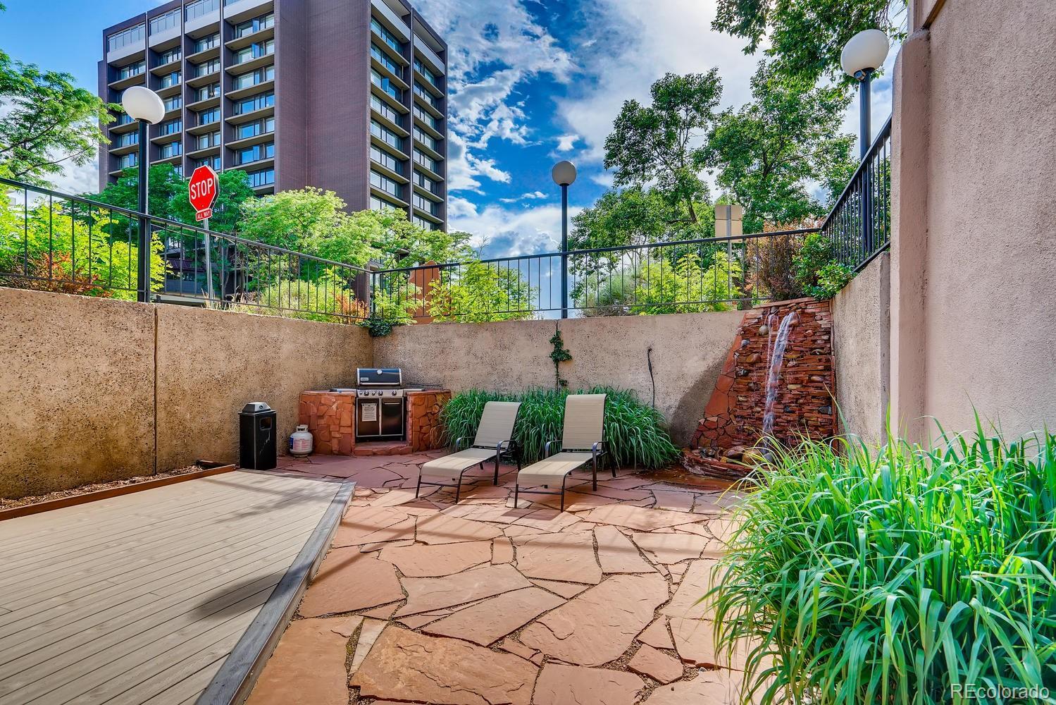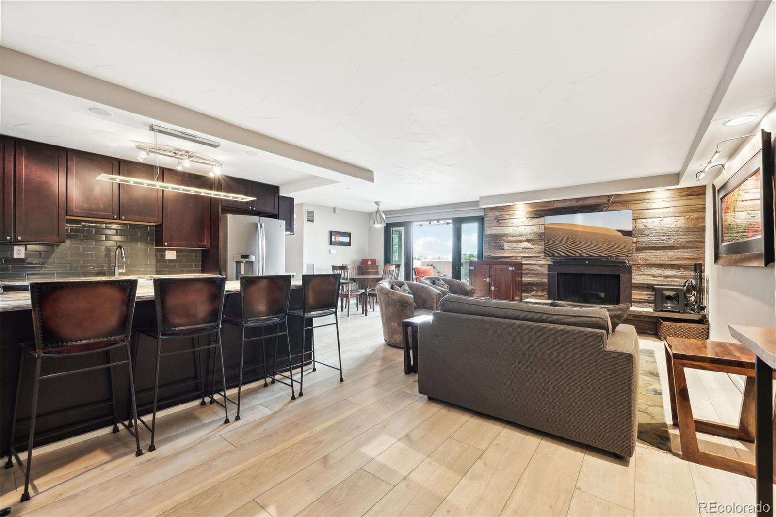 Beautiful west-facing updated condo in the heart of Cherry Creek! Fresh paint (light grey) in foyer, living room, kitchen, master bathroom, and second bathroom. This thoughtfully redesigned home (architectural & permitted) offers an open layout with ample space and massive kitchen with tons of storage throughout. New luxury plank floors are perfect to hold up to guests, kids, and pets, and are very easy to clean. With a wood-burning fireplace and dual-access large balcony with mountain views, enjoy the fresh Colorado air all year round! Very safe and quiet! Other highlights include deeded parking, extra off-street parking, custom barn door for added privacy, new double hung triple-pane windows, recessed lighting throughout, high-end trowel texture, updated electrical, new plumbing with shut-off valves, stainless appliances, double oven, farm sink, soft-close cabinets, and beautiful Brazilian stone countertops. Building amenities include a fitness center with Peloton, indoor pool, hot tub, club room, back patio with grill, locker rooms, and storage. Walking distance to the Cherry Creek Trail, mall, coffee shops, bars, and restaurants.