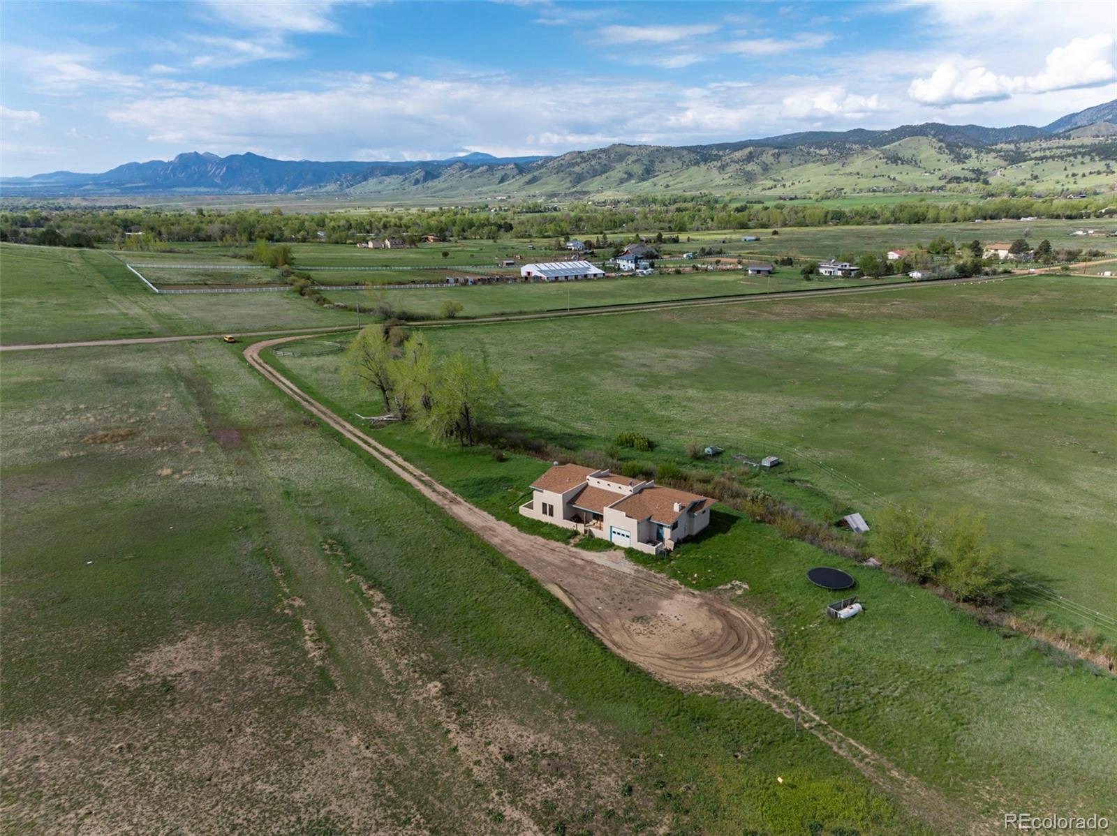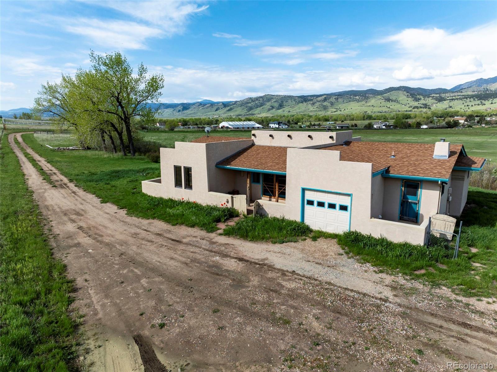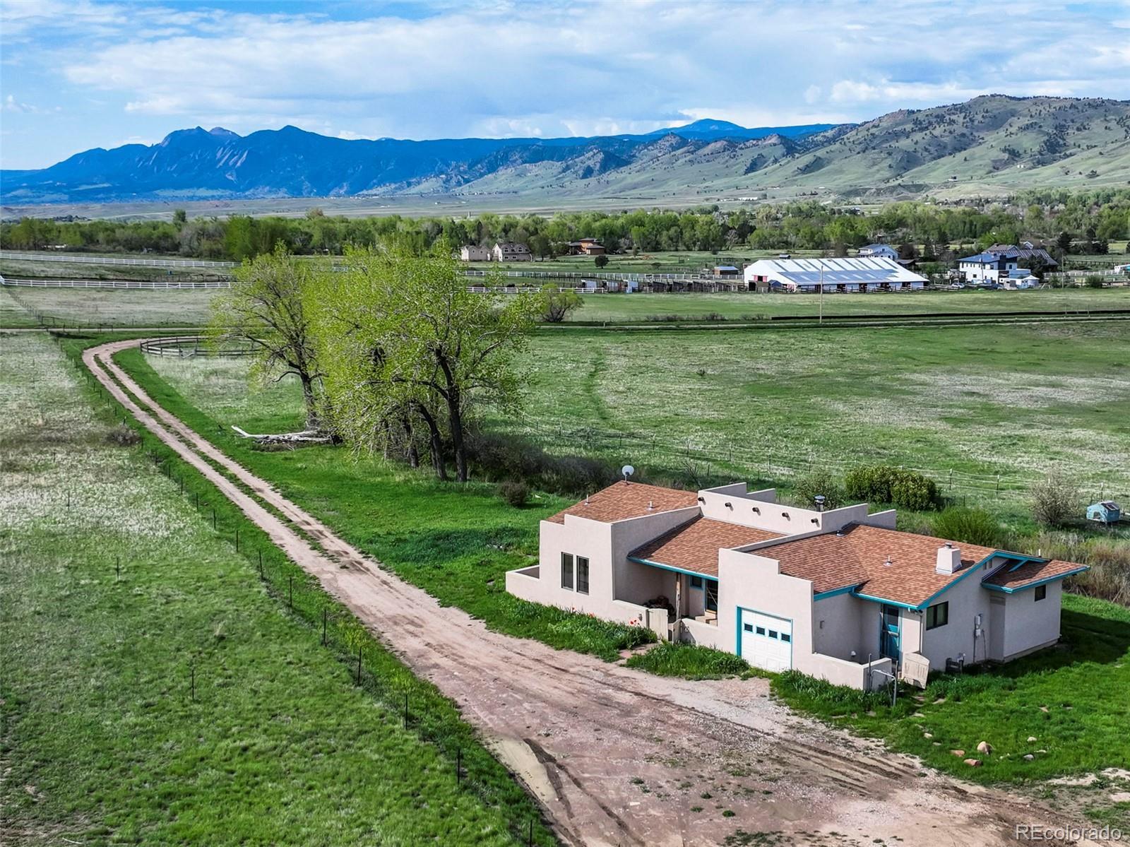 39 peaceful acres! Fabulous mountain views, and plenty of Colorado sunshine. Purchase price includes 20 shares of Lefthand Ditch Water. Small southwestern style home with multiple patios, and many windows to enjoy the views. District water to the house, and radiant floor heat inside of the home. The power lines to the house have been buried, so as not to impede the views. The house does need some work, and primary value is in the land. Home to be sold in "as is" condition. Exceptionally tranquil property!