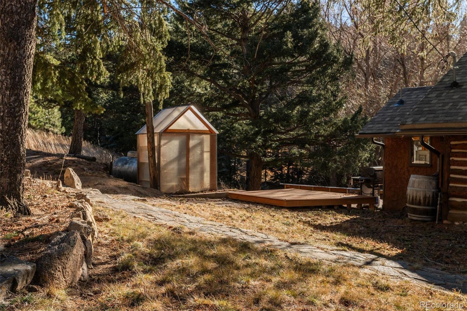 Welcome to the WHO’S Inn where history, heart, and mountain living come together. This Evergreen original has been standing strong since 1919. It has already weathered everything Colorado can throw at a house: blizzards, windstorms, sunshine, and a century of changing trends. Age isn’t a liability here; it’s a badge of honor. Time has tested this home, proven its grit, and quietly confirmed what newer homes are still hoping for: this one’s built to last. Originally constructed by Stanley Park’s namesake, Stanley M. Barrows, this rustic chalet was the very first home in the neighborhood, welcoming visitors who came up the mountain dreaming of land and a life in the pines. Today, it remains a rare chance to own a living piece of Evergreen history, thoughtfully preserved. The living room steals the show with a wall of windows perfectly framing snowcapped Mount Blue Sky. The view is so good it feels staged, and a dramatic floor-to-ceiling stone fireplace built with rock harvested right from the property. The kitchen blends old-soul charm with everyday functionality and an early-1900s built-in breakfast bar that’s seen more morning coffee than you ever will. From here, head through the mudroom to the back deck, yard, greenhouse, and chicken coop because mountain life should come with fresh eggs. Open to the kitchen, the dining room features a Craftsman-style ceiling, stained-glass windows, and a corner wood-burning fireplace that practically demands slow dinners and long conversations. A new main level primary suite with a ¾ bath and mountain views you can enjoy without ever leaving bed is a nice upgrade. Upstairs, a charming bedroom suite (or private office) includes a window seat with postcard views, a full bath, and a secret storage space. The walk-out level offers flexibility with a family room, 2 bedrooms, 2 baths, a flex room, and laundry. With exterior access to the deck and backyard, this space works for multi-generational living, guests, or a roommate setup.