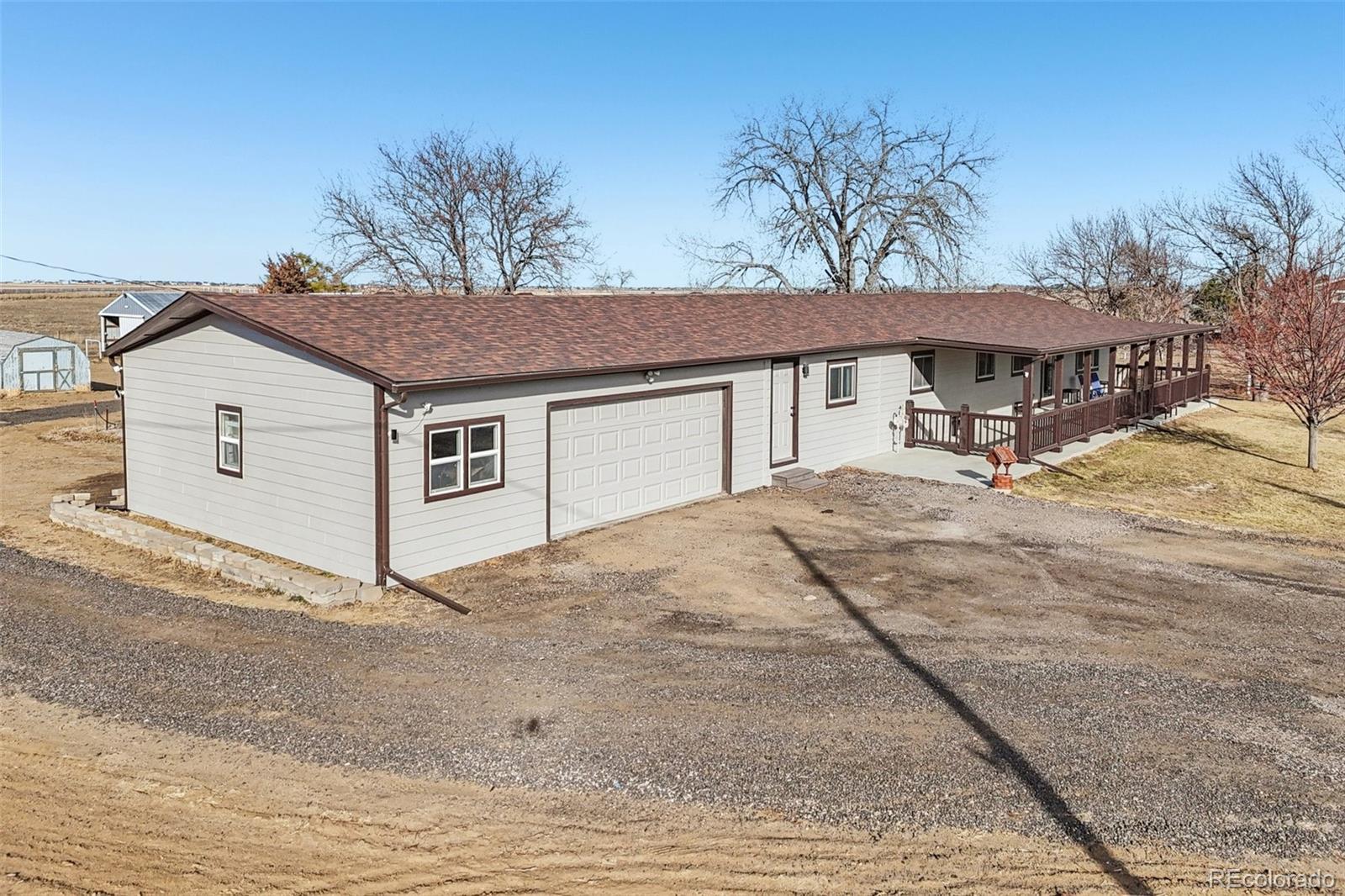 Welcome to a one-of-a-kind, fully reimagined 5-acre estate where modern luxury meets peaceful country living. Every inch of this remarkable home has been meticulously transformed with high-end finishes, thoughtful upgrades, and an attention to detail that sets it apart from anything else on the market. Step onto the expansive covered front porch—complete with composite decking—and instantly feel the serenity of your surroundings. Inside, the stunning open-concept living space showcases a brand-new designer kitchen featuring an oversized island, premium cabinetry, gas stove, two ovens, all-new appliances, and gorgeous flooring that flows seamlessly throughout the home. No corner was left untouched in this top-to-bottom remodel: new interior and exterior paint, new windows, new doors, new roof, new AC, new tankless water heater, new flooring, and beautifully updated bathrooms. This is truly turnkey living at its finest. With everything conveniently located on one level, comfort and ease define the heart of this home. The spacious primary suite offers a peaceful retreat with a luxurious ensuite bathroom and generous walk-in closet. Two additional bedrooms, a full bathroom, and a dedicated laundry room complete the main floor. Outside, the property is a dream for horse lovers and hobbyists alike. The well-equipped 5-acre horse setup includes a thoughtfully designed barn with electricity and water, fully fenced grounds, and a front and backyard sprinkler system. Bring all your vehicles and equipment—there’s room for everything with an oversized two-car garage, additional carport, covered RV/trailer parking, and covered utility parking. Enjoy the best of both worlds: quiet small-town living with an easy commute to the city. This property offers peace of mind for years to come. A rare blend of luxury, functionality, and wide-open space—this is more than a home; it’s a lifestyle. Welcome home.