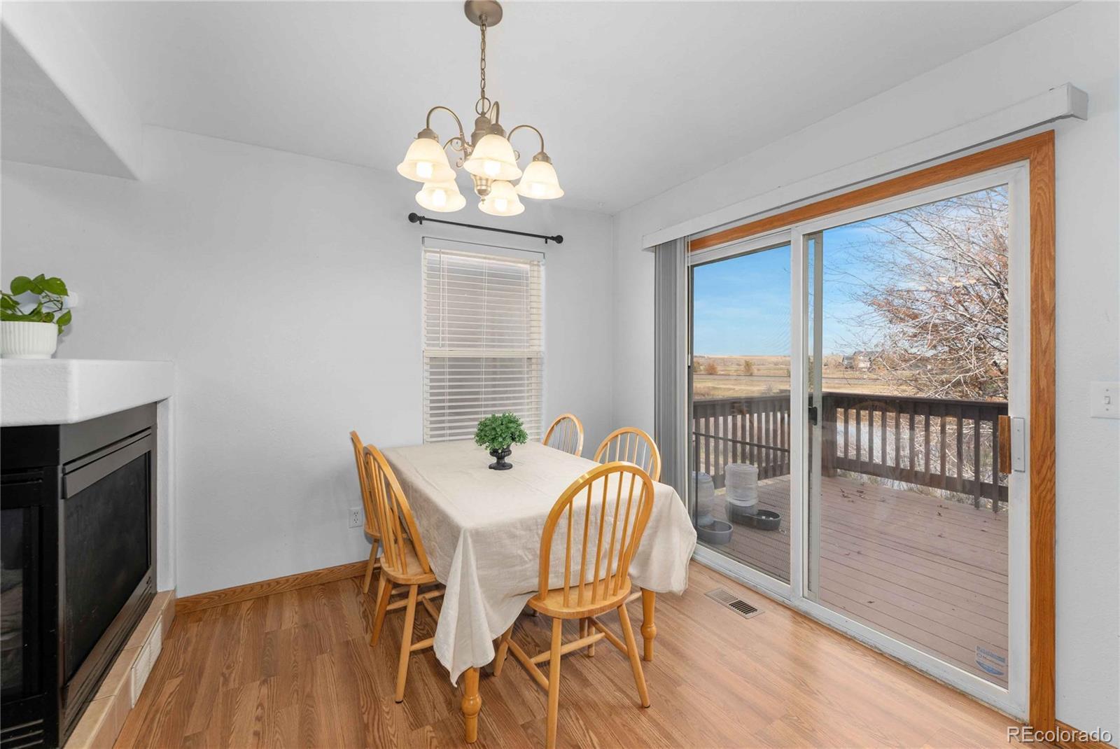 OPEN HOUSE SATURDAY 12/13 Beautiful home backing to a Lake! No Metro! No HOA Fee! Main Floor Primary Bedroom! Walkout Basement with full gym room (equipment included!) This beautifully maintained home has it all! The main floor features a spacious primary suite, an open-concept kitchen and dining area, and a cozy dual-sided gas fireplace that warms both the living and dining spaces. Enjoy hardwood floors, abundant natural light, and access to a large walk out deck, perfect for entertaining or relaxing while taking in the tranquil backyard setting. The finished, walk-out basement offers versatile space for a rec room, home office, or gym, or bedroom! Even create a mother-in-law suite or ADU downstairs! Upstairs features two additional bedrooms, a large loft for a playroom or office and a full bath. Step outside to a fully fenced yard with mature trees, beautifully maintained landscaping, and direct access to the fishing lake and trail. No rear neighbors means peaceful mornings and quiet evenings. Don't miss this rare opportunity to own a move-in-ready home in a desirable neighborhood, with unbeatable outdoor access, without the Metro Taxes! Window in kitchen and primary will be new replaced.