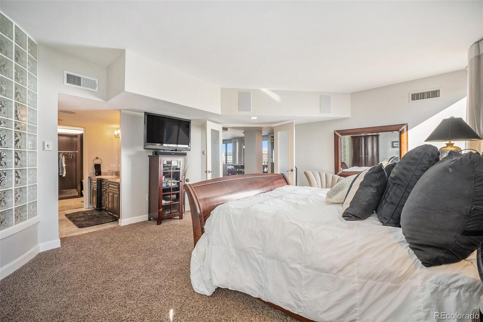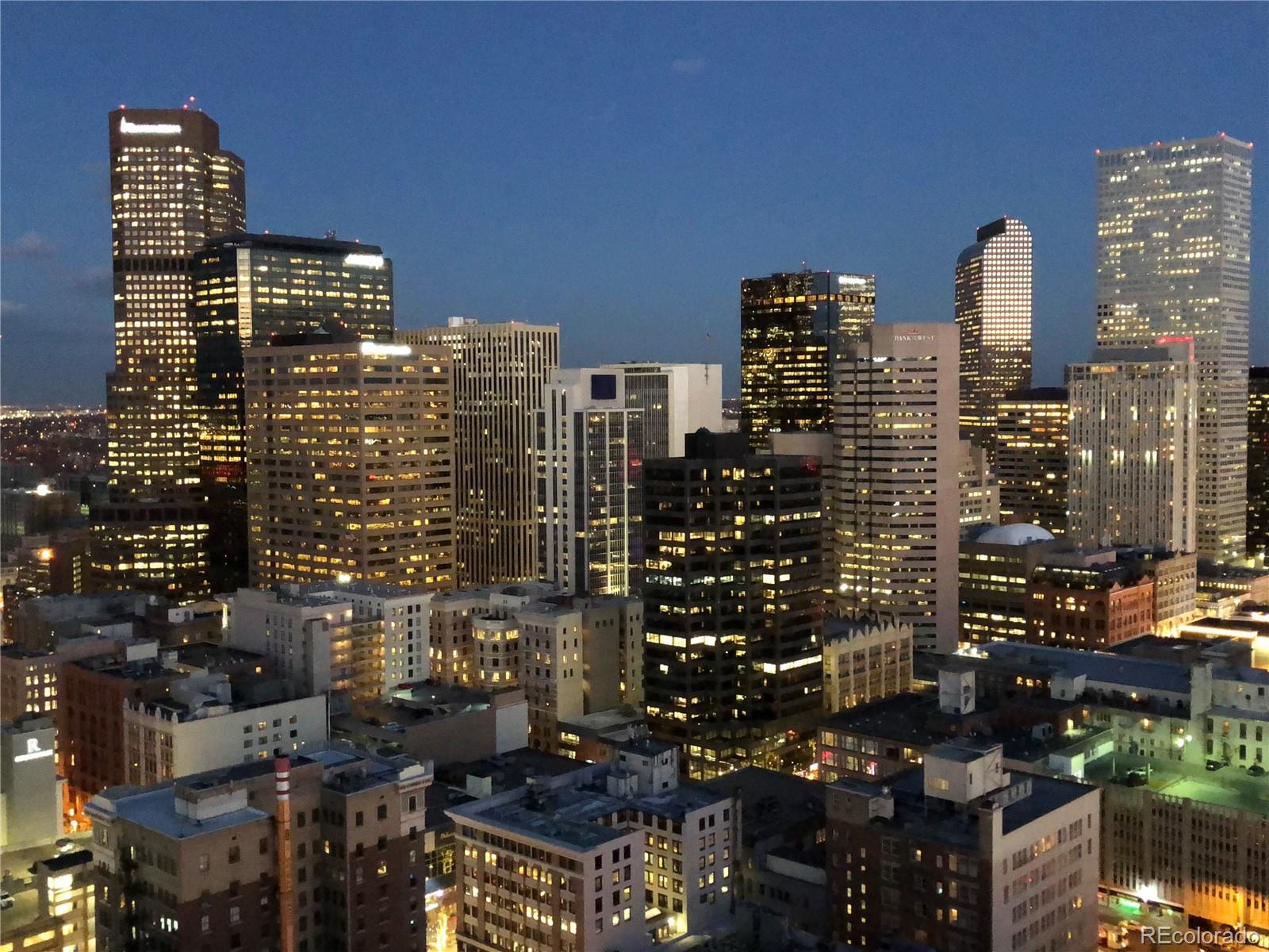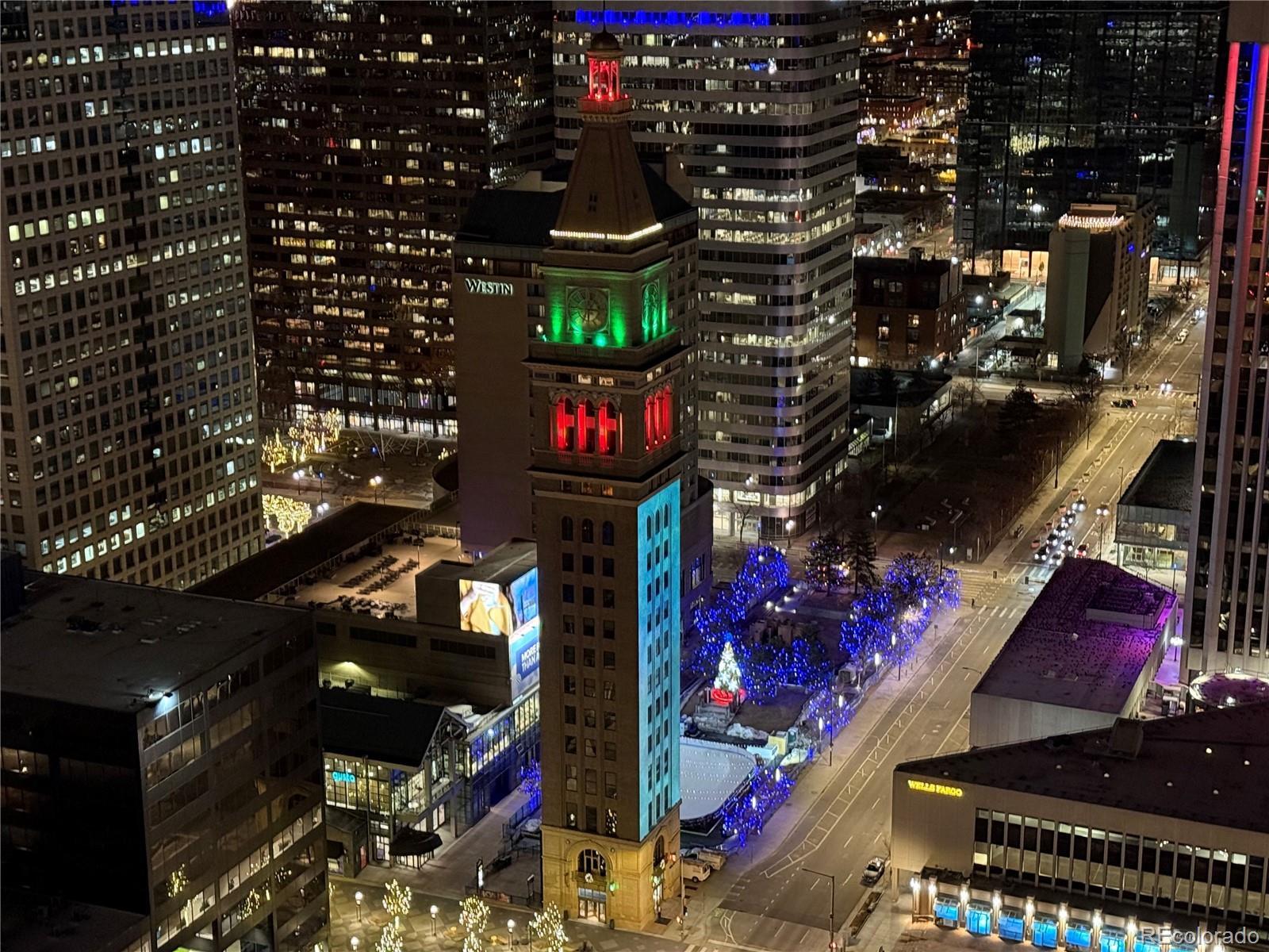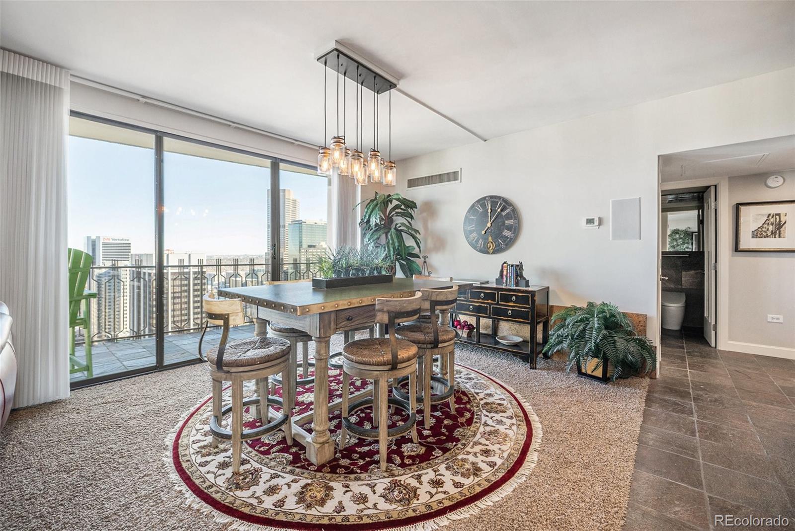 Experience the pinnacle of urban luxury in Penthouse 42C at 1020 15th Street, a contemporary, remodeled residence in the iconic Brooks Tower. Located in the heart of Denver's Theater District, this exclusive 42nd-floor retreat offers stunning views of the Downtown Denver skyline from three private balcony and terrace spaces. Step into the expansive entry foyer, which opens to a light-filled living space with spectacular panoramic views. The modern open-concept living room, kitchen, and dining area is a masterpiece of design, featuring a built-in sound system with ambient controls for the ultimate atmosphere. The kitchen boasts walnut cabinets, stainless steel appliances, a wine cooler, granite countertops, a large island with bar seating, and pendant and recessed lighting. Dine in style with formal seating overlooking the Denver skyline, accented by elegant pendant lighting. Enjoy the convenience of electric blinds that adjust from sheer for natural light to full coverage for privacy. The luxurious primary suite is a private sanctuary, featuring a sunrise-facing balcony, a massive walk-in closet with in-unit laundry, and a spa-inspired 5-piece bath. The en-suite bath includes a large glass-brick shower that floods the space with natural light. The second bedroom is equally well-appointed, offering a private bath with a remodeled shower, white tile with accent details, and polished nickel fixtures. A versatile bonus flex room—spanning over 350 square feet—opens to an expansive terrace, currently serving as a guest bedroom with a queen-size Murphy bed. This space provides endless possibilities for entertaining or relaxing. Situated in the heart of Denver, Brooks Tower offers unparalleled amenities, including a fitness center, outdoor pool, and 24-hour concierge service. Enjoy unmatched access to the city's cultural attractions, fine dining, and vibrant nightlife. Don’t miss this rare opportunity to own a truly spectacular penthouse with exclusive 42nd-floor living.