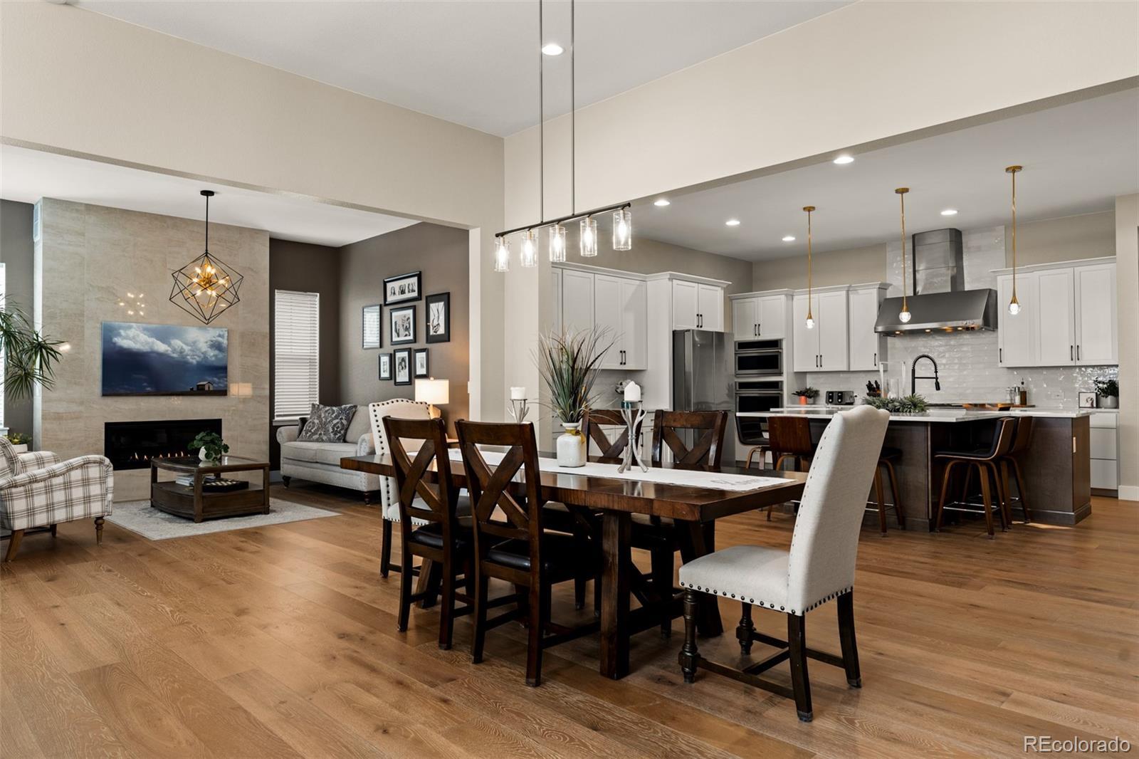 Bring the whole family to the best Shea Floor plan... Stunning and Comfortable, Flooded w/light and windows... Ultimate great room w/12' ceilings, huge chef's kitchen, luxury primary suite, the best parties are held here! Five bedrooms, 6 bathrooms, over 4,700 finished square feet. Large outdoor living area with covered patio, deck and grassy play area. And, you can take advantage of the potential apartment in basement - Multi-Generational or ADU (30 day min leases). The Canyons is the Premier New Community in North Castle Pines - easy access to I25. Beautiful amenities and neighborhood coffee house and fantastic restaurant & bar within walking distance. This home has large gourmet kitchen with 4 ovens, gas range, stainless steel hood, high performance stainless steel appliances, quartz countertops throughout, large kitchen island, hardwood floors, tile, and upgraded carpet and padding. The primary suite is complete w/soaking tub, separate oversized shower, double vanity areas, huge walk-in closet. The office has a barn door and plenty of room for your professional life. The Great Room is impressive and cozy at the same time including fireplace reading nook, large dining area and living room all within view of the gourmet kitchen. Then walk out to your covered patio and deck with water views and grassy area for games or pets! All bedrooms have beautiful ensuite bathrooms, large closets and ample room for guests or family. The basement apartment is finished with every detail for entertaining/kids or multi-generational living/ADU. Current owner earns over $2700 a month in income from the apartment in the basement. More storage then you will likely need so still room to add a media room or personal gym.