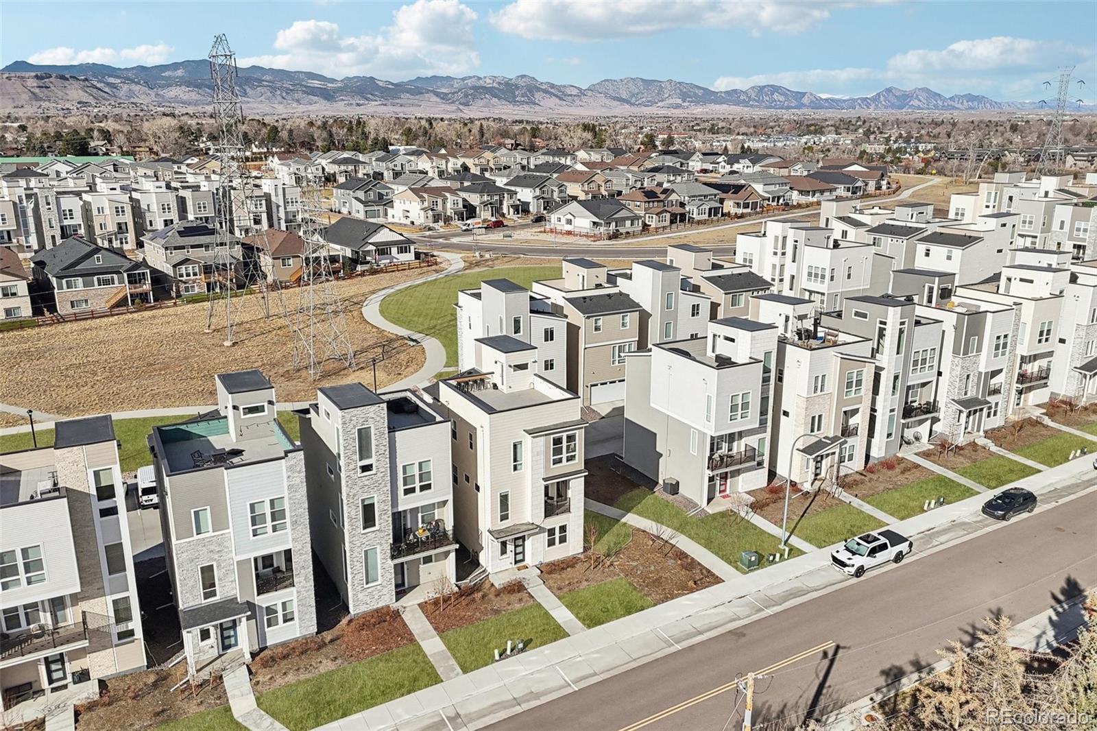 Welcome home to this stunning 2023-built, three-story residence featuring an enormous rooftop deck with sweeping mountain and city views. Designed for both style and function, this home offers 3 bedrooms, 2.5 baths, plus a first-floor den—ideal for a home office or flex space. Inside, enjoy 9’ ceilings, 8’ doors, abundant natural light, and a thoughtfully curated mix of engineered hardwood floors and plush carpet. The open-concept main level is perfect for entertaining, anchored by a gourmet kitchen with a massive quartz island, high-end modern appliances, soft-close cabinetry, and a built-in wine/beer cooler. Additional highlights include a private second-floor balcony with extra storage, crawl space storage, convenient third-floor laundry, and a 2-car oversized garage with 8’ windowed doors. The home is loaded with upgrades, including an electric fireplace, rooftop bartop, ADT security system, and in-ceiling speakers throughout, with whole-home audio control. Located in a prime spot just steps from Van Bibber Open Space, Skyline Park, and the Ward Station light rail, with easy access to Denver, the mountains, and I-70, this home perfectly blends modern luxury with unbeatable convenience.