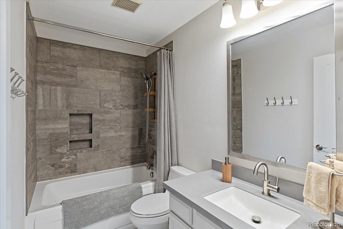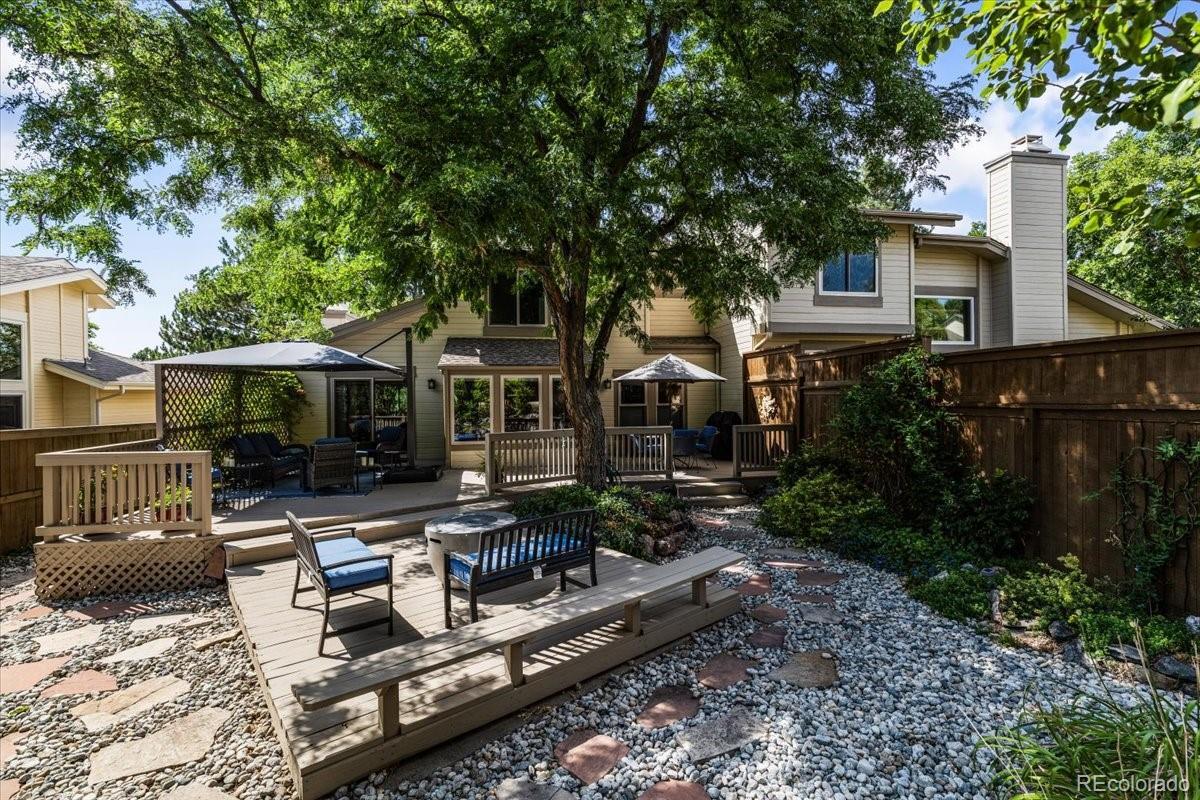 Sellers are adding VALUE with a new washer/dryer, home warranty and 6 months of HOA dues for the lucky buyer! Light, bright and move-in ready, turn-key. Welcome to your Zen era as you enter this tastefully updated sanctuary. Remodeled for aesthetic appeal and function. From major systems to the smallest of design details, this 4 bedroom townhome leaves nothing for you to do but move in. New kitchen counters and backsplash 2025, new HVAC 2022, Class 4 hail resistant 40 year roof & new exterior paint 2021. Carpet has been cleaned and sewer line scoped and cleaned. Other updates include popcorn ceiling removal, interior paint, light fixtures, new doors throughout, gorgeous hardwood floors, modern fireplace insert, replaced deck, high-end wool carpet, insulated garage door, the list goes on! Main level features living, dining & family rooms, bedroom that's perfect for an office, plus breakfast nook looking out to a lush, private backyard. Upstairs you will find the primary bed/bathroom plus a roomy bedroom with remodeled full bath with jetted tub. Make your way to the professionally finished basement for movie or game night. Bedroom and bathroom allow for privacy for your guests. Tired of mowing? No worries, the HOA maintains the front yard. This peaceful, tree-lined community is close to everything you need. The 5-mile Dad Clark Hiking Trail is a couple blocks away. Visit four Highlands Ranch Recreation Centers for year-round activities. Shopping and restaurants nearby, easy access to C470. If you are tired of cookie-cutter homes and outdated finishes, this home is sure to be a refreshing discovery. No detail overlooked and so tastefully updated. HOA dues include four outstanding rec centers! Floor plans at end of photos. Come take a look and get ready to fall in love!
