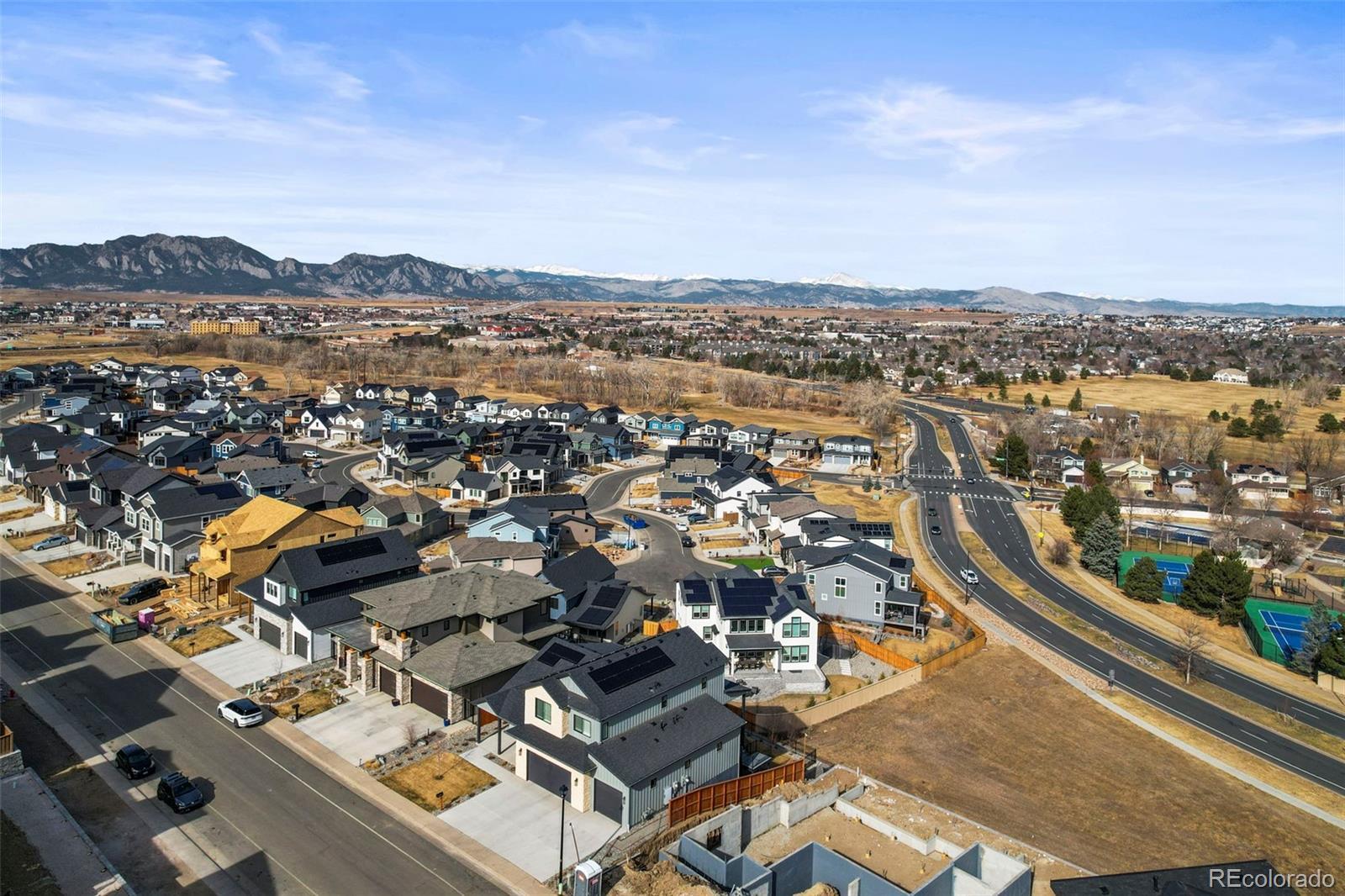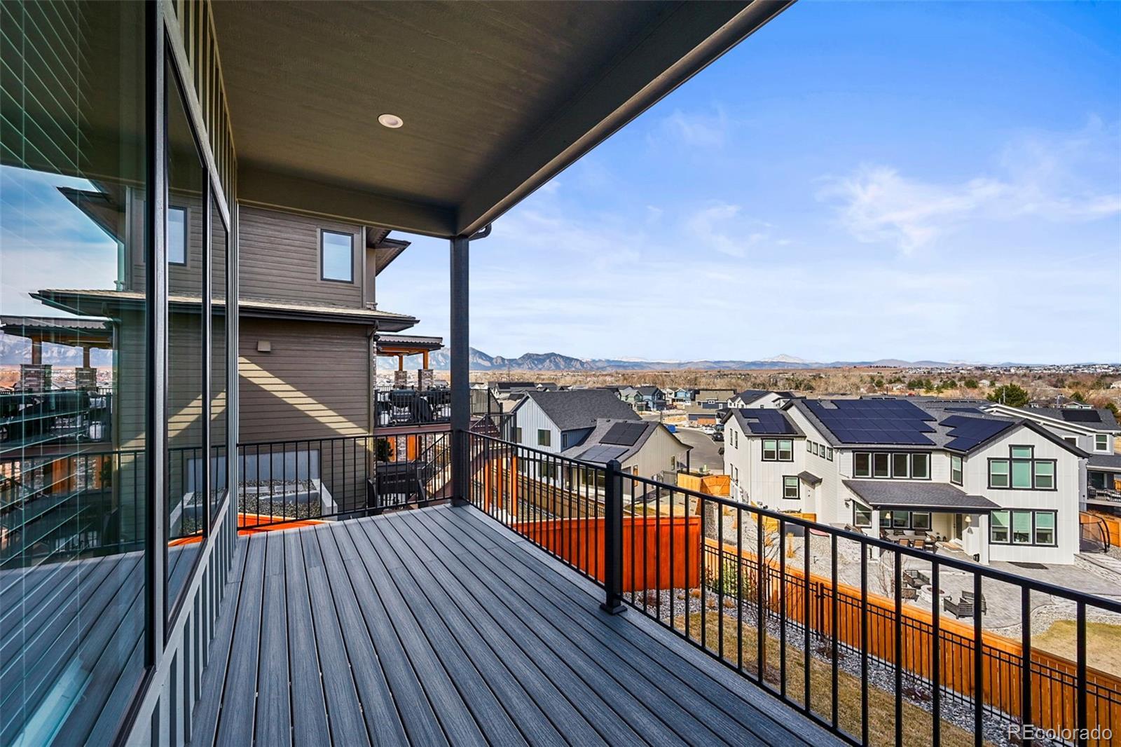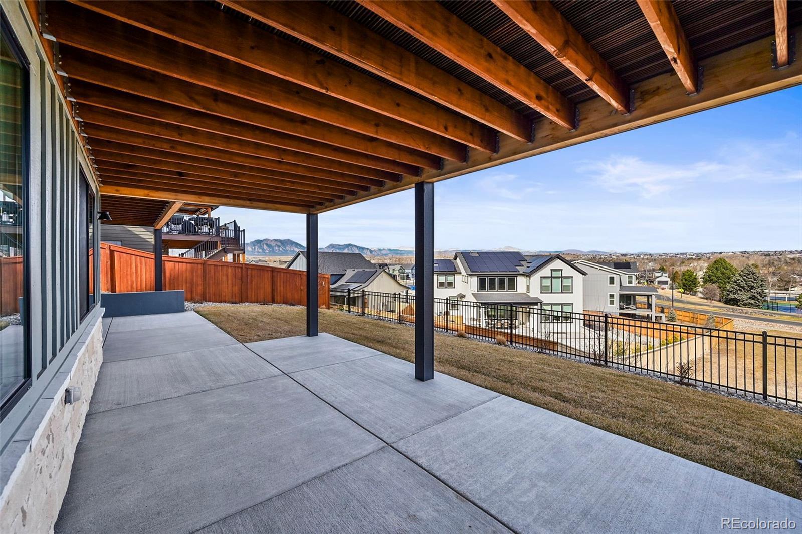 Located in the highly desirable Coal Creek neighborhood, wake up to Foothills and Flatirons views from all three levels in this exceptional luxury home where thoughtful design, sustainability, and the Colorado lifestyle come together. The main level welcomes you with a bright living room, where expansive windows flood the space with natural light and frame sweeping mountain vistas. White oak flooring spans the level, complemented by designer lighting, custom blinds, and a striking gas fireplace. Eco-conscious features include owned solar panels with a microgrid system for backup power, high-efficiency HVAC, R23 insulation, an instant hot water heater, and a fresh-air HRV system. At the heart of the home is the gourmet kitchen with high-end appliances including a built-in Sub-Zero refrigerator, 42-inch custom cabinetry, a walk-in pantry, and a spacious center island. Entertaining flows seamlessly onto the oversized deck with breathtaking views. Just off the main living space is a private office with french doors, a half bath, and a mudroom connecting to the oversized 4-car garage. The upper level features a stunning primary suite with incredible views, dual closets, and a luxurious five-piece bath with heated floors, plus direct access to the laundry room. Two additional bedrooms and a full hall bath complete this level. The walk-out basement is filled with natural light and features a spacious family room perfect for movie nights, game days, or multi-generational living. This level also includes two additional bedrooms, a full bath, and extra laundry hookups, offering flexible living options. Outside, enjoy a landscaped and fenced backyard with grassy areas, a large deck, and a patio perfect for outdoor living. Residents also enjoy access to community amenities including an outdoor pool, clubhouse, tennis courts, and scenic community trails. Close proximity to highway 36 with easy access to Boulder, Denver and DIA