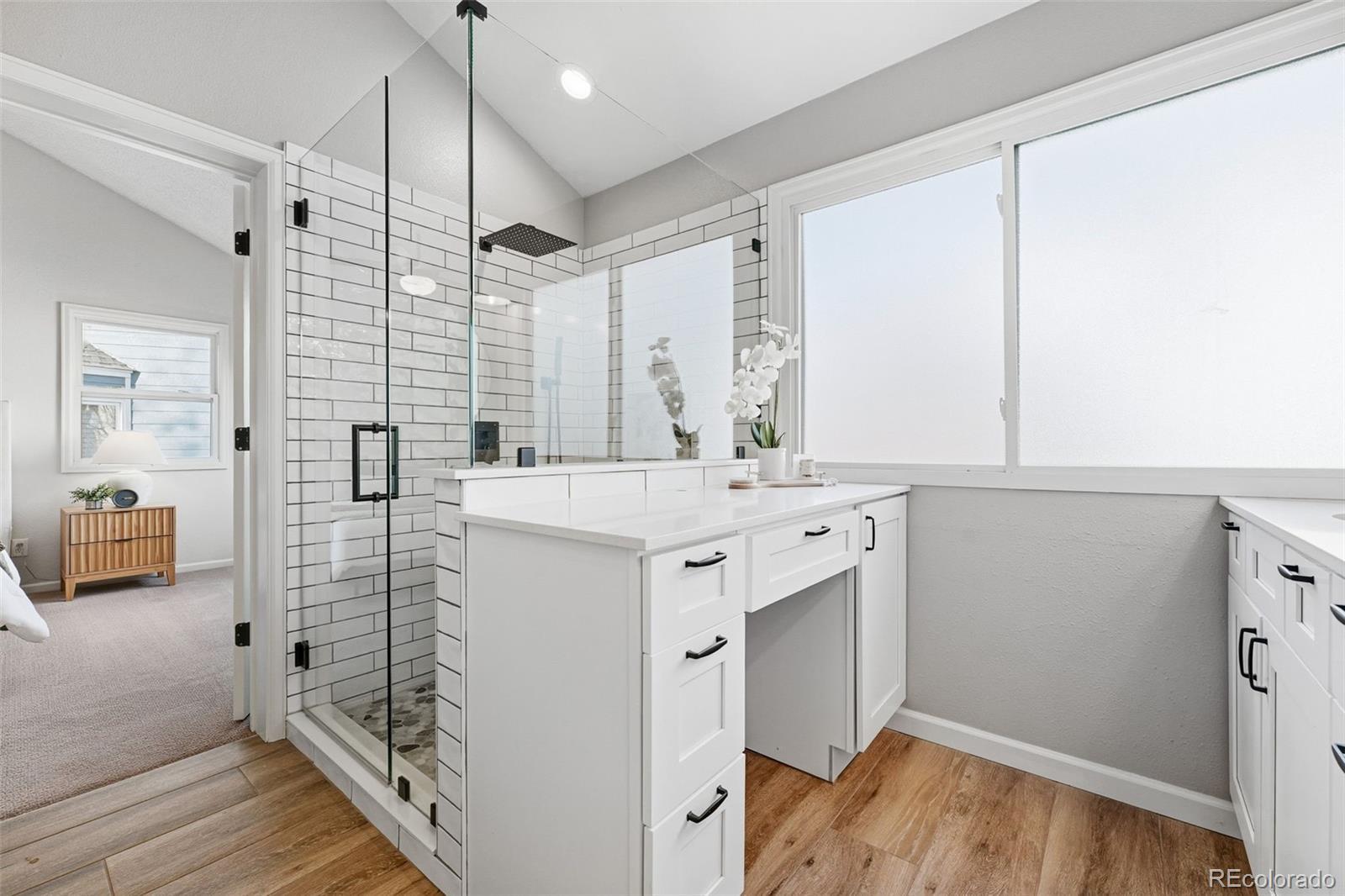 Stunning Remodeled Home – Thoughtful Design and Modern Comfort This beautifully updated 4-bedroom, 4-bath residence with over 2,770 finished square feet in the highly desirable Eastridge area of Highlands Ranch offers exceptional quality and attention to detail. Every bathroom has been fully remodeled with contemporary finishes, and the home features refinished hardwood floors, new tile, freshly painted walls and trim, and abundant natural light throughout. The kitchen is a true centerpiece, showcasing a shiplap-lined island, quartz countertops and backsplash, and stainless steel appliances, blending style and functionality. The two-story family room impresses with a striking floor-to-ceiling brick gas fireplace, while the vaulted living room enhances the sense of openness and flow. Upstairs, generously sized bedrooms provide comfort and privacy, including a serene primary suite with a spa-inspired bath. The sellers have also enclosed the office with custom built-ins, creating a versatile space that could easily be converted into a fifth bedroom. The finished basement adds flexibility with a spacious recreation room, large bedroom, and a beautifully updated ¾ bath—ideal for guests or a private retreat. Outdoors, enjoy a flat backyard with an extended patio and storage shed, perfect for entertaining or relaxing. Recent upgrades include a new roof (2023), new A/C (2023), and a Beehive Smart Irrigation System for effortless maintenance. Additional details such as updated lighting, modern hardware, and crisp trim work elevate the home’s design. Conveniently located near scenic trails and Cheese Ranch Park, and just minutes from Park Meadows Mall, the Denver Tech Center, top-rated schools, dining, and shopping, this home combines modern elegance with an unbeatable location.