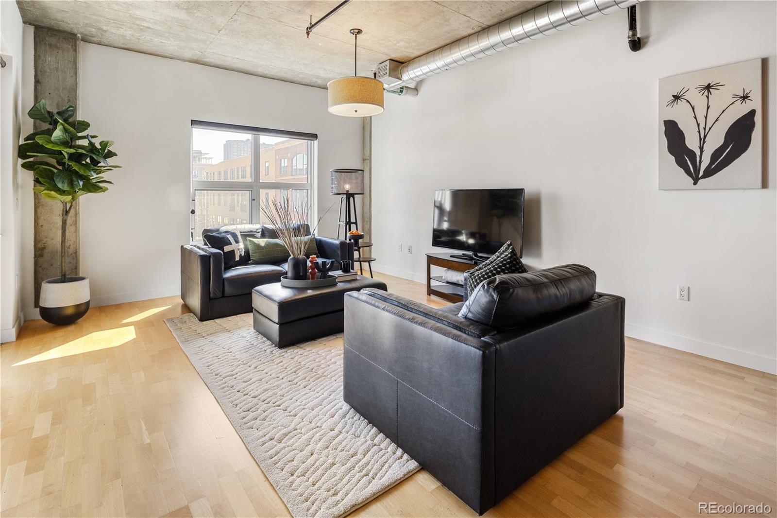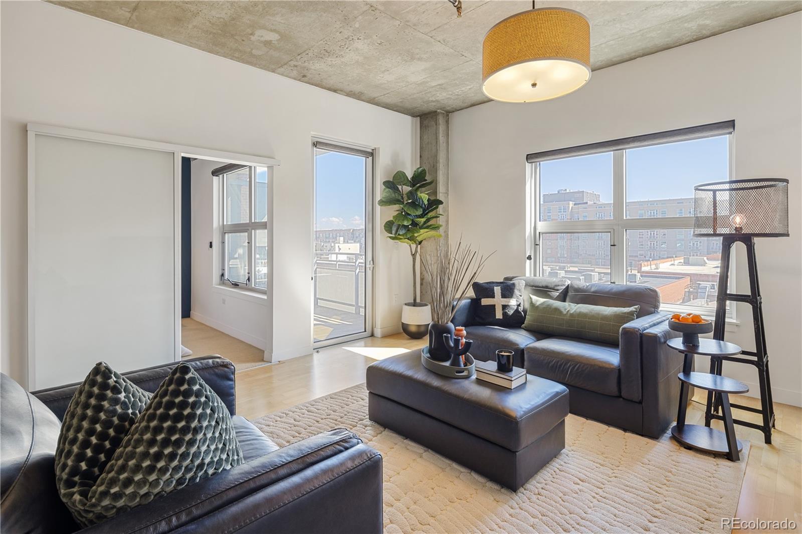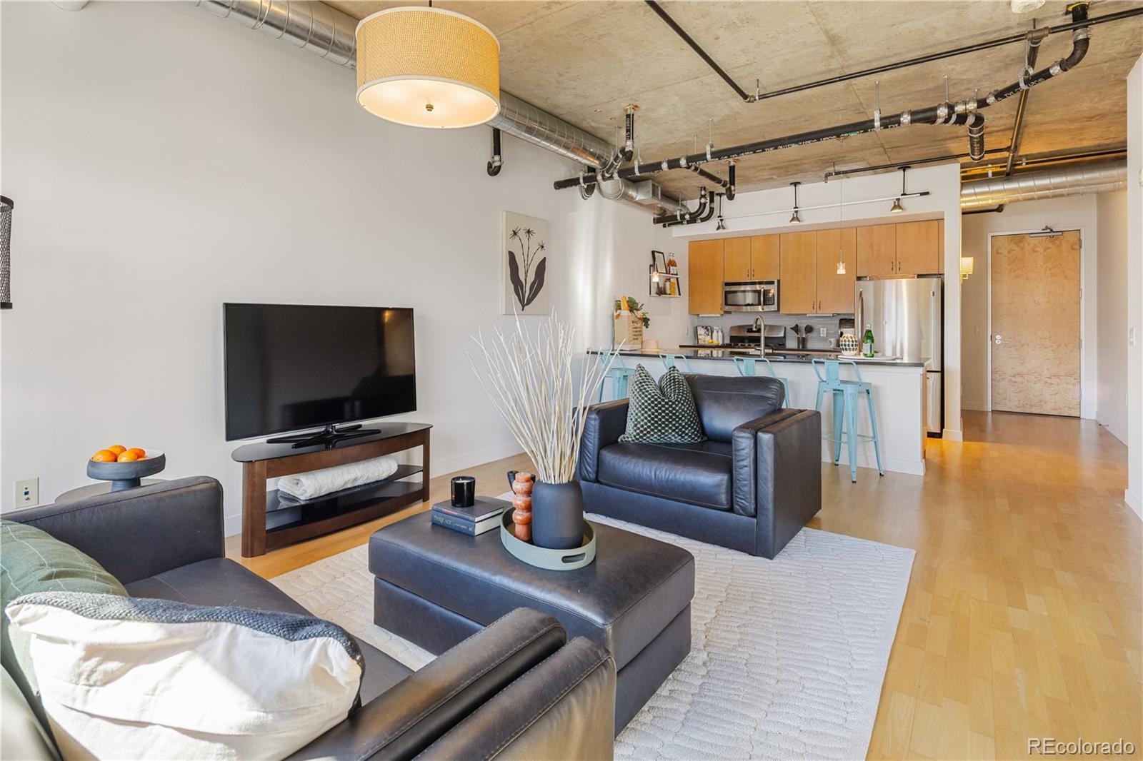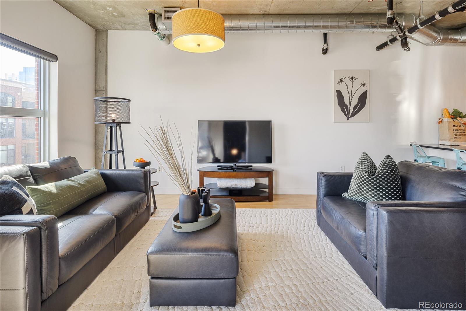 Experience the best of downtown Denver living in this beautifully refreshed one bedroom one bath loft in Zi Lofts, perfectly positioned on the fifth floor overlooking the historic Breckenridge Brewery building, now home to the Cherry Cricket. This residence blends modern finishes with classic urban character, featuring an open concept layout filled with natural light and freshly painted interiors that create an inviting, move-in-ready atmosphere. The kitchen is designed for both entertaining and everyday living with granite countertops, a large island, and stainless steel appliances including a refrigerator, oven, microwave, dishwasher, and disposal. The spacious living area opens to a private balcony with protected views of the Ballpark district, offering the perfect spot to relax or enjoy the city lights. The primary suite includes a generous walk-in closet and a full bath with modern fixtures and clean finishes. Convenience abounds with a same-floor dedicated storage space and an oversized parking spot located right next to the elevator for effortless access. All furniture is negotiable, giving buyers an easy turnkey opportunity. A recently installed Butterfly security and video access system enhances privacy and provides secure, modern entry to the building. This 848 square foot loft combines comfort, style, and an unbeatable location surrounded by Coors Field, Union Station, Riverfront Park, RiNo, Ball Arena, and some of Denver’s best restaurants, coffee shops, and boutiques. Zi Lofts remains one of the city’s most desirable boutique buildings, offering a rare blend of quiet sophistication and proximity to everything that makes downtown Denver vibrant.