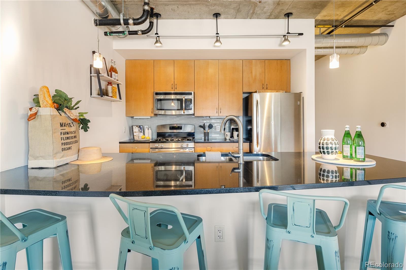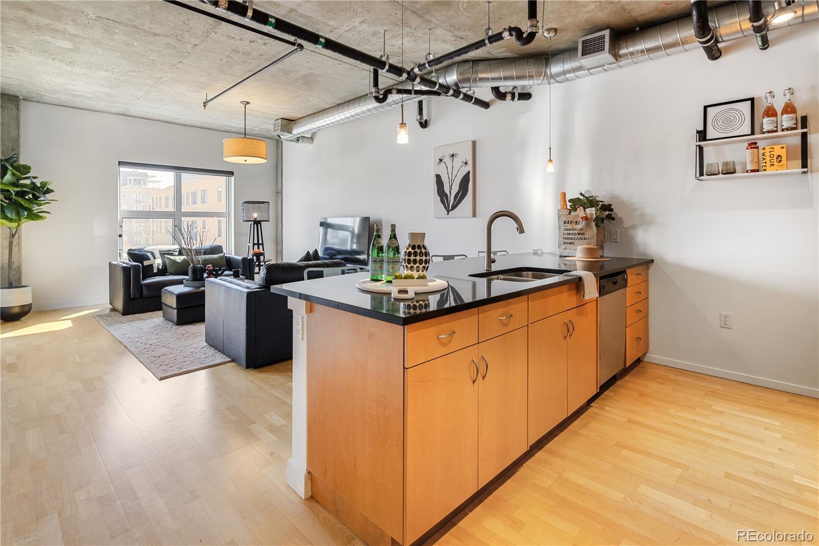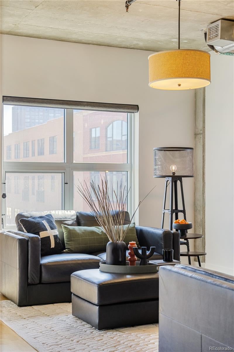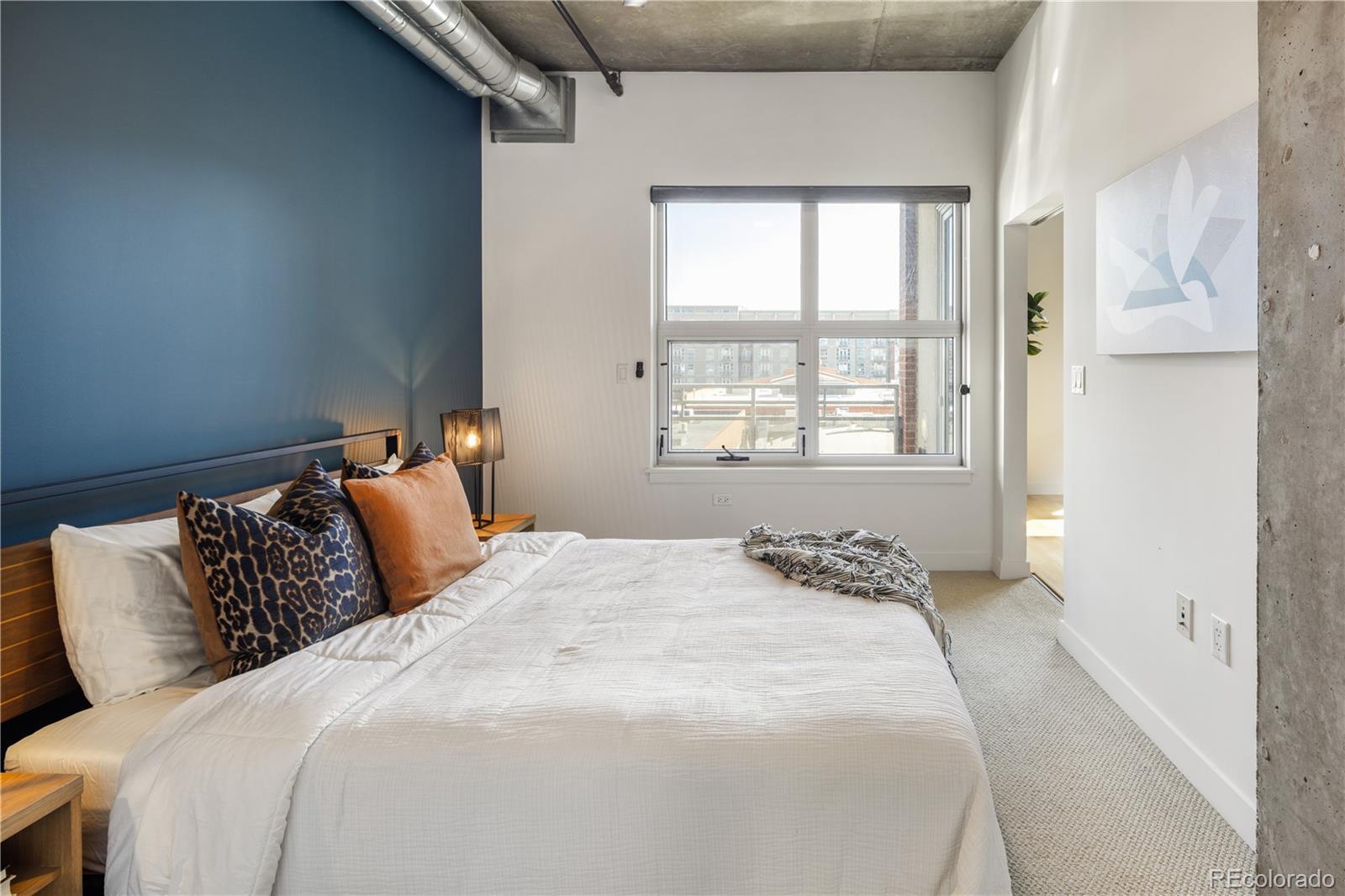 Experience the best of downtown Denver living in this beautifully refreshed one bedroom one bath loft in Zi Lofts, perfectly positioned on the fifth floor overlooking the historic Breckenridge Brewery building, now home to the Cherry Cricket. This residence blends modern finishes with classic urban character, featuring an open concept layout filled with natural light and freshly painted interiors that create an inviting, move-in-ready atmosphere. The kitchen is designed for both entertaining and everyday living with granite countertops, a large island, and stainless steel appliances including a refrigerator, oven, microwave, dishwasher, and disposal. The spacious living area opens to a private balcony with protected views of the Ballpark district, offering the perfect spot to relax or enjoy the city lights. The primary suite includes a generous walk-in closet and a full bath with modern fixtures and clean finishes. Convenience abounds with a same-floor dedicated storage space and an oversized parking spot located right next to the elevator for effortless access. All furniture is negotiable, giving buyers an easy turnkey opportunity. A recently installed Butterfly security and video access system enhances privacy and provides secure, modern entry to the building. This 848 square foot loft combines comfort, style, and an unbeatable location surrounded by Coors Field, Union Station, Riverfront Park, RiNo, Ball Arena, and some of Denver’s best restaurants, coffee shops, and boutiques. Zi Lofts remains one of the city’s most desirable boutique buildings, offering a rare blend of quiet sophistication and proximity to everything that makes downtown Denver vibrant.
