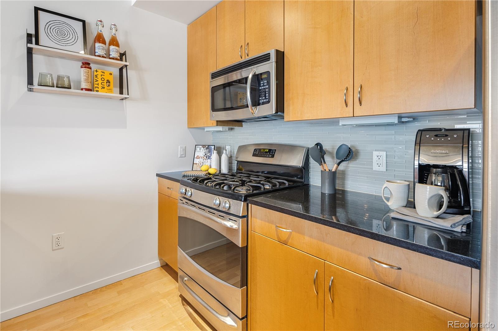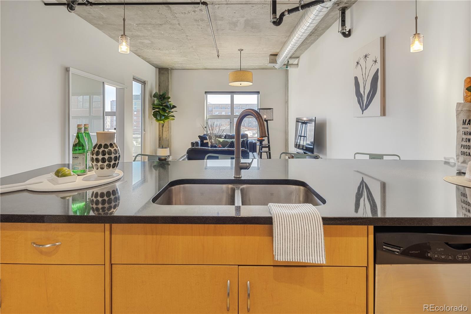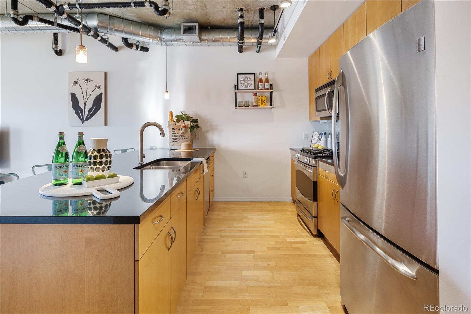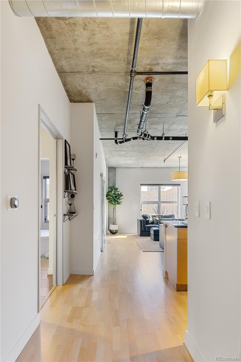 Experience the best of downtown Denver living in this beautifully refreshed one bedroom one bath loft in Zi Lofts, perfectly positioned on the fifth floor overlooking the historic Breckenridge Brewery building, now home to the Cherry Cricket. This residence blends modern finishes with classic urban character, featuring an open concept layout filled with natural light and freshly painted interiors that create an inviting, move-in-ready atmosphere. The kitchen is designed for both entertaining and everyday living with granite countertops, a large island, and stainless steel appliances including a refrigerator, oven, microwave, dishwasher, and disposal. The spacious living area opens to a private balcony with protected views of the Ballpark district, offering the perfect spot to relax or enjoy the city lights. The primary suite includes a generous walk-in closet and a full bath with modern fixtures and clean finishes. Convenience abounds with a same-floor dedicated storage space and an oversized parking spot located right next to the elevator for effortless access. All furniture is negotiable, giving buyers an easy turnkey opportunity. A recently installed Butterfly security and video access system enhances privacy and provides secure, modern entry to the building. This 848 square foot loft combines comfort, style, and an unbeatable location surrounded by Coors Field, Union Station, Riverfront Park, RiNo, Ball Arena, and some of Denver’s best restaurants, coffee shops, and boutiques. Zi Lofts remains one of the city’s most desirable boutique buildings, offering a rare blend of quiet sophistication and proximity to everything that makes downtown Denver vibrant.