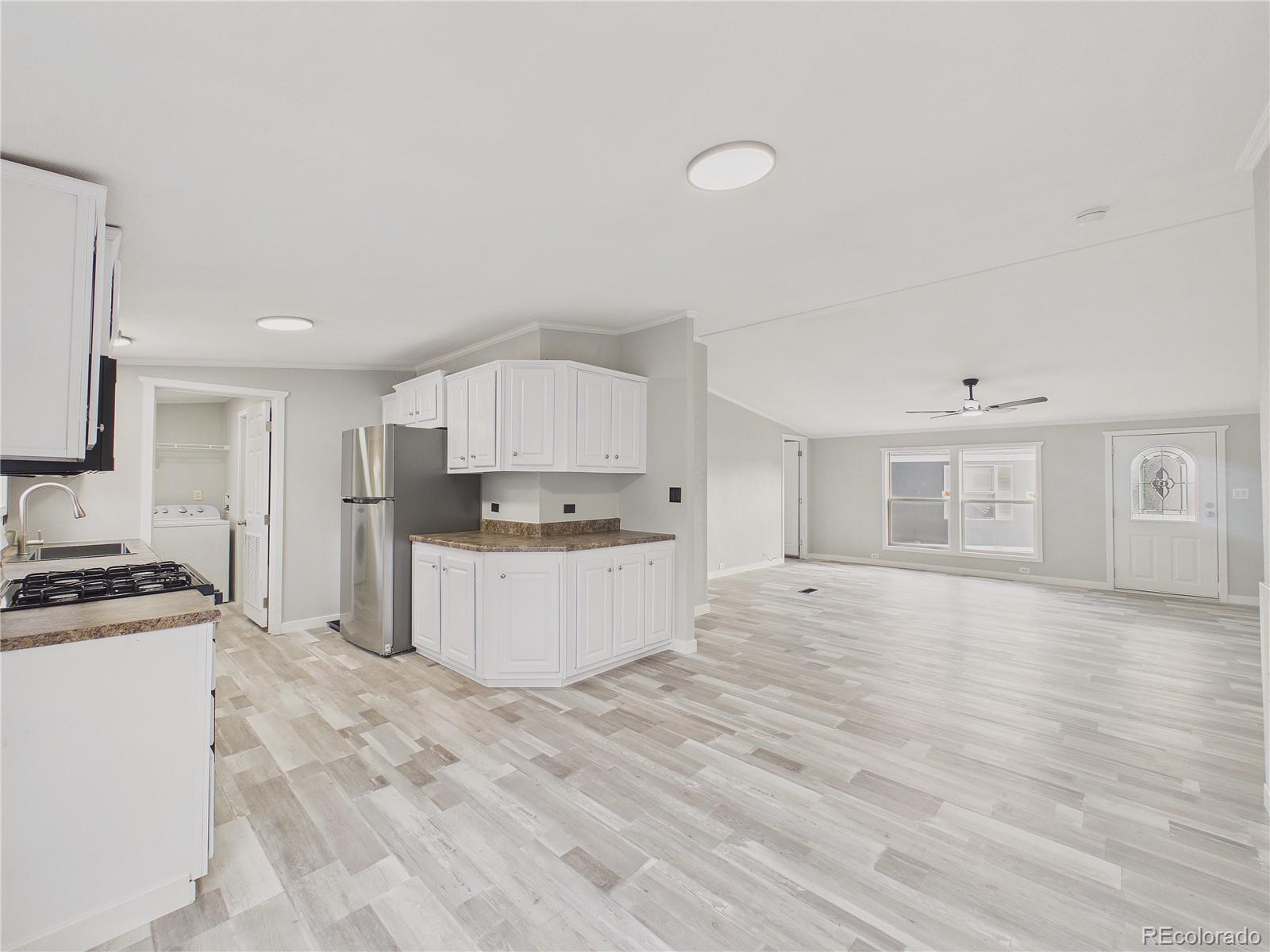 Located in the welcoming community of Kimberly Hills MHC, this fully remodeled 2015 home offers over 1,500 square feet of beautifully updated living space with 3 bedrooms and 2 bathrooms. From the moment you arrive, you’ll appreciate the two dedicated parking spaces conveniently located right out front and the home’s prime location near shopping, dining, and public transportation in a pet-friendly community. Inside is completely remodeled featuring ALL new DRY WALL, brand-new luxury laminate flooring throughout, new windows that flood the home with natural light, crown molding throughout, and updated light fixtures for a clean, modern feel day and night. The spacious family room offers a versatile, open layout ideal for entertainment. The kitchen has been thoughtfully updated with new white cabinetry and brand-new appliances, offering both style and functionality. The primary suite is generously sized with a HUGE walk in closet and a beautifully upgraded en-suite bathroom complete with modern finishes and a relaxing soaking tub. Two additional bedrooms are well-proportioned and feature walk in closets. There is an additional bathroom that has also been completely remodeled with a new DOUBLE-SINK vanity, new lighting and is ready to WOW~ This like-new home combines space, style, and convenience—don’t miss your opportunity. LOTS OF ADDITIONAL PARKING STEPS AWAY FROM HOME - HOME IS LOCATED IN QUIET CUL-DE-SAC!!