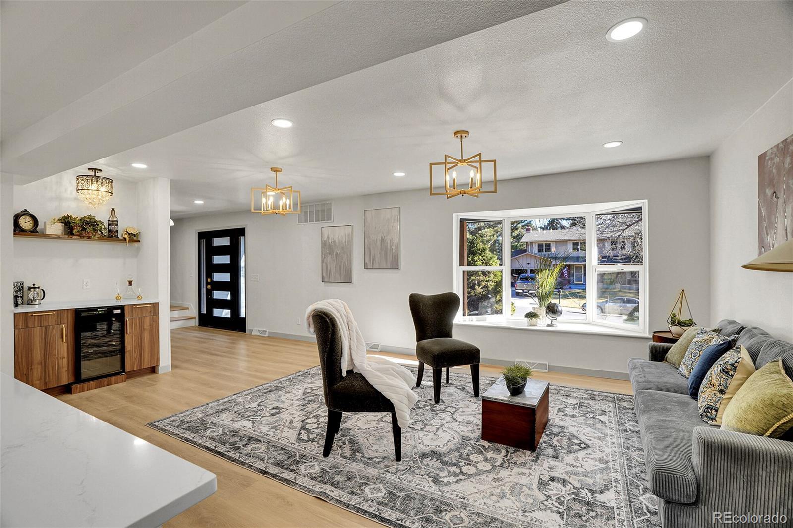 Welcome to 2523 S Carr Ct, Lakewood, CO 80227, a beautifully remodeled 5-bedroom, 3.5-bathroom home located on a quiet cul-de-sac near Green Mountain, Bear Creek, and the Belmar Shopping District, within the Jefferson County School District (Jeffco Public Schools). Inside, the home offers three separate living rooms, providing exceptional flexibility for entertaining, working from home, media rooms, or multi-generational living. The gourmet kitchen features quartz countertops, double ovens, abundant cabinetry, and elegant alabaster marble pendant lighting, complemented by new light fixtures throughout. Kitchen and Dining room flow seamlessly into the connected main living areas. The luxury primary suite is a private retreat with a spa-inspired bathroom and soaker tub. Additional highlights include five spacious bedrooms, three full bathrooms, a powder room, a wine bar, and a cozy fireplace. A full basement adds valuable living and storage space. Major system updates include a new roof, new air conditioning system, new windows, and new hot water heater, offering peace of mind for years to come. Thoughtful remodeling throughout makes this home truly move-in ready. Step outside to enjoy a lovely outdoor space with a sprinkler system and mature trees perfect for relaxing, entertaining, or enjoying Colorado’s beautiful seasons. Walking distance to Westgate elementary. With nearby parks, trails, Green Mountain open space, and convenient access to shopping and dining, this Lakewood home combines modern finishes, generous living space, and a desirable neighborhood setting, perfect for buyers seeking comfort, style, and convenience.