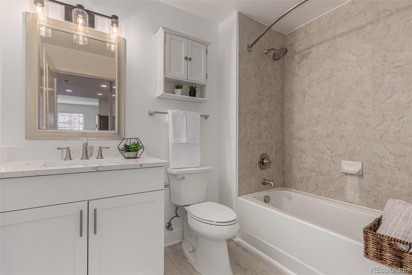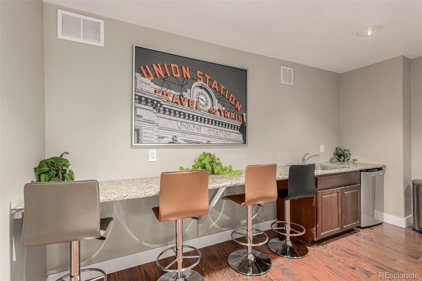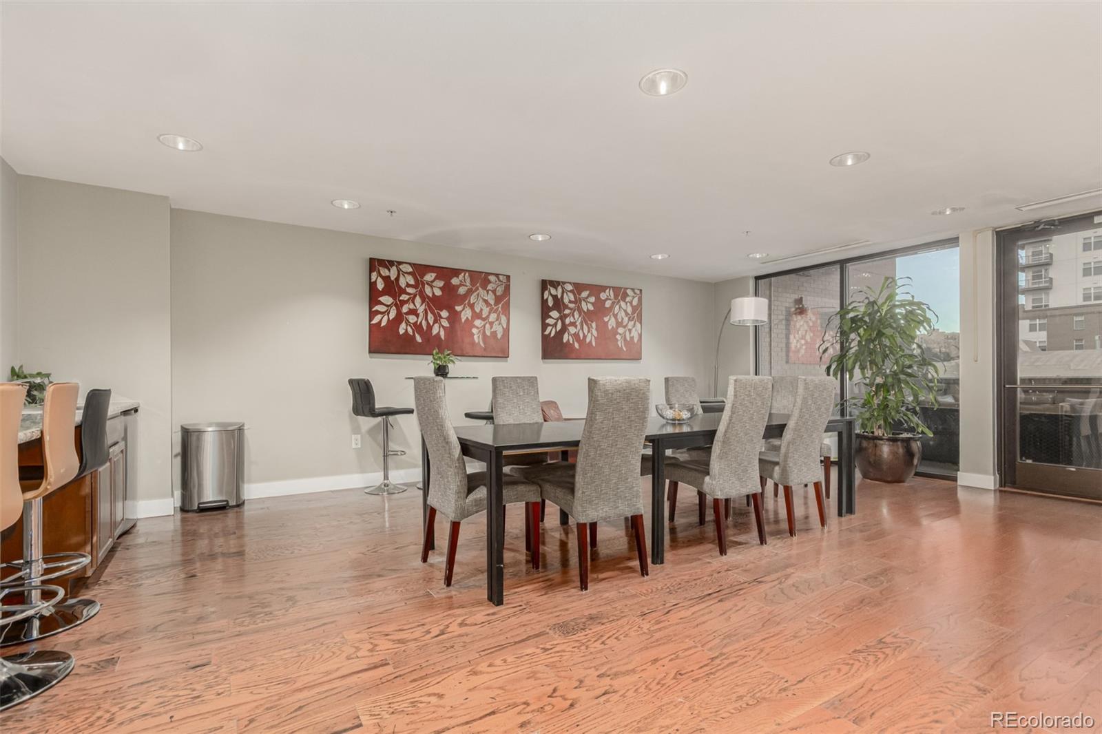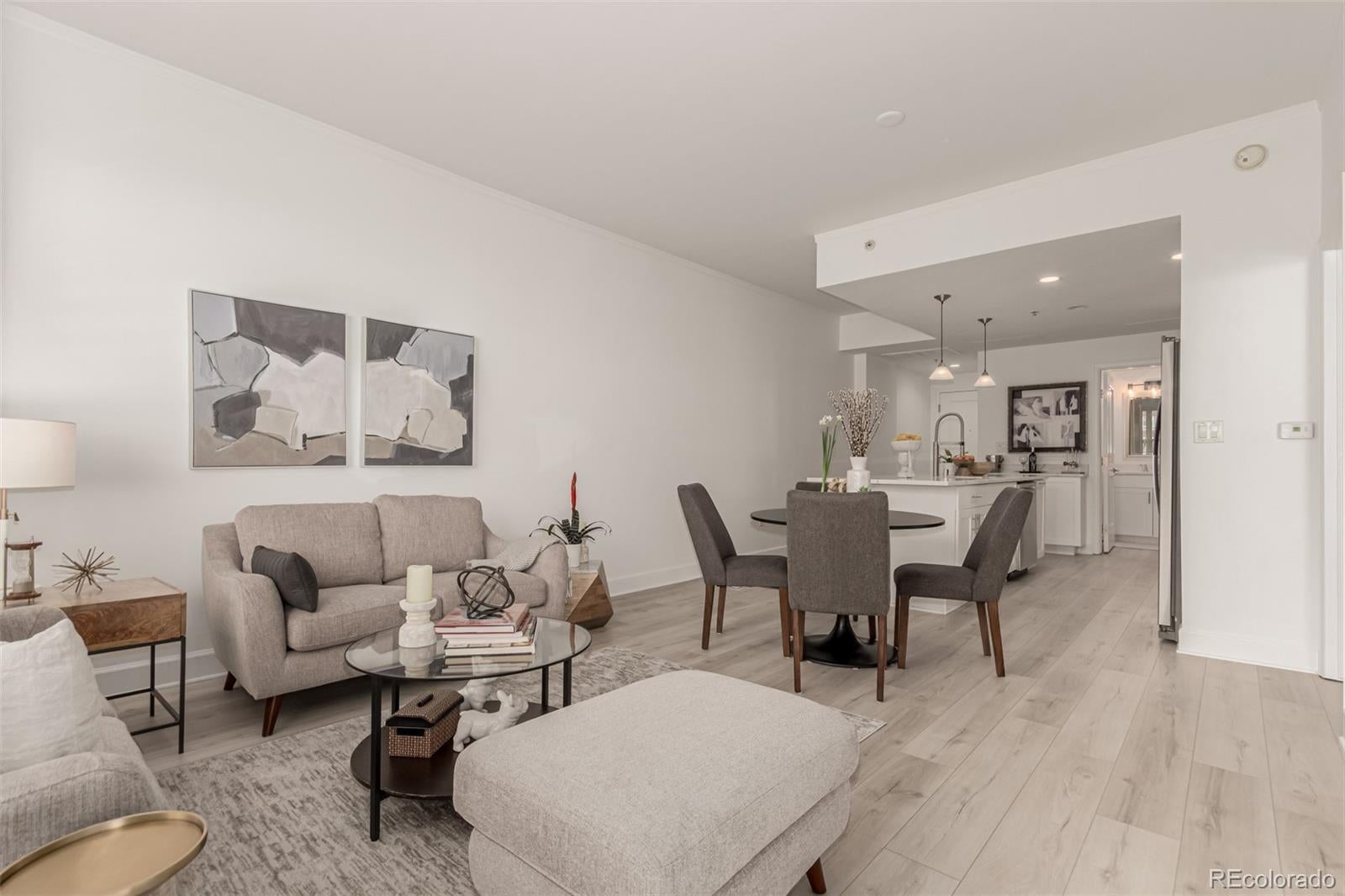 Grant Park Condos, Urban Contemporary Living in the Heart of Uptown! Welcome to this stunning & bright two bedroom and two bath unit. This nicely updated condo with east facing views from the living room, primary bedroom and your own private balcony—ideal for relaxing evenings or morning coffee. Inside, this beautiful unit offers a modern, open-concept layout, a large kitchen with island, white cabinetry, sharp Quartz countertops, stainless steel appliances, gas stove and plenty of space to cook & entertain. The open style great room flow is a comfortable combination of living & dining. The primary bedroom with three windows, an ensuite four-piece bathroom and walk-in closet. The second bedroom has a full-size Murphy bed installed, closet, built-in corner office desk and bookshelves- a wonderful use of space. Additional features include wood flooring throughout and a stackable washer/dryer. Access the 2nd floor for the great building amenities- a large fitness center, spacious outdoor patio and community meeting room. Set in a prime location, across the street from the corner of the building is the local Benedict Fountain Pocket Park. Looking for more close by? Travel south a block over to the close by 19th street row of restaurants and businesses. If that's not enough, travel up just 2 blocks more to 17th Avenue, which is whole additional corridor of restaurants, shops & stores. Downtown Denver too is very close, just head over west about 5 blocks and you are connected to the newly updated 16th Street with free buses making it easy to enjoy everything the city has to offer all the way to LODO & Union Station.