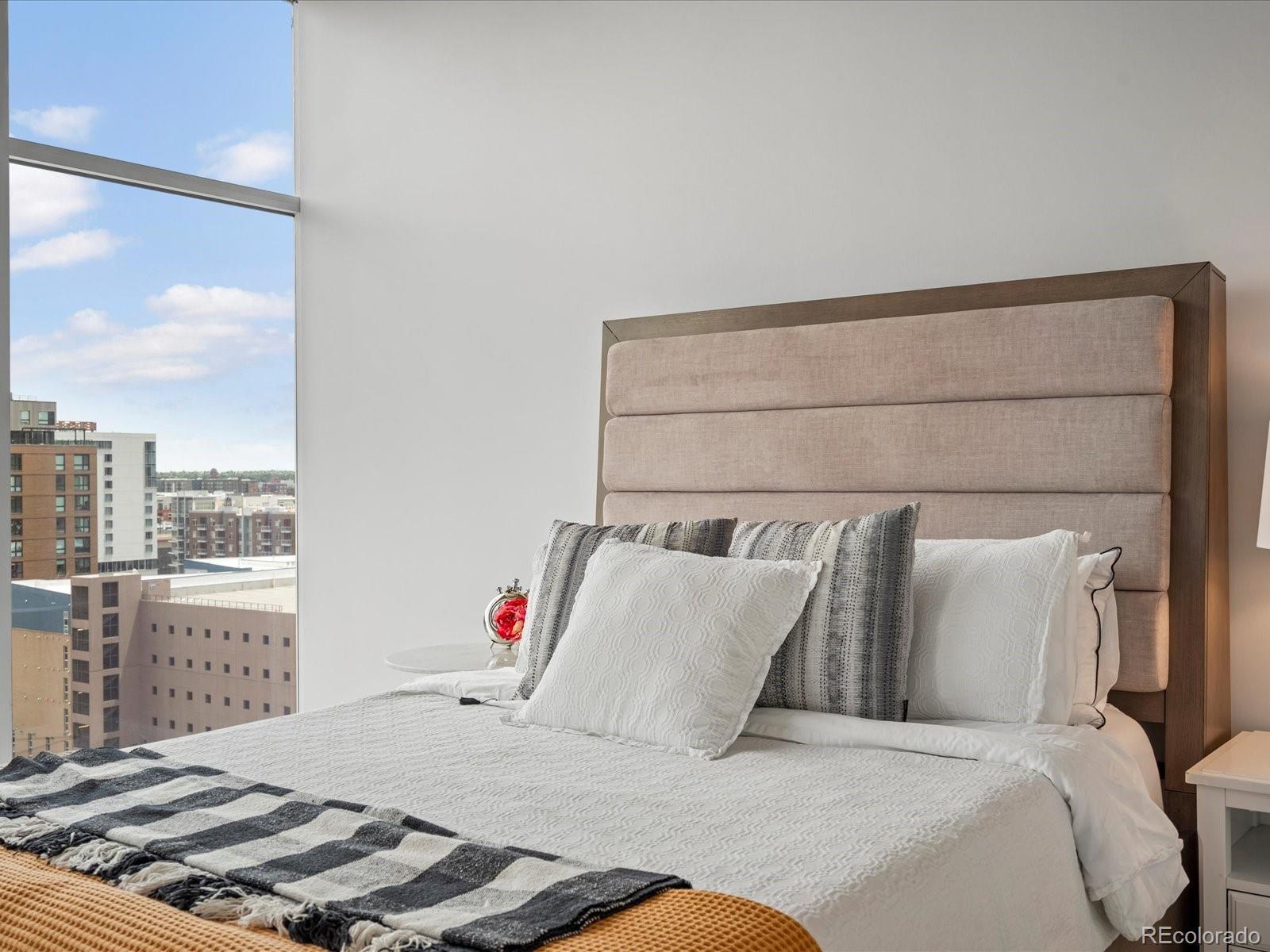 Experience the perfect blend of space, luxury, and value in this spectacular two-primary-suite loft, the largest of its kind currently on the market in an amenities drenched building. Priced with the best price per square foot in the building, this isn't just a purchase—it's an investment with immediate, built-in equity. Soaring ceilings and floor-to-ceiling windows flood the open floor plan with natural light, creating a breathtaking backdrop for views to the west and open skies over to Coors Field—perfect for sunsets and summer fireworks displays. This exceptional residence boasts one of the largest kitchens in the building, complete with granite slab countertops, stainless appliances, and a generous breakfast bar. Upgrades include brand-new interior paint, new carpeting in both bedrooms and electric roller shades throughout. This compliments the wide-plank wood floors and exposed concrete ceilings. As a resident of this full-service high-rise, you'll enjoy unparalleled amenities: a rooftop pool, business center, full service Riverfront Athletic Club and 24/7 concierge service plus a secure community garage - 1 reserved. Riverfront Park is just steps from the Millennium Bridge, Union Station, Commons Park, Whole Foods, Highlands and countless shops and restaurants. Walk to Union Station for a quick ride to the airport or mountain ski train or walk to S Platt or Highlands for a local feel. This exceptional property also presents a turnkey investment opportunity, already successfully operating as a furnished mid-term (30-90 day) rental and is ready to continue to generate immediate income. With an impressive track record of 272 booked nights with a 54 average day stay in 2025, generating $40,101 in gross rent YTD (10 months) through platforms like Airbnb, it offers a compelling and proven revenue stream. Delivering both cash flow and flexibility, this move-in-ready property is perfectly suited for an investment purchase, second home, or a primary residence.