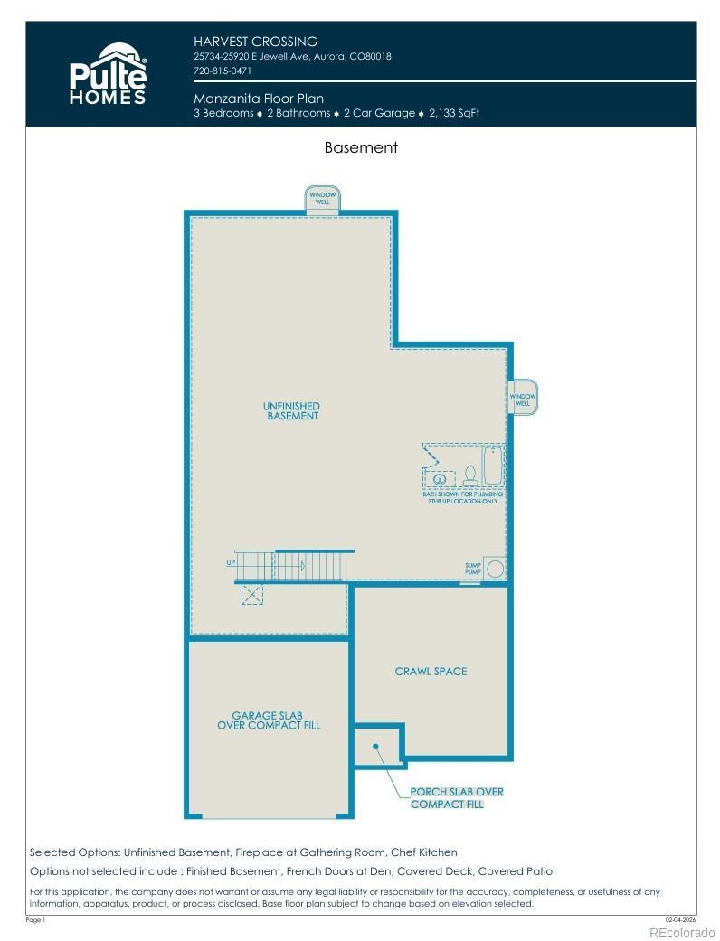 We are proud to present this lovely Pulte Homes ranch style home in the beautiful Harvest Crossing neighborhood, one of Aurora's premier new communities! This is a stunning suburban area with ample green space. The Manzanita floor plan is one of Pulte's favorite house plans! 3 bedrooms, 2-bathroom layout with a practical main floor Den offers the perfect work from home setup or formal Gathering Area. The spacious kitchen with kitchen island, flows perfectly into the Café and Gathering Room - great entertainment space! This NEW BUILD home offers an open floor plan with exceptional finishes throughout. Main-level primary bedroom offers a gorgeous ensuite bath with dual sinks, tile flooring, shower enclosure, and huge walk-in closet! Gathering Room is pouring with natural light. Chef’s kitchen features beautiful cabinets, Stainless Steel appliances, 5-burner Gas Cooktop, Hood, microwave, and oven. Main floor laundry offers great convenience! Great curb appeal with comfortable 2 car garage. Eye catching front entrance, frame/stone exterior. Front landscaping is included. Enjoy a private yard complete with covered patio and ready for personalization post-close! Everything is NEW, enjoy our complete builder home warranty that brings your tremendous peace of mind. Spacious secondary bedrooms with adjacent full hall bath. The unfinished basement offers a large open storage room and ample space for future finish if desired. Live close to shopping, dining, outstanding schools, trails & easy access to Denver/DIA. Community offers playground, and trails throughout this thriving part of town. You're a short drive to both Aurora Reservoir or jump over to Cherry Creek Reservoir & State Park both offering camping, fishing, and boating and amazing recreational opportunities! Don't miss this amazing home in an amazing community!