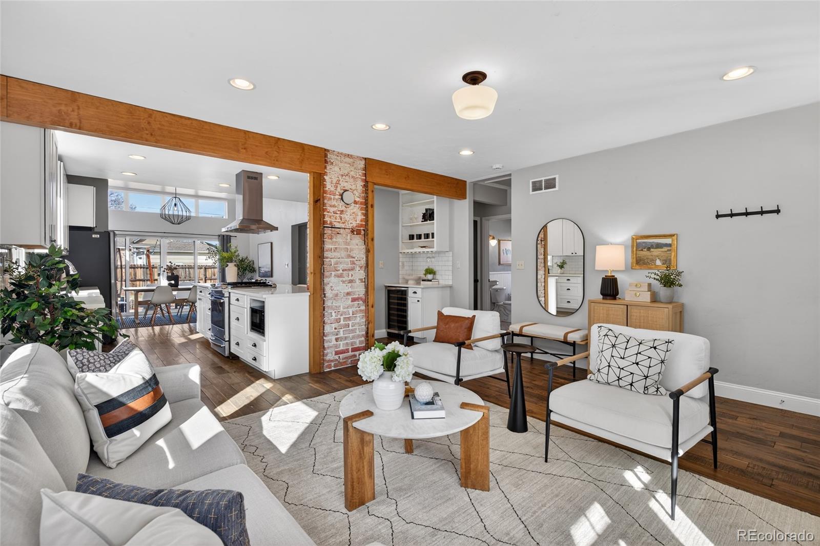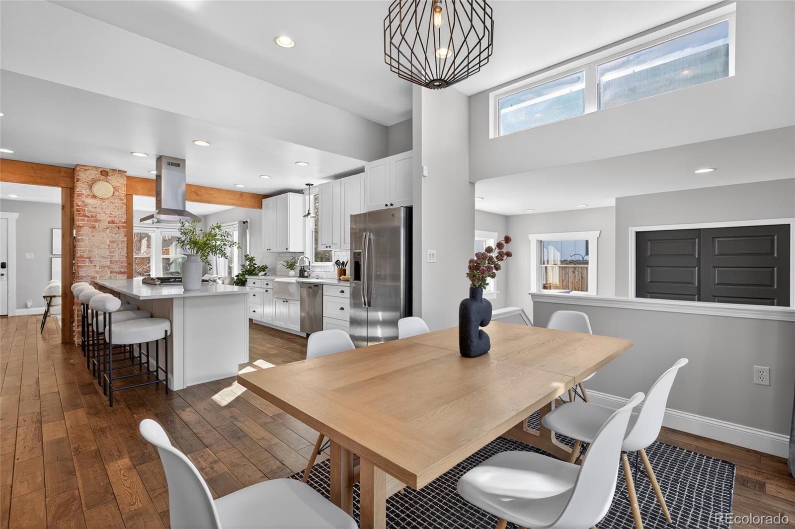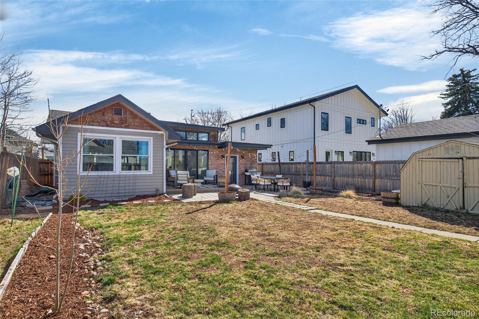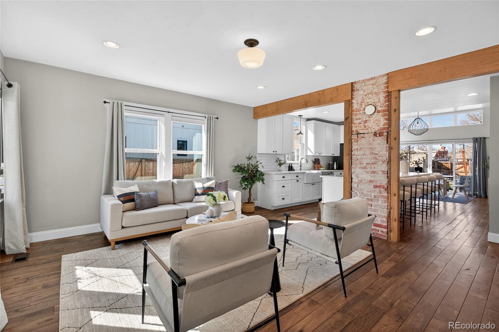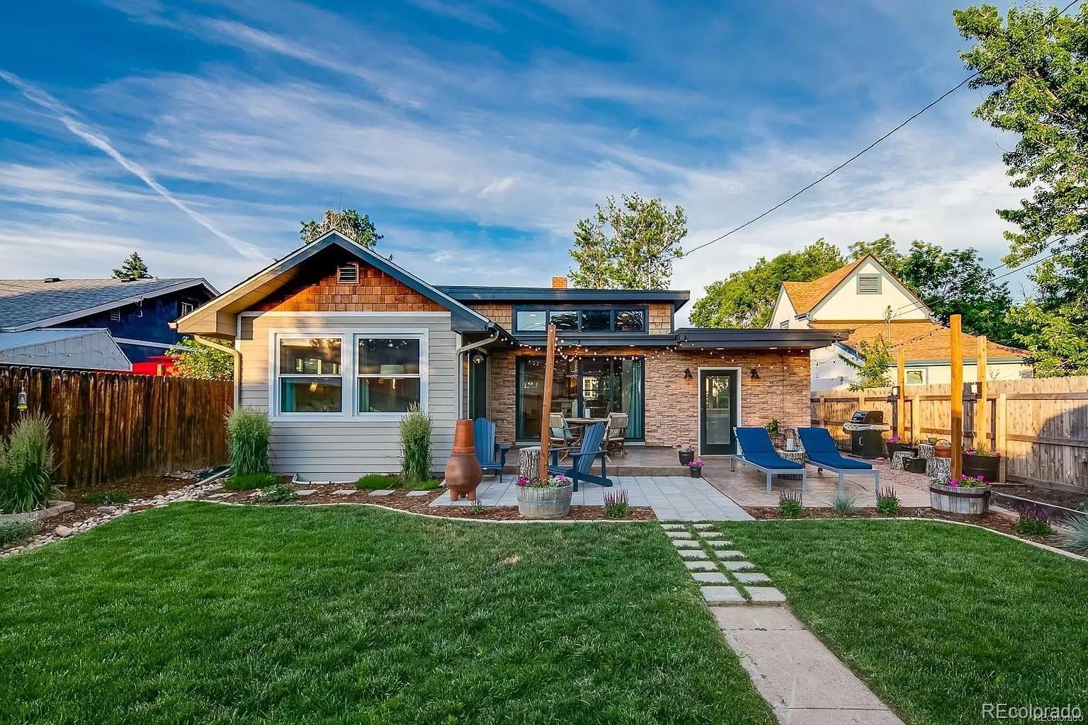 Craftsman character. Colorado soul. This thoroughly remodeled 1922 bungalow honors its original character while feeling current and livable thanks to top-to-bottom modern renovations. Tucked into Denver's Berkeley neighborhood, you're just a half block from Berkeley Lake Park's views, walking paths, tennis courts and dog park—and minutes from downtown. The main floor makes a statement with exposed brick and beams, distressed hardwood floors and original-style window trim. Look forward to evenings clinking glasses around the quartz-topped island beside the wine fridge and bar station, with shaker-style cabinetry and premium appliances in the kitchen. Just beyond, the dining area is flooded with natural light from clerestory windows above. Take gatherings outside to the backyard for alfresco dinners surrounded by beautiful landscaping, sun-soaked garden beds and multiple stamped-concrete and stone patios. Single-level living means the primary suite is conveniently placed—a retreat with patio access via glass sliders, a huge walk-in closet with custom organization, and an oversized shower with floor-to-ceiling tile. The main floor is rounded out by a spacious guest bedroom and bathroom with wainscoting and a claw-foot tub. A well-appointed basement expands the home’s living and guest space with its own bedroom, bathroom, living area and wet bar—all finished to the home’s high design standards. Enjoy living steps from Tennyson Street's restaurants, bars and shops, yet far enough away to avoid the parking headaches. And when adventure calls, quick access to I-70 makes heading to the mountains easy.
