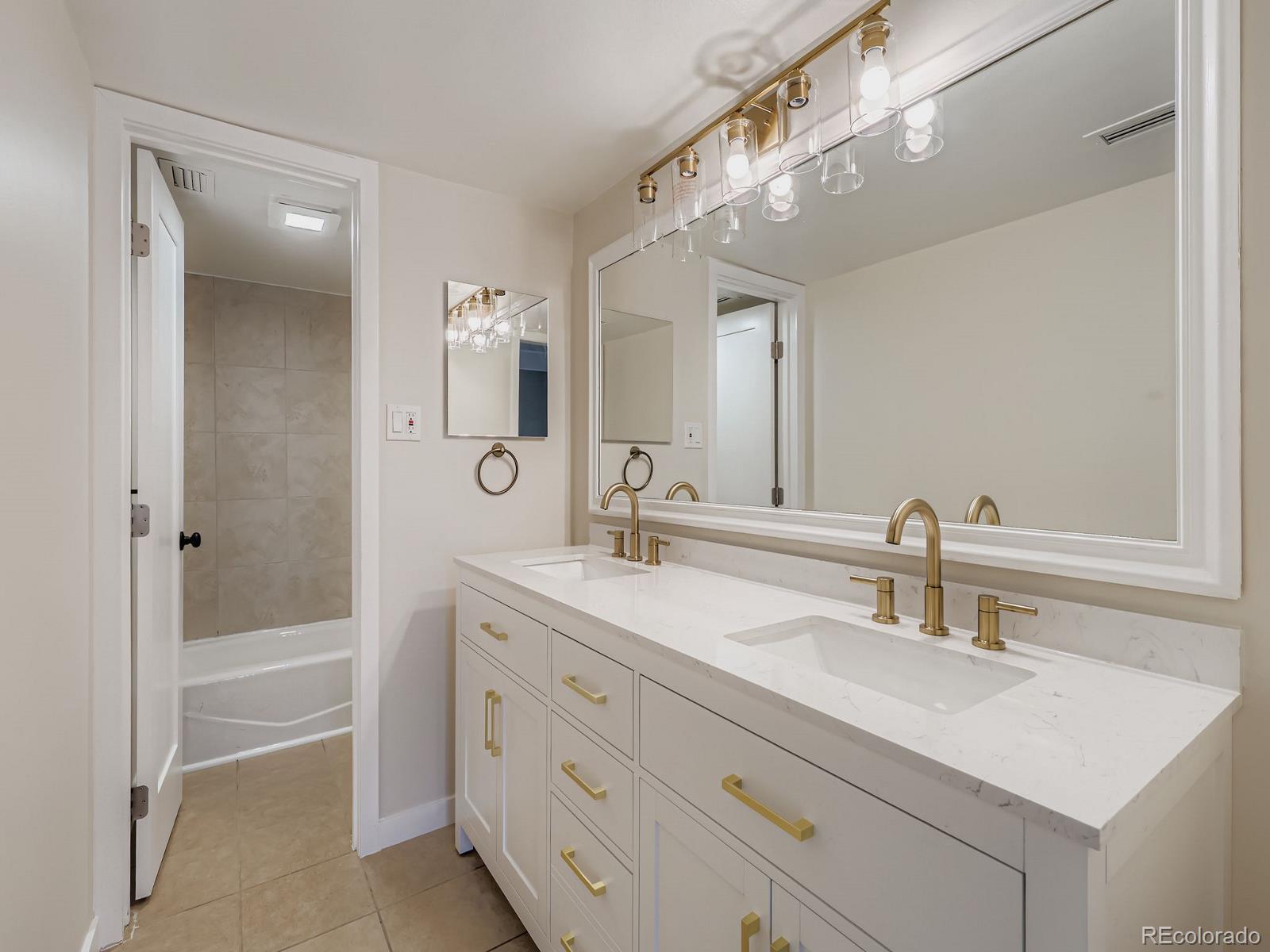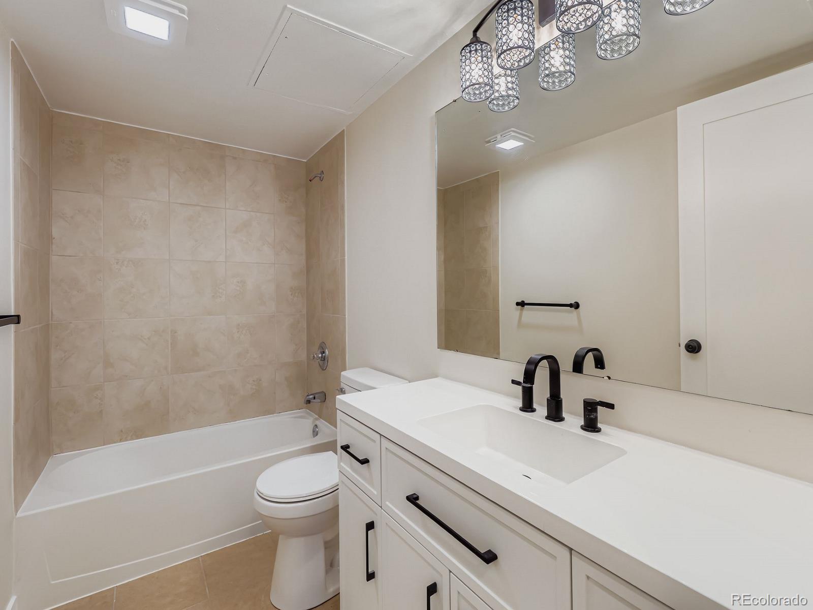 Welcome home to this beautifully remodeled Woodstream Falls condo with a wonderful open floor plan featuring a spacious great room that offers unmatched flexibility for room layouts and usage with plenty of space for a dining table, desk, sectional sofa, and cardio equipment. The connected kitchen is the heart of the home and features new cabinets, quartz countertops, stainless appliances, tile backsplash, lighting and hardware. Both bedrooms are large and each has a walk-in closet. The primary bedroom has a remodeled ensuite bath featuring a new double sink vanity and lighting. At 1,138 square feet, this property is 200 to 300 square feet larger than most two bedroom condos in Denver.... So big that many units have been converted to add a third bedroom. The extra storage and space makes all of the difference in the world and when you are ready to venture out, you'll love this great SE Denver location that is close to dining, shopping, recreation, schools, hospitals, and more. Easy access to the DTC, Cherry Creek, Parker, DIA, Downtown, and near highways and public transit to take you throughout the metro area and beyond. HOA provides heat, electricity, AC, water, sewer, trash, and exterior maintenance.