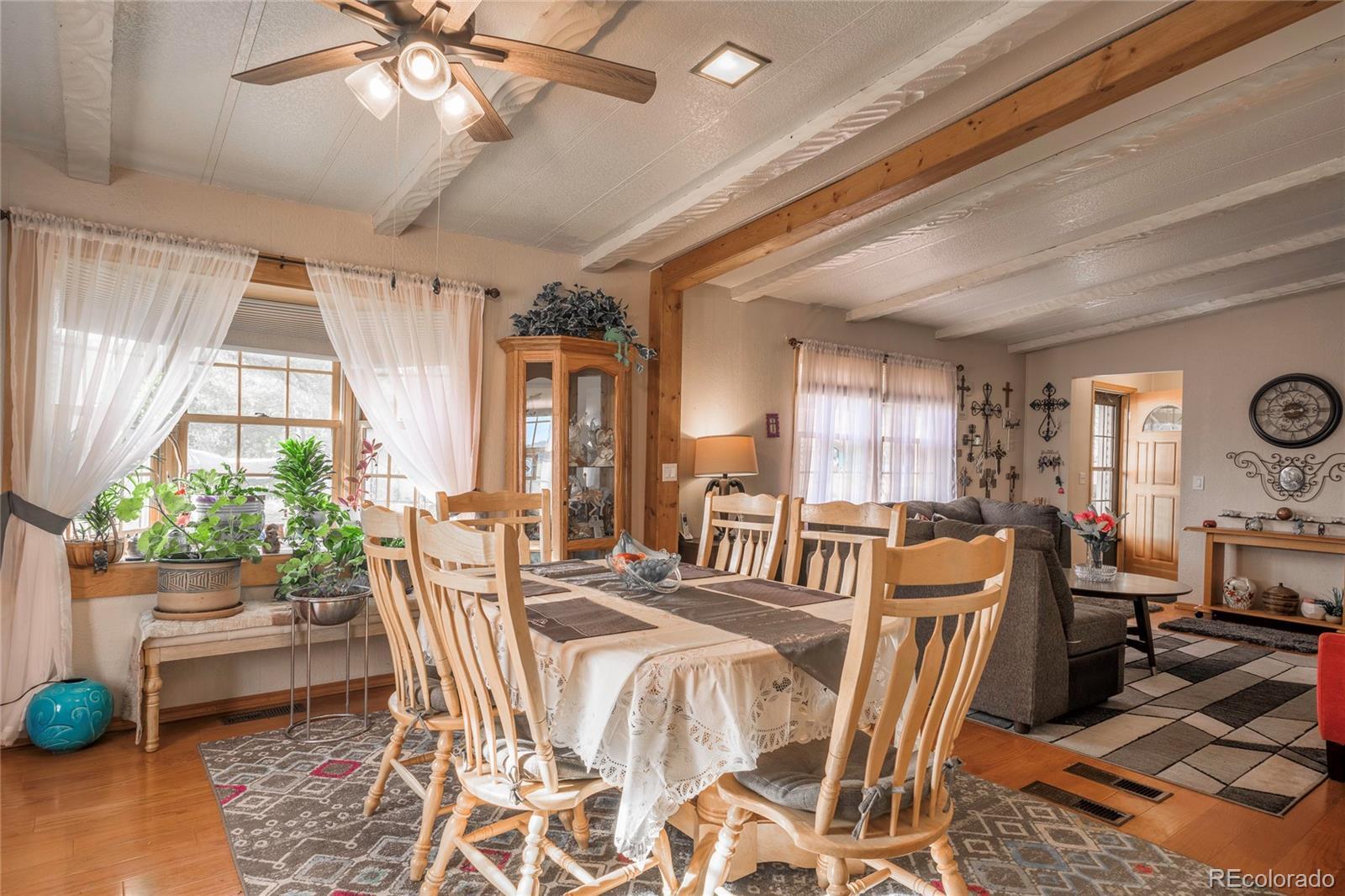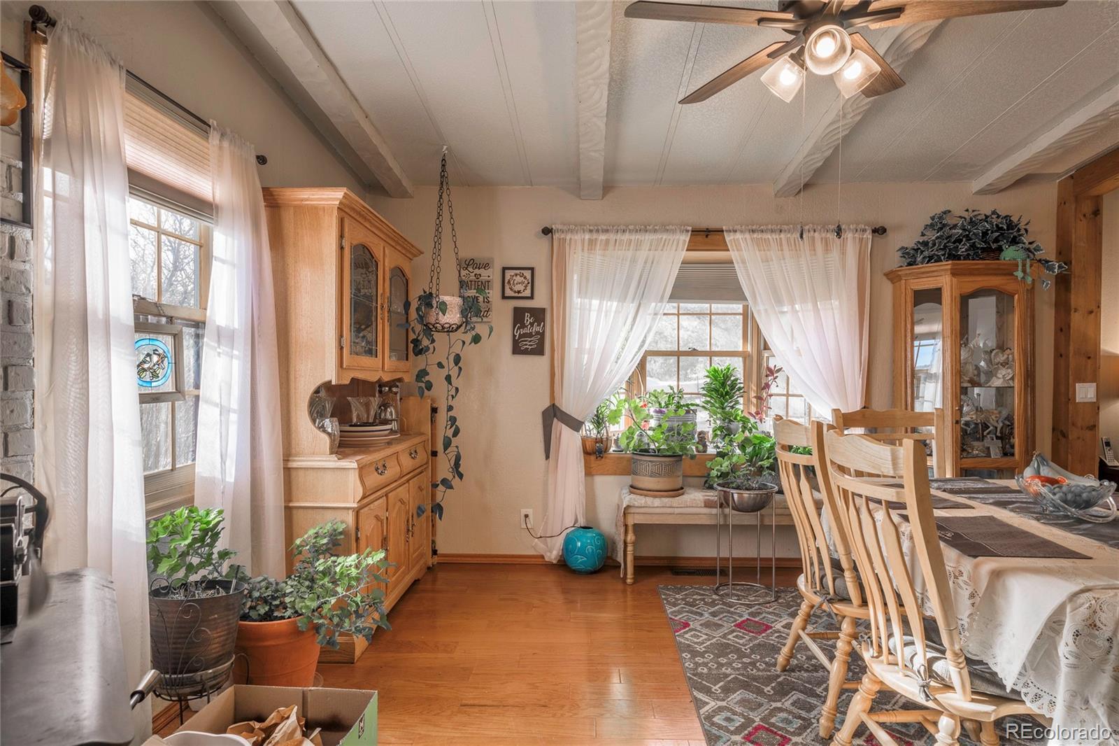 Over an acre and a half in a beautiful wooded setting just minutes from the city, this charming 3-bedroom, 2-bath home offers the perfect blend of comfort and convenience. Enjoy stunning views of Fisher's Peak from the inviting sunroom, while the open-concept living, dining, and kitchen area creates a spacious and welcoming atmosphere. Recent updates include a new fridge, new tile flooring in the kitchen, and in the primary bedroom new carpet, new vanity and a new walk-in shower. A large pantry, washer and dryer in the kitchen, and a cozy wood stove add to the home's functionality and warmth. Stay comfortable year-round with a swamp cooler and two furnaces. The craft/bonus room offers additional flexibility, while the barn, corral, fenced backyard, and partially fenced property make this a great option for those seeking space for animals or outdoor activities. Don't miss this serene retreat just a short drive from city amenities!