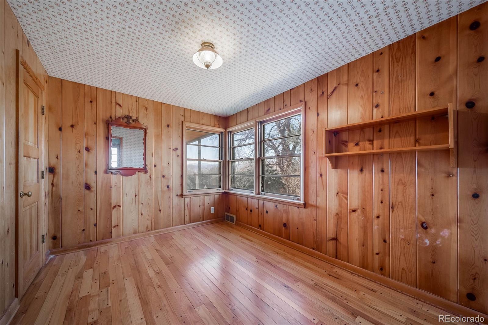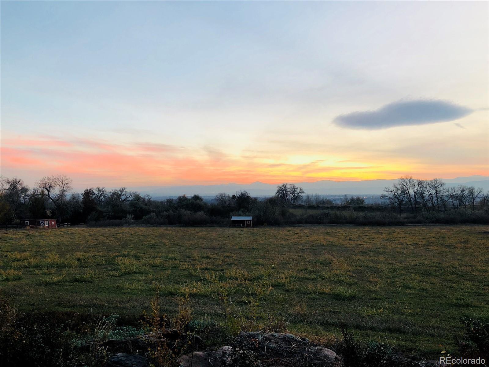 Unprecedented 4.5+ acre Arvada property with sweeping, unobstructed Front Range views—a legacy estate not available for over 75 years. The largest combined parcel in highly sought-after Star Acres, this preserved mid-century modern house (approx. 1,700 SF above grade + 1,060 SF basement) showcases original hardwood floors, solid wood paneling, and a dramatic fireplace, offering timeless character in an irreplaceable setting. The land itself is a true “crown jewel” of western Denver, second to none in its appeal: 4.5+ acres across two contiguous parcels (not eligible for subdivision). The land gently slopes from the home toward the expansive field and horse barn, creating panoramic mountain views, exceptional depth of sightline, and unforgettable Colorado sunsets, protected long-term by the adjacent ditch corridor and permanent City of Arvada open space behind it. Included with the sale are 2-inch ditch water rights, a highly valuable and rare Colorado asset, ideal for irrigating pasture, crops, gardens, or supporting horses—while still enjoying the convenience of city water and sewer on the property. A legacy well is also present on site. Zoned RA (Residential Agricultural) by the City of Arvada, approx. 3 acres is currently assessed as agricultural/irrigated land, a designation that may provide favorable tax treatment. Additional features include a detached two-car garage with workshop/shed, a small horse barn, and a private pull-through driveway, offering ease of access, functionality, and privacy. Here, the peace of acreage and extraordinary views coexist with everyday convenience—just minutes from shopping, dining, amenities, and parks, including Standley Lake Regional Park, with easy access to I-70 (downtown Denver and the ski slopes) and Highway 36 (Boulder and Broomfield). The result is a rare “country-in-the-city” estate offering an unmatched combination of land, water, views, and location, widely regarded as one of Arvada’s most extraordinary holdings.