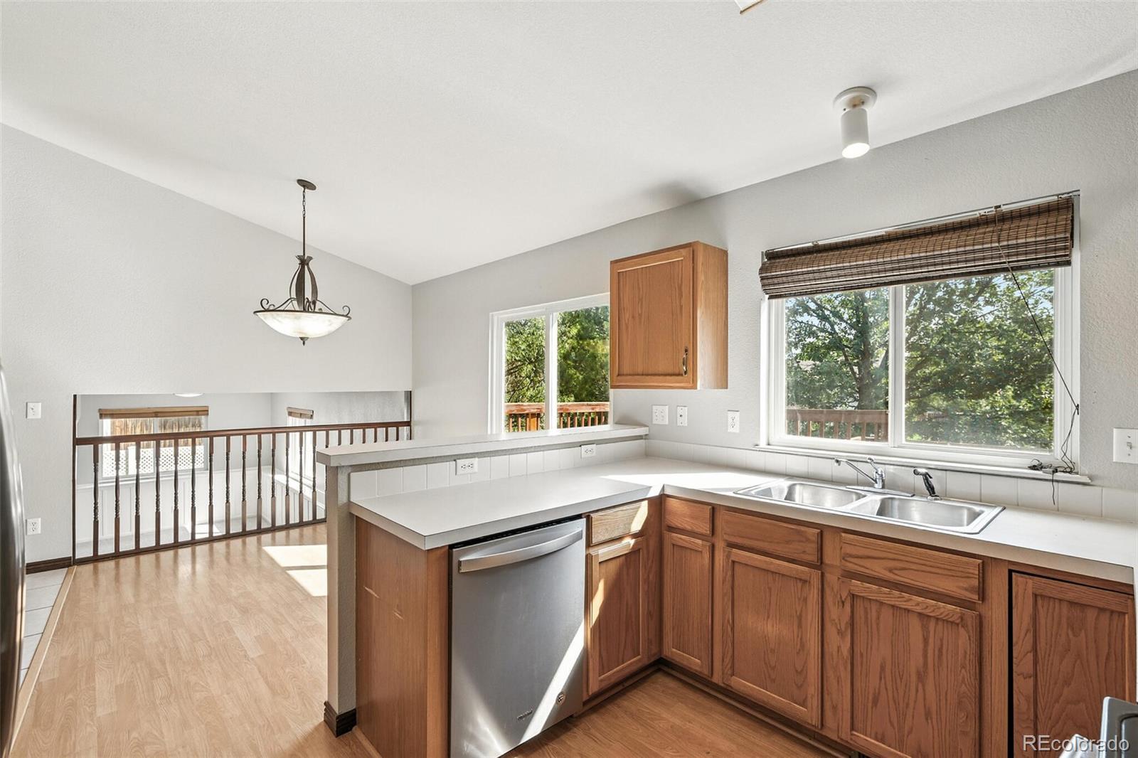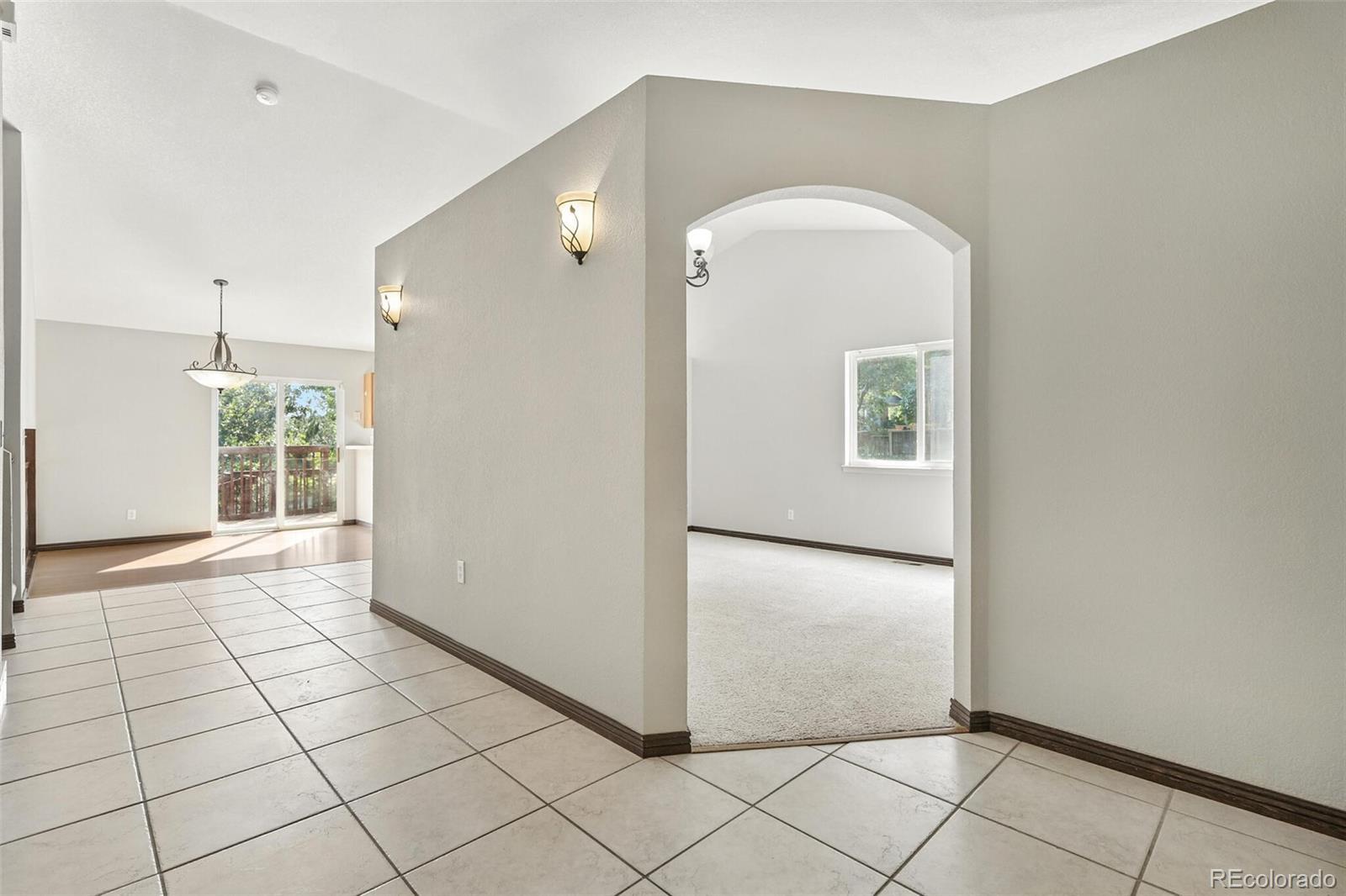 Move-in ready tri-level home in the heart of the Thompson Valley Community. This 4 bed, 3 bath home has been freshly painted throughout. The main level features a large living room with vaulted ceiling, custom architectural accent wall with arched doorways and sconce lighting, dining area, and kitchen with stainless appliances and pantry. The sliding glass doors open to a private backyard with large recently refurbished multi-level redwood deck, and beautiful brick-tiered flower beds and fence. This unique location offers extra separation from neighboring homes, sitting adjacent to the walking path and backing to a large serene greenbelt. Upstairs finds the primary suite with an ensuite full bath. Down the hall are two guest rooms and another full bath. Head down the short flight of stairs to the lower level family room with cozy carpet and sunlit windows. The lower level also features the 4th bedroom (perfect for a home office), 3/4 guest bath, and the laundry room which includes options for extra storage. Includes a Radon mitigation system and finished attached two-car garage. Conveniently located to The Loveland Recreation Trail, River's Edge Natural Area, and plenty of options for shopping, restaurants, coffee, and micro-breweries. Short walking distance to Thompson Valley High School, with all public schools within a mile.