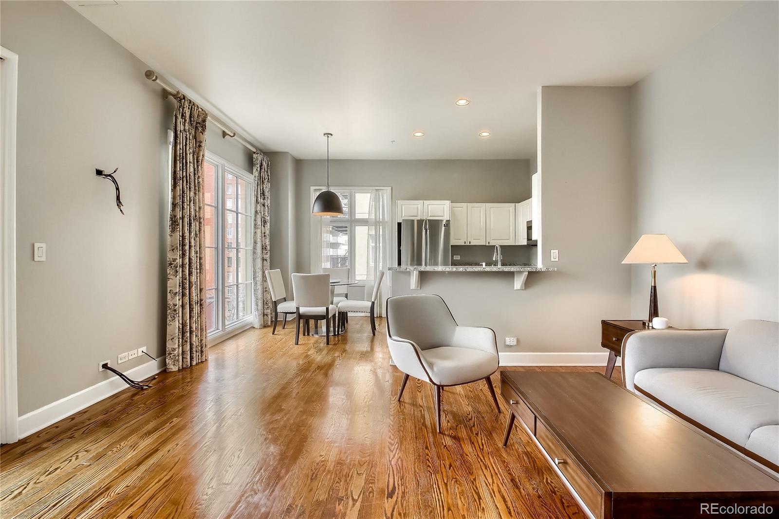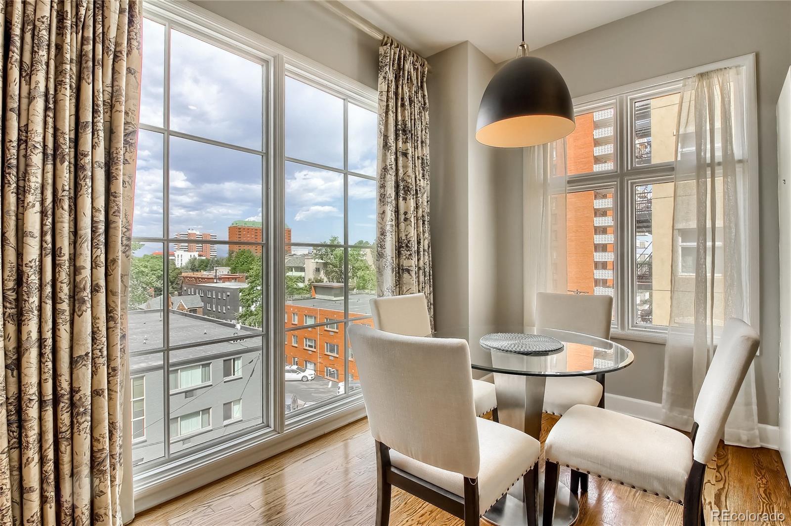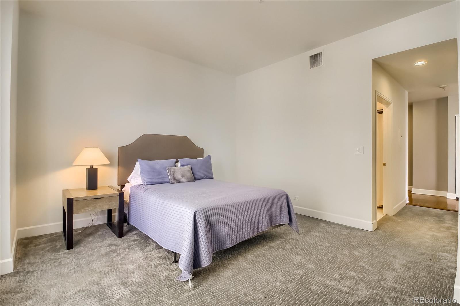Incredibly light and modern 4th floor condo with spectacular mountain views! One large storage cage included! Welcome to this stunning condo in the highly desirable and private Downing, ideally located on the northwest corner of the south tower. Boasting concrete construction between units, open floor concept living, floor to ceiling windows, and several fabulous upgrades including granite countertops, dining room light, and bathroom counters. Enjoy sounds of the relaxing courtyard water feature from your private, west-facing balcony, as well as your private juliette balcony from the primary bedroom. The stunning kitchen features white cabinets, stainless appliances, and a new faucet and new microwave. The primary retreat has newer carpet, large closet, and full bathroom with a laundry closet. The building features an on-site manager, lovely professionally landscaped courtyard entrance, secured entry, and fitness center. Located in an incredible location, within minutes of Wash Park and Cherry Creek, the Cherry Creek walking/biking path, and just a quick ride to downtown! Parking space in building garage available at $100/month. Denver residential rental license #2023-BFN-0046681