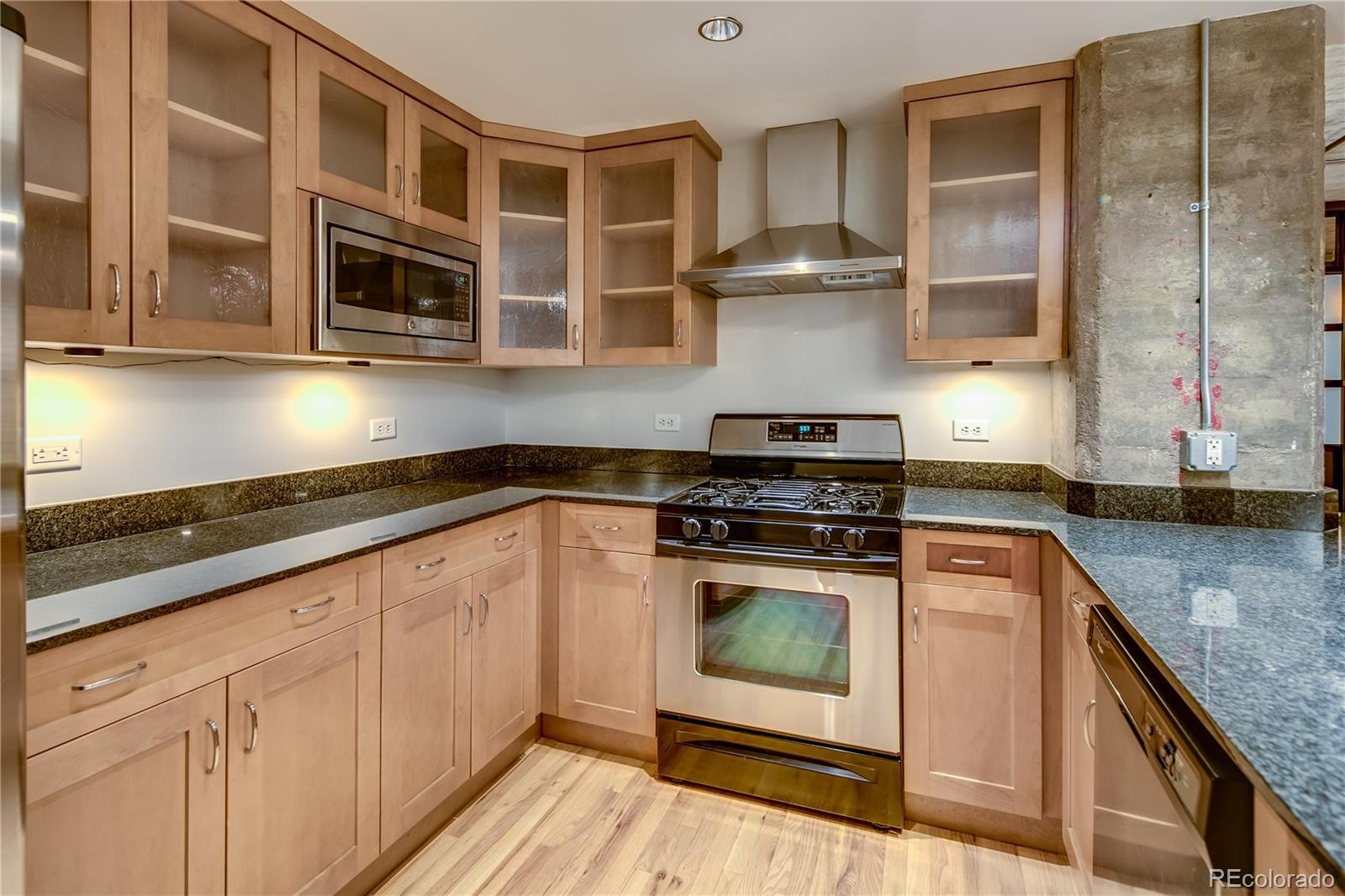 Stunning Urban Loft at Steelbridge Lofts in LoDo - Corner Unit - 2 Parking Spaces - Large Private Balcony. Available April 1st (Flexible) Unit Features: Great Natural Light! (Photos were taken at dusk so its hard to tell) European Style Kitchen, Granite Countertop, Full Size Washer & Dryer Included, Hardwood Floors Throughout, Thermal Insulated Windows, Deep Soaking Tub, Large Custom Closets, NEW Custom LED Lighting, Custom Window Coverings, NEW Paint, Secured Building Access, Common Rooftop Deck with Observation Tower. Second Bedroom is best suited for an office, den or guest room. Steelbridge Lofts is a six story historic building features a five story atrium capped off with a vintage skylight that spreads natural light through the residential lobby and common area. The project houses 45 luxury lofts. LEASE TERMS: Available April 1st - 12 Month Min, Pets OK!, 2 Parking Spaces + Storage Cage INCLUDED in secured, underground, heated garage. Contact Listing Agent Directly to Schedule a Private Showing.