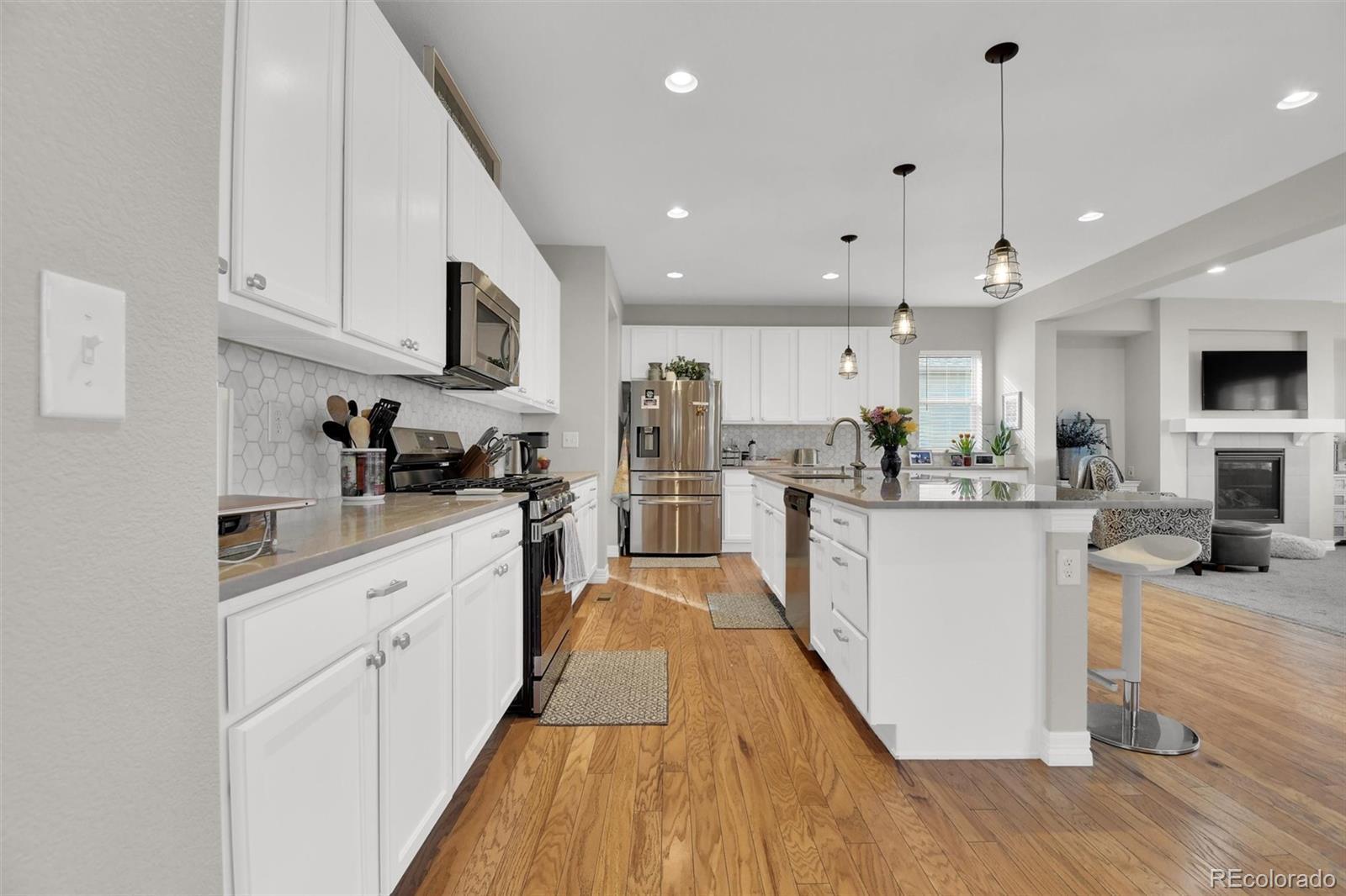 Welcome to 1900 Quest Drive, a refined residence where comfort, style, and thoughtful design come together in one of Erie’s most desirable communities. This beautifully maintained home offers a sophisticated blend of modern finishes, generous living spaces, and a serene outdoor setting that elevates everyday living. Inside you will find a light-filled interior defined by high ceilings, expansive windows, and an effortless open layout. The main living area is both inviting and elegant, anchored by a spacious great room that flows seamlessly into the dining space and chef-inspired kitchen. With its large island, abundant cabinetry, and seamless indoor-outdoor connection, the kitchen is designed for both elevated entertaining and relaxed daily life. Upstairs, the primary suite serves as a private retreat with its spacious proportions, walk-in closet, and spa-like bath. Additional bedrooms offer flexibility for guests, work, or creative space. The fully finished basement expands the home’s livability with remarkable versatility. A private bedroom and full bathroom create an ideal guest or multigenerational suite, while the dedicated home gym supports wellness without leaving the house. A large storage area keeps the home beautifully organized and clutter-free. Outdoors, enjoy a peaceful, low-maintenance yard perfect for morning coffee, evening gatherings, or quiet moments under Colorado’s wide-open skies. With parks, trails, top-rated schools, and Erie’s vibrant amenities just minutes away, this home delivers a lifestyle that feels both elevated and effortless. Homes of this caliber rarely come available in this neighborhood, making 1900 Quest Drive a standout opportunity — polished, inviting, and ready for its next chapter.