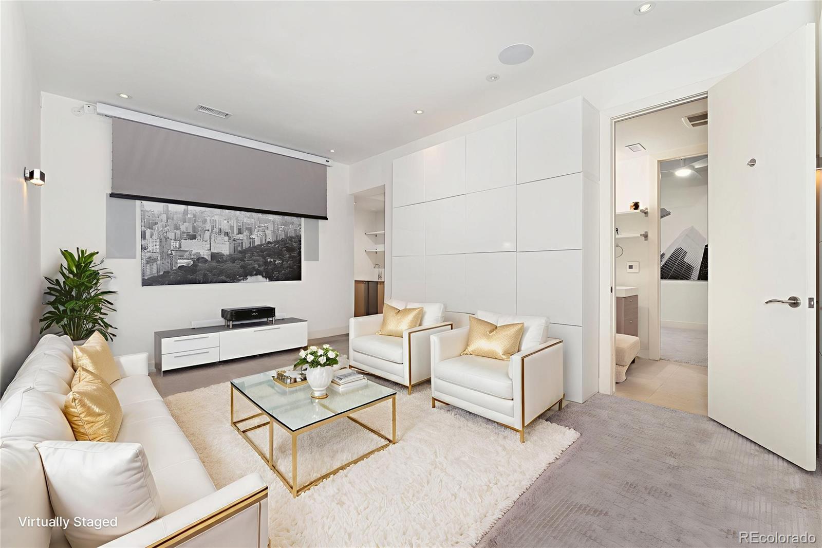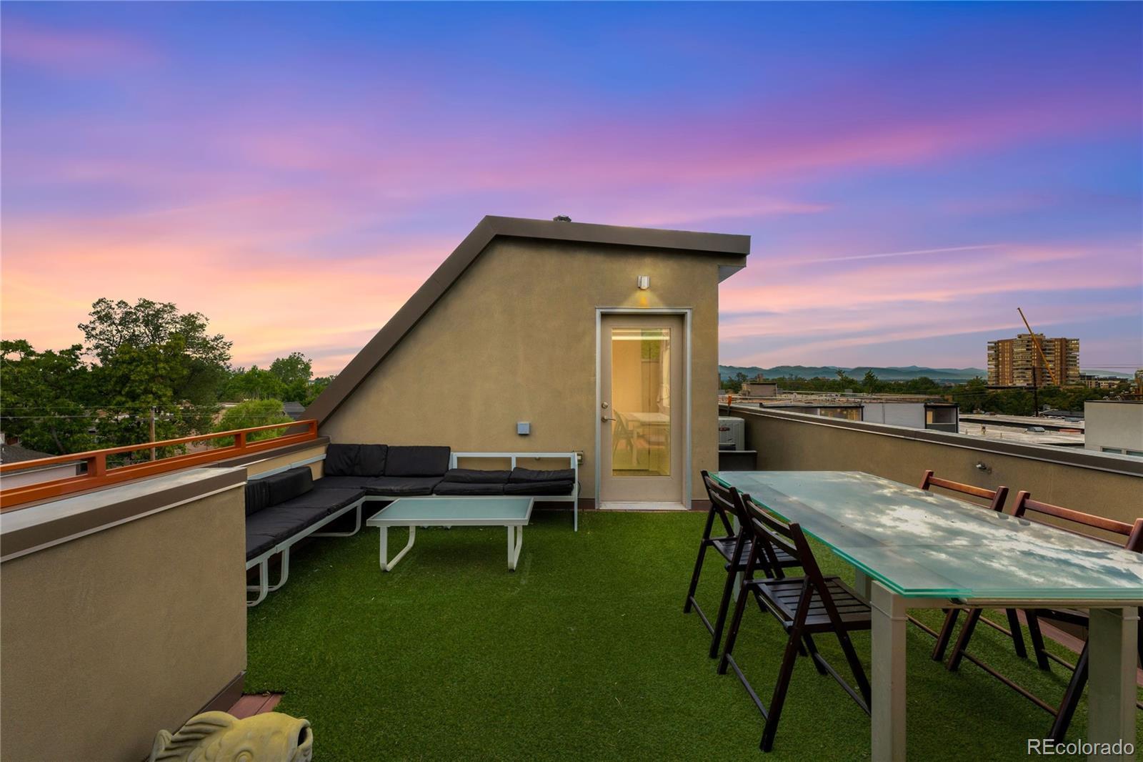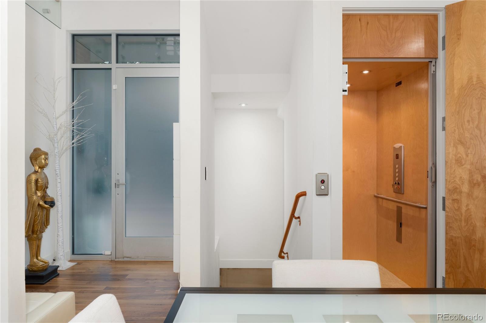 Indulge in luxury living within this high-end townhome. With European and Scandinavian architectural influences, this home exudes elegance and sophistication. Chef’s kitchen features top-of-the-line Dacor and Miele appliances, dual dishwashers, a generous island, and a cozy dining nook. The open-concept living and dining spaces are enhanced by glass accordion doors, leading to a private front patio for an effortless blend of indoor-outdoor living. Elevate the convenience of a private elevator, providing access to all levels of this stunning home. On the second floor, discover two spacious bedrooms connected by a Jack-and-Jill bathroom with heated floors. Ascend to the third level to find the luxurious primary suite, complete with dual balconies, a two-sided fireplace, and a spa-like bathroom featuring heated floors, dual sinks, and a spacious shower. The fourth level is an entertainer’s dream, where a wet bar awaits, opening to a breathtaking rooftop patio with panoramic city and mountain views. This space is fully equipped for outdoor enjoyment, with hookups for a gas BBQ and a hot tub, creating the ultimate setting for gatherings under the Colorado sky. A finished basement provides additional living space, including a bedroom, full bath, media room with surround sound and wet bar, plus a laundry room with an included washer and dryer. Throughout the home, mounted TVs with sound bars are included for added convenience and entertainment. Sophisticated smart lighting from the Legrand Adorne collection elevates ambiance and usability, while a party wall agreement enhances privacy in this intimate community of only three attached units. Centrally located, you'll enjoy easy access to Cherry Creek shopping, Whole Foods, Trader Joe's, King Soopers, and local hotspots. Just a block from Cherry Creek and Washington Park, with nearby bike paths and the Speer river walk, this townhome offers the ultimate urban lifestyle with luxury, convenience, and charm.