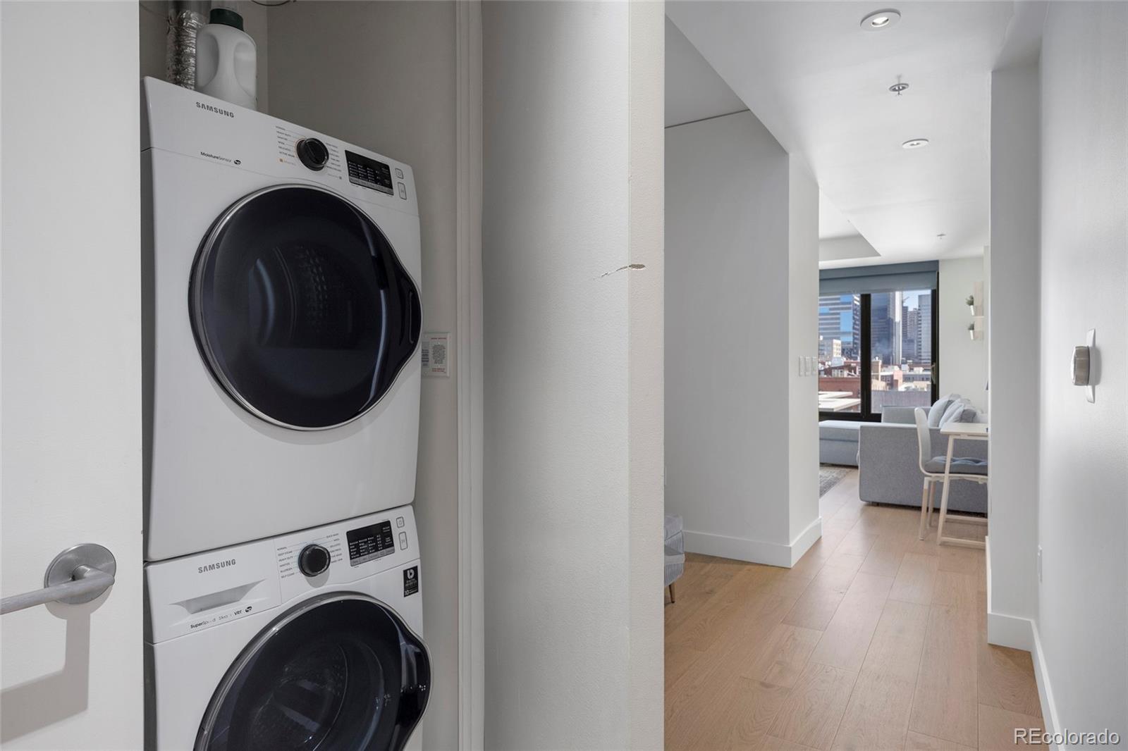 Experience refined city living in this beautifully curated, fully furnished junior 1-bedroom, 1-bath residence at The Coloradan, downtown Denver’s premier condominium address. Featuring all new wood and tile floors throughout, this thoughtfully designed 535 sqft home offers efficient living without compromise. The sleek kitchen is equipped with Bosch appliances, quartz countertops, soft-close cabinetry, and a gas range. Large windows frame Union Station and urban skyline views while bringing in natural light across the open-concept living space. The tranquil bedroom offers a streamlined closet system, while the spa-inspired bathroom showcases marble tile and a soaking tub/shower combo. An in-unit washer/dryer adds everyday convenience, and the contemporary furnishings make this home turnkey from day one. The Coloradan Lifestyle & Amenities Residents enjoy access to an unrivaled collection of amenities, including a rooftop pool and hot tub with sweeping city and mountain views, state-of-the-art fitness center, resident lounge, curated library, private garden, and a 24/7 front desk concierge. Ground-floor retail includes a coffee shop, restaurants, and Whole Foods right next door. Location Highlights Perfectly positioned in the heart of Union Station, you’re just steps from Whole Foods, 40-min light rail to DIA, award-winning dining, downtown nightlife, Coors Field, and Denver’s most walkable urban core. Whether used as a full-time residence or a lock-and-leave pied-à-terre, this turnkey home blends boutique comfort with effortless convenience. All utilities included—water, sewer, electric, gas, internet, and trash—so you can move in and start enjoying your new home immediately.